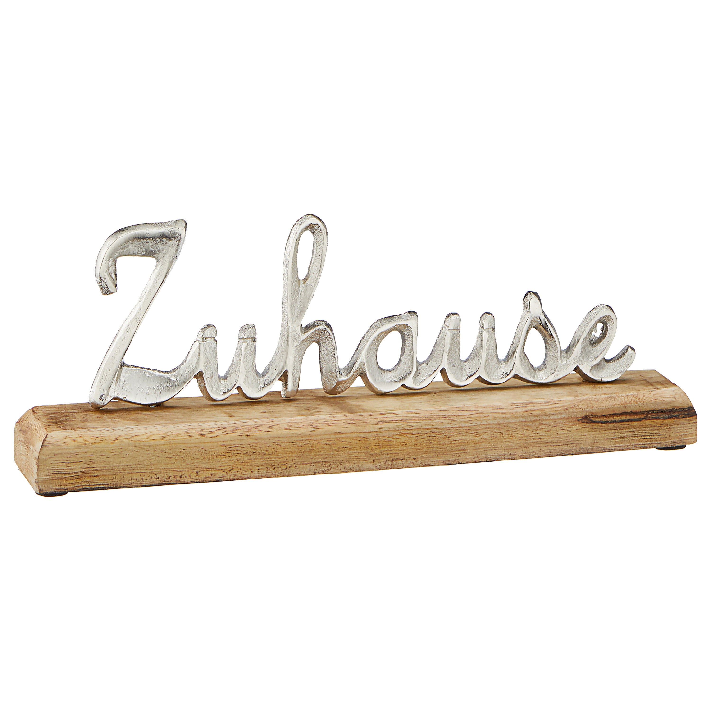 Schriftzug 'Zuhause' silber 30x10x5cm Mangoholz Aluminium Dekoaufsteller Tischdeko Aufsteller