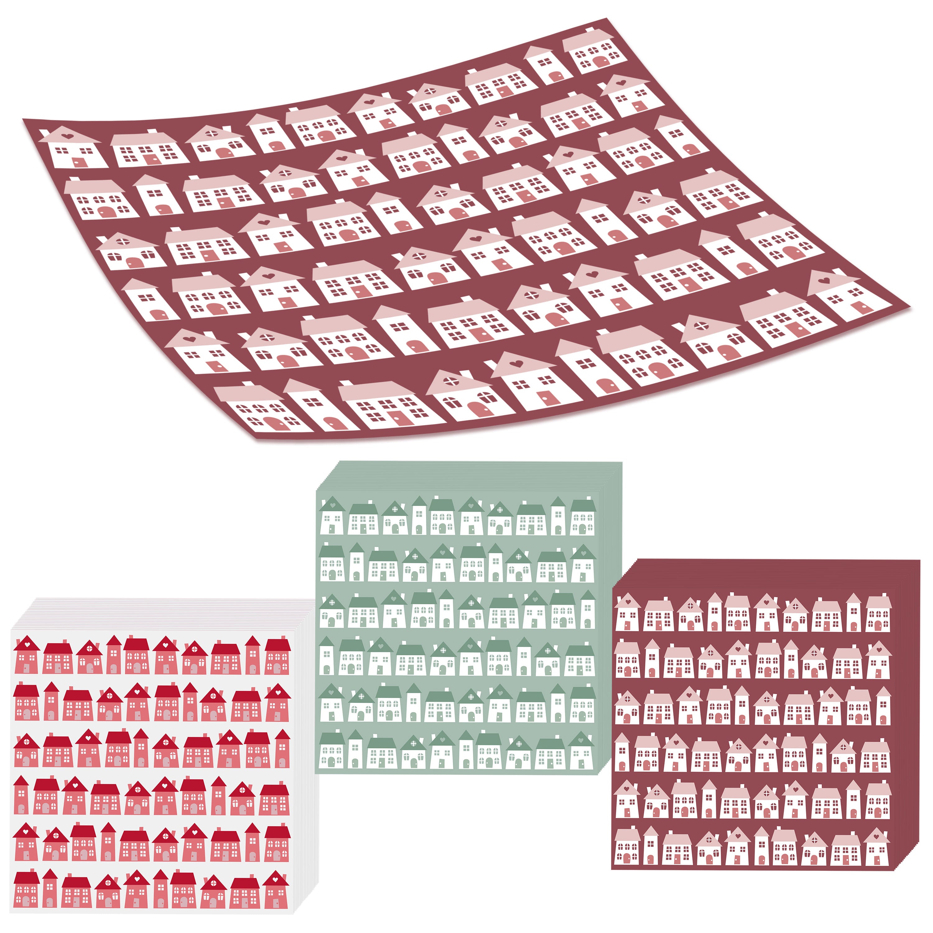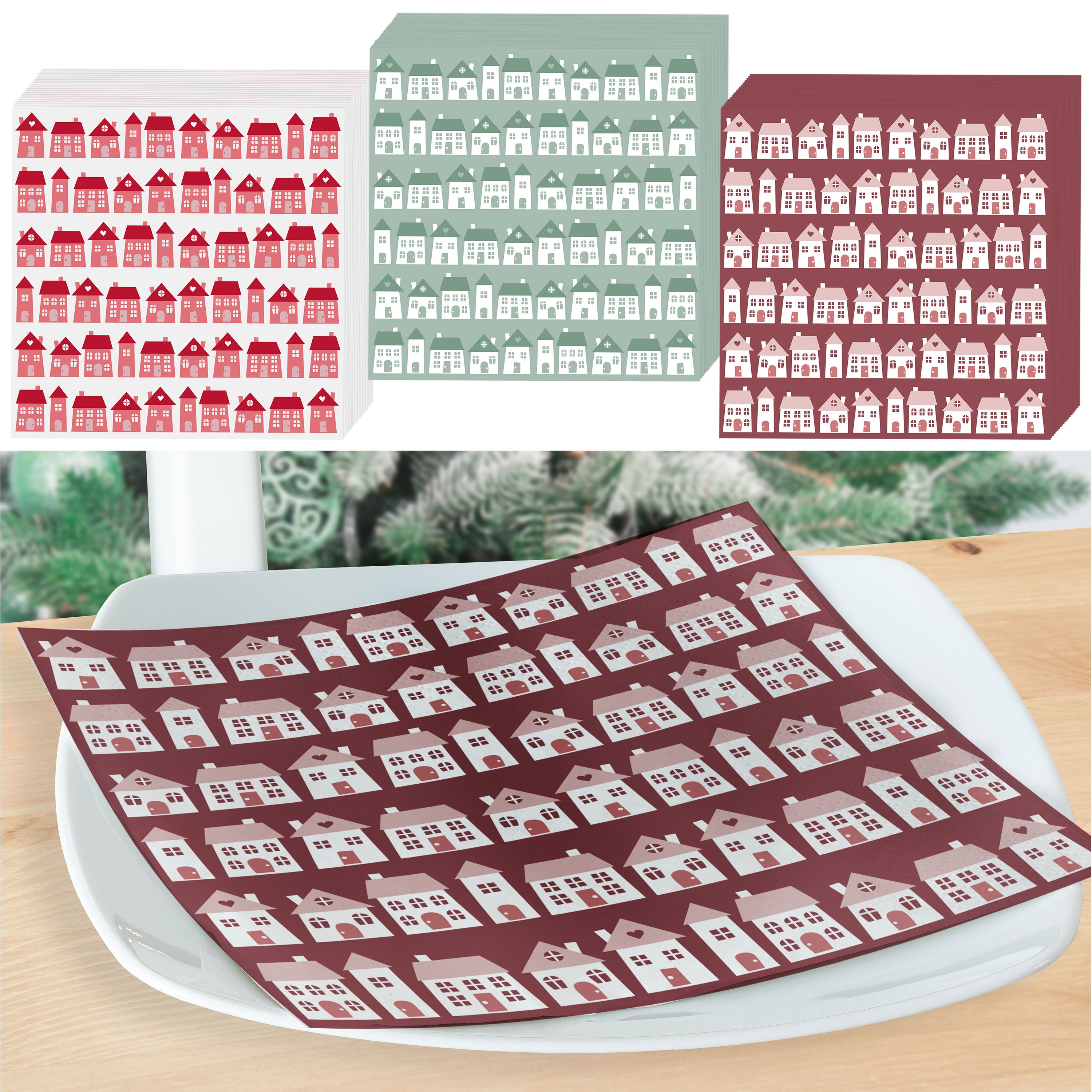 Servietten 'Häuser' 60er Set 33x33cm 3-lagig 3 Farben Papierserviette stoffähnlich Tuch Häusermotive