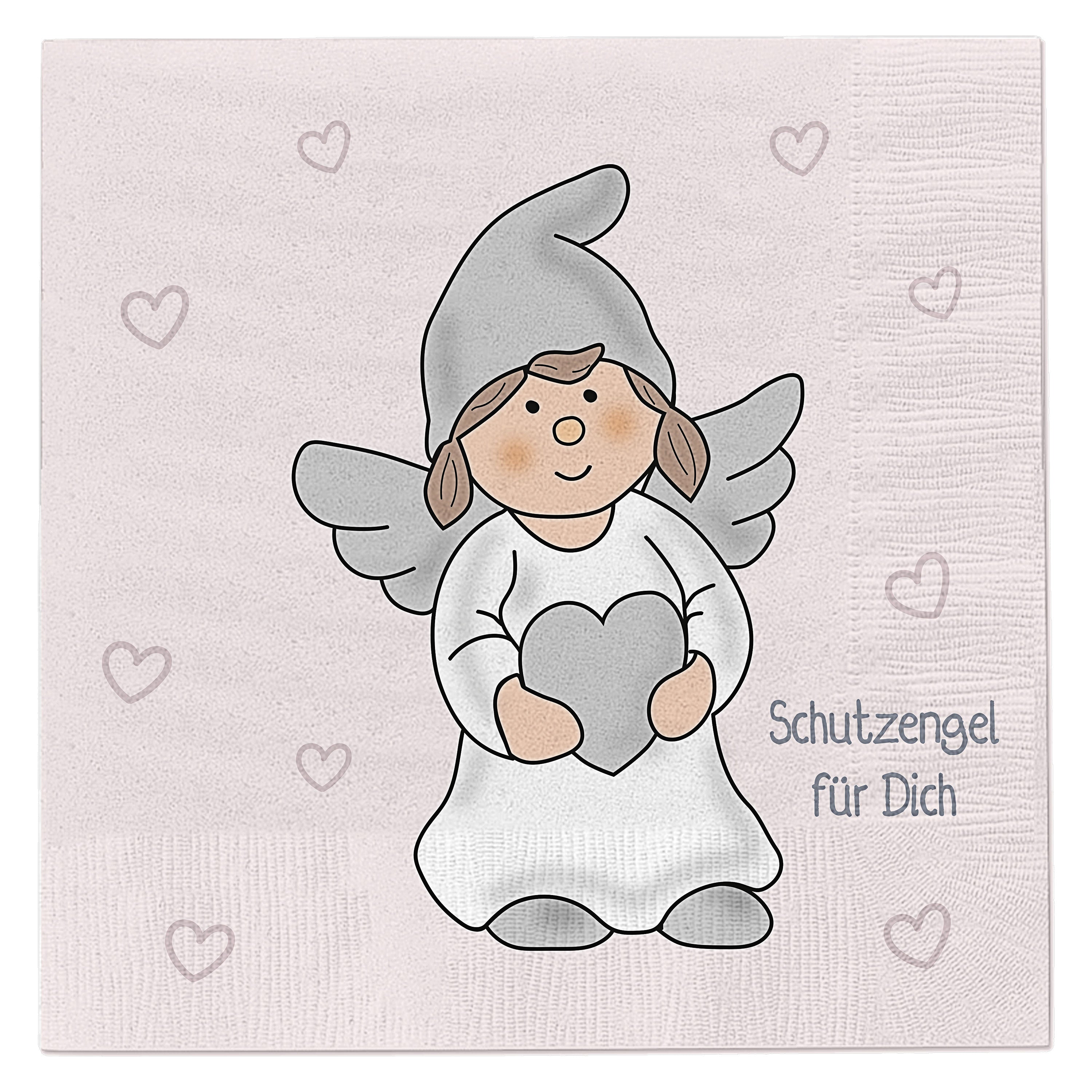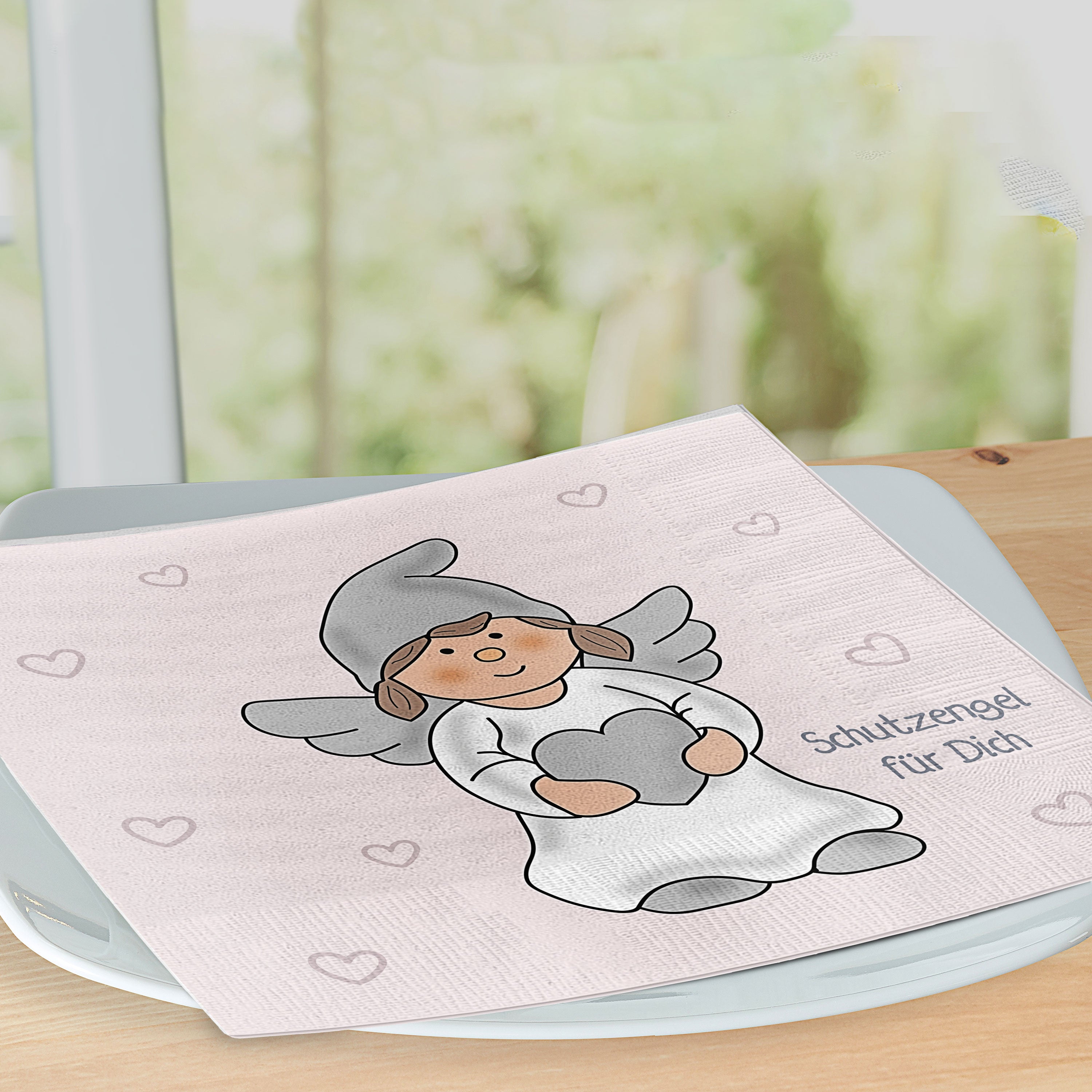 Servietten 'Schutzengel' 80er Set 33x33cm grau rosa 3-lagig Papierserviette stoffähnlich 2 Engel-Motive Mädchen Junge