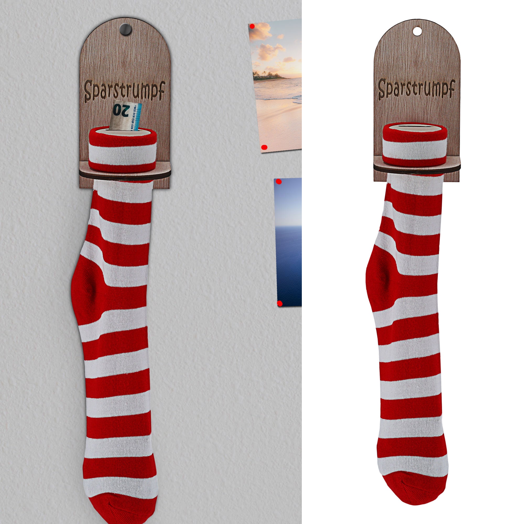 | Sparstrumpf gestreift mit Halterung | ||||||||||||