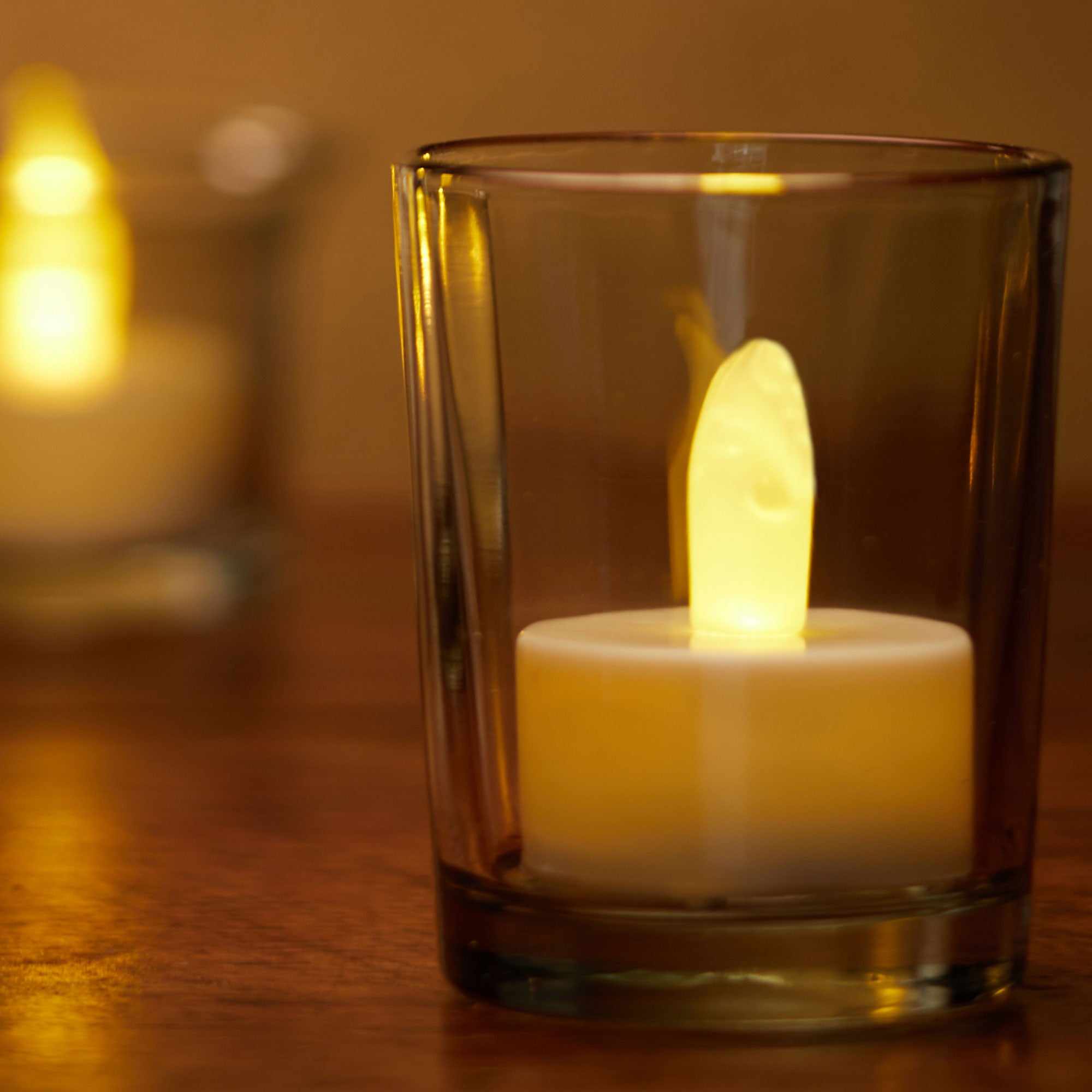 LED Teelichter Box 24er Set flackernd Kerzen Teelicht weiß Kunststoff flammenlos