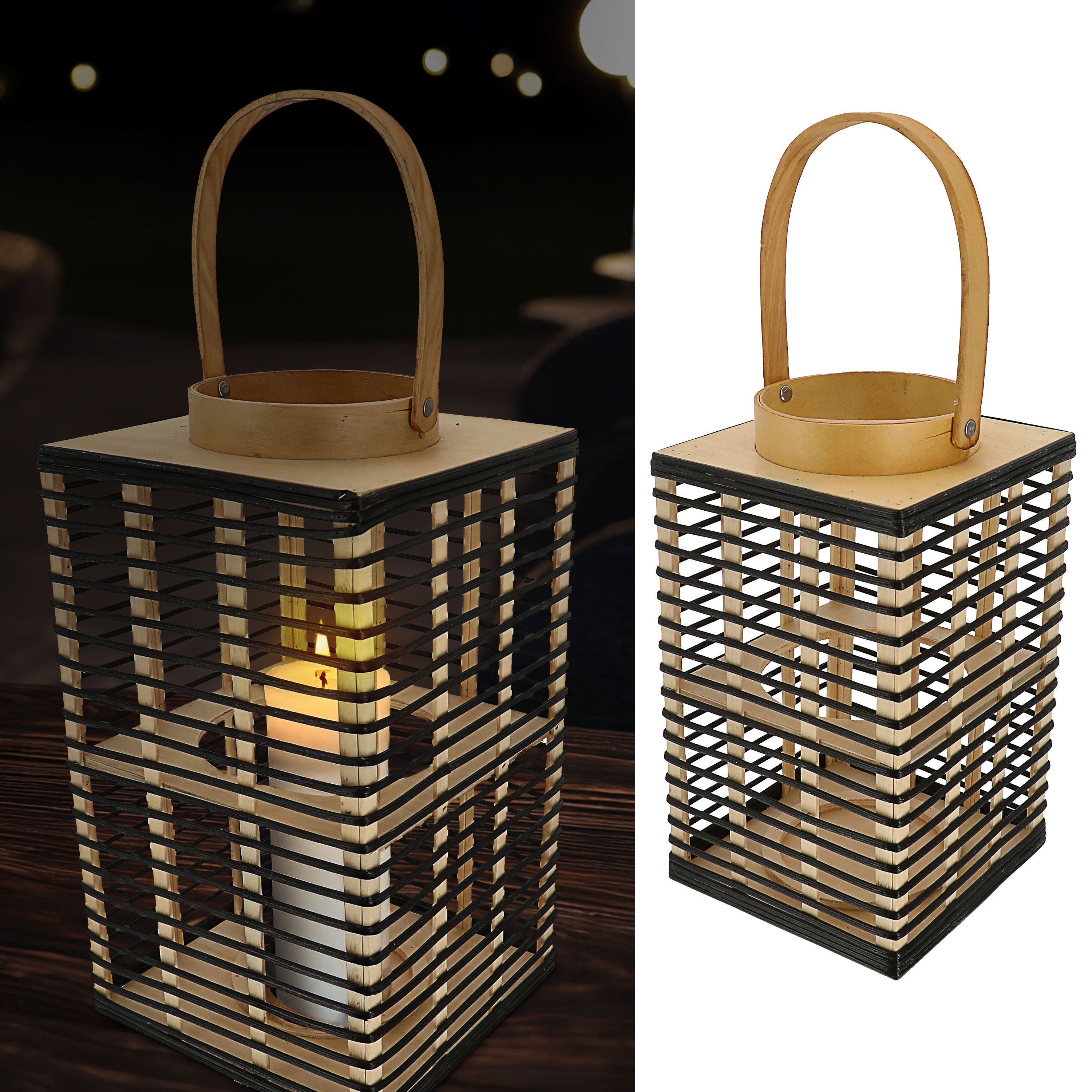 Laterne Soho Sperrholz Glas 16x29cm Gartenlaterne Streben Henkel tragbar Windlicht Leuchte Kerzenständer