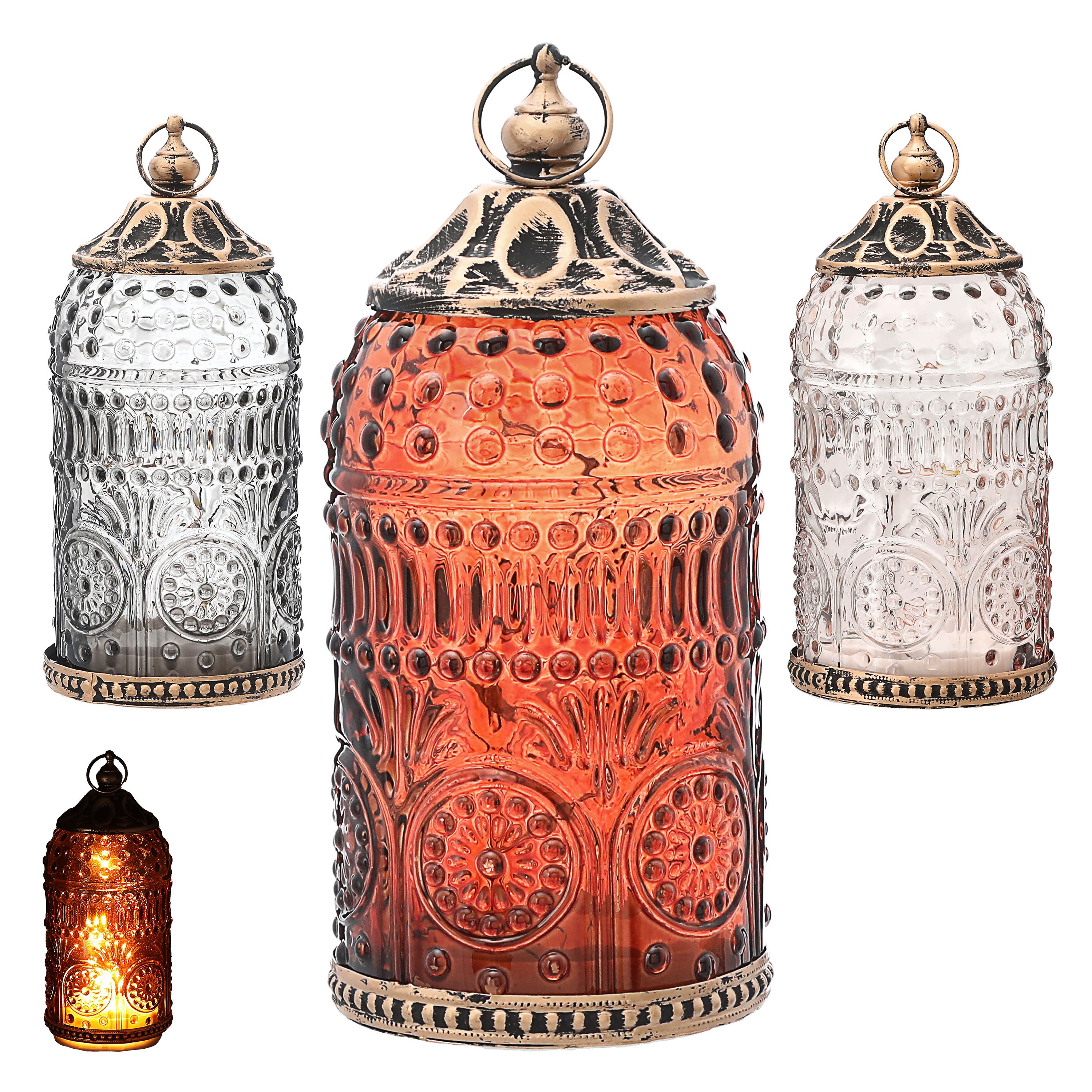 LED Leuchte 3er Set orientalische Ornamente Glas Metall Ø7,5cm H15cm grau braun rosé Windlicht 5 LEDs batteriebetrieben