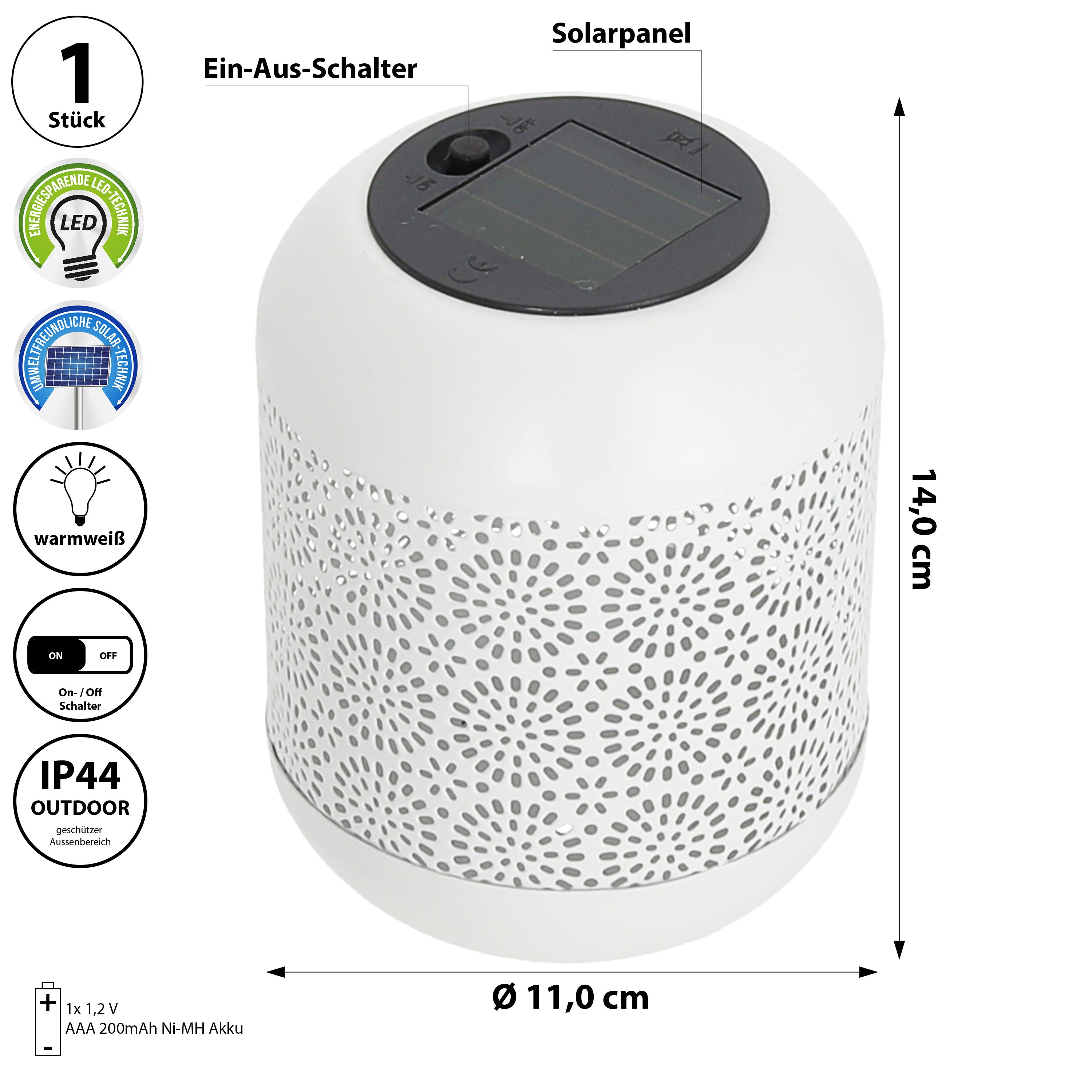 LED Solar Laterne 'Mandala' warmweiß Eisen Kunststoff 11x14cm weiß Outdoor Lampe Blumenmuster gestanzt