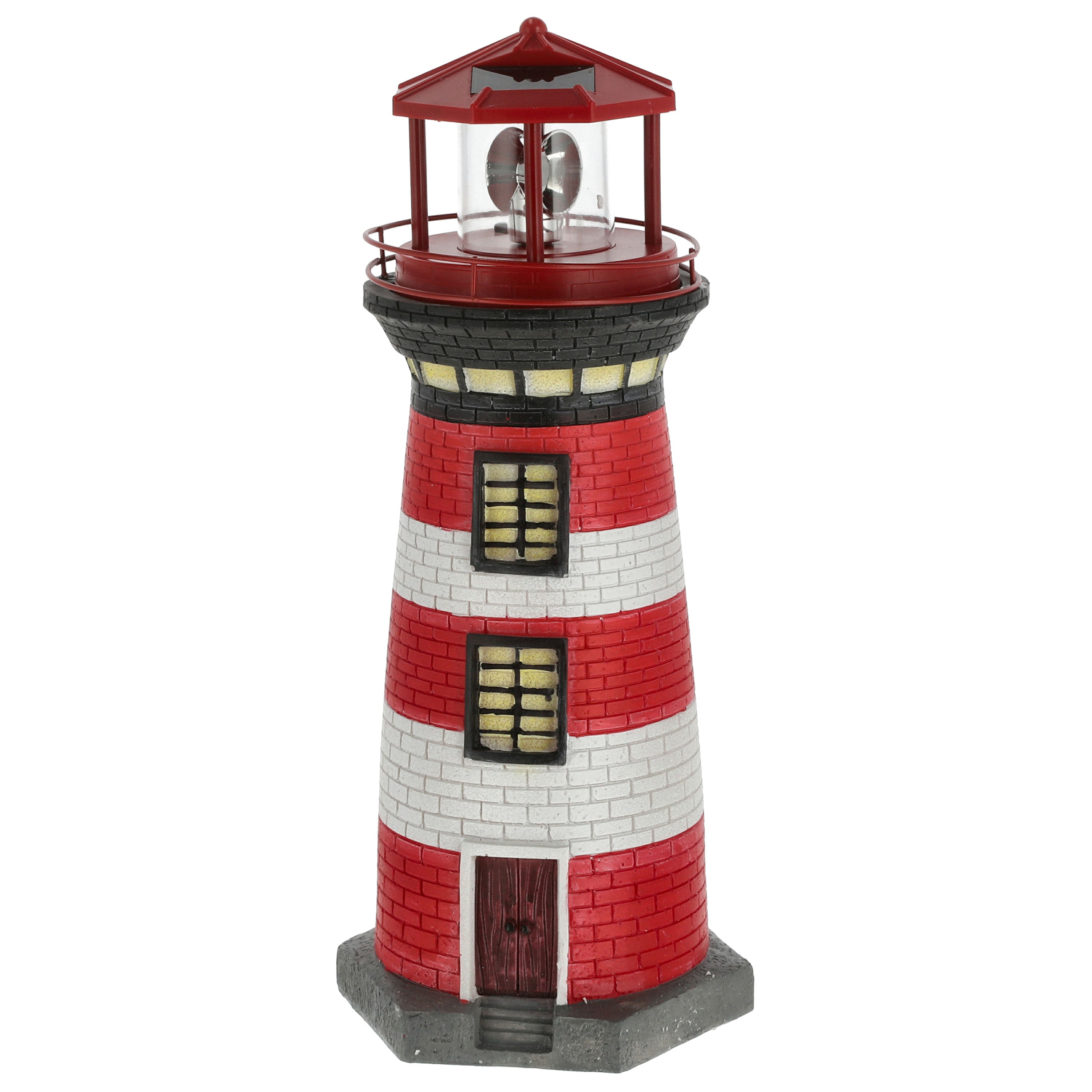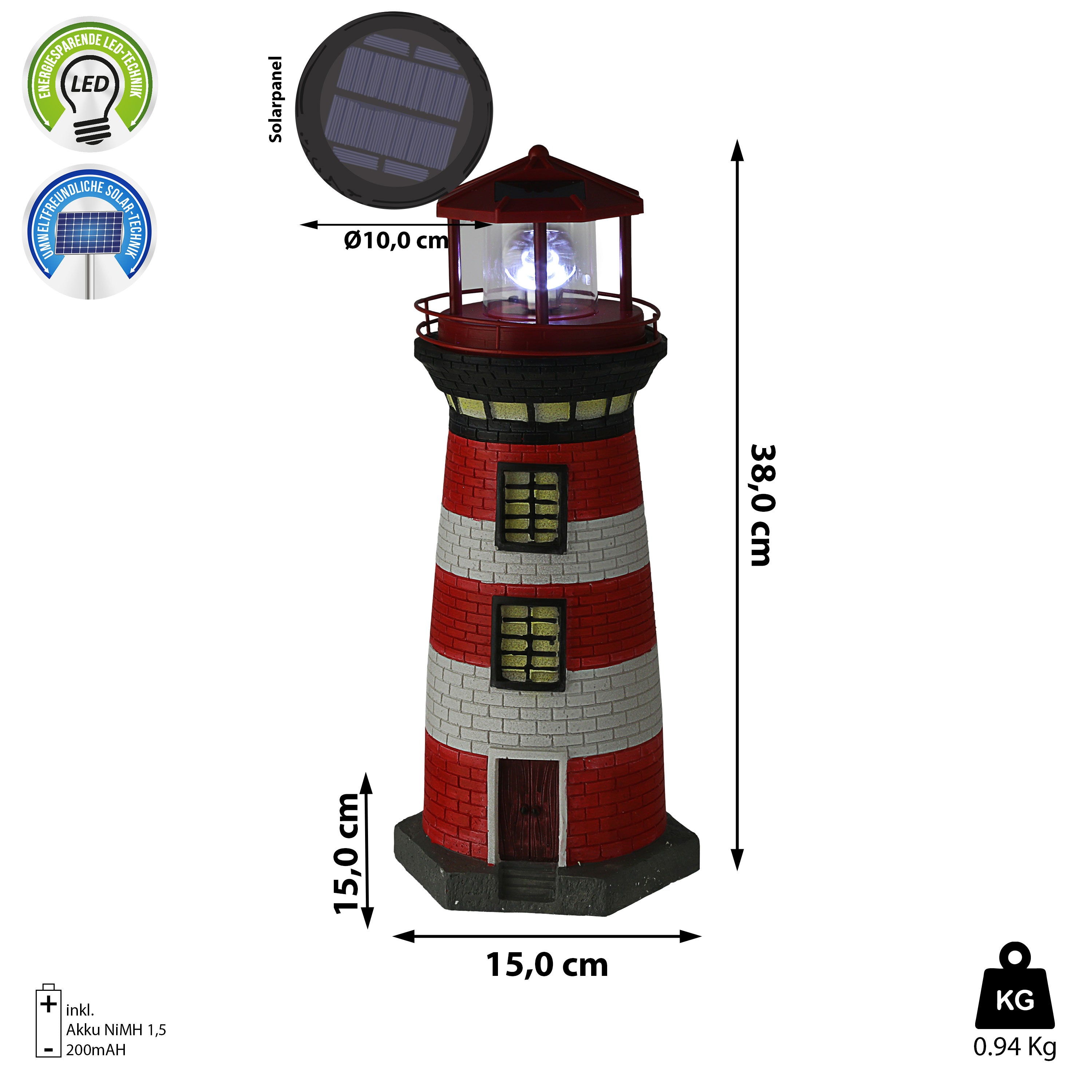 LED Solar Leuchtturm H38cm rot weiß Gartendeko Leuchtfeuer Turm Leuchtfeuer Solarbeleuchtung