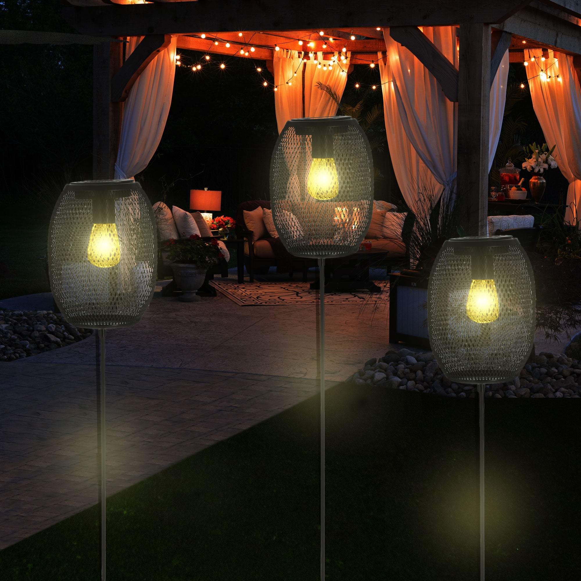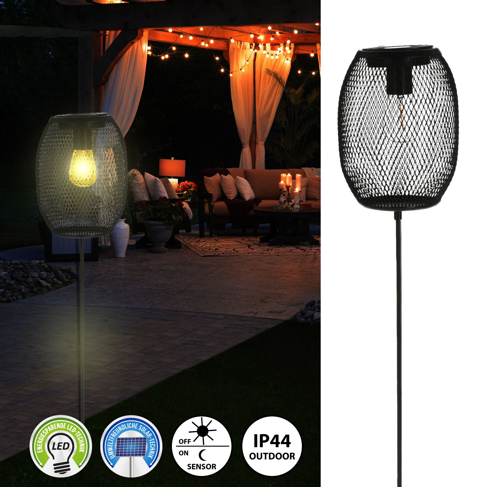 LED Solar Stecker "Netz" 14x18cm H100cm Gartenstecker Eisen warmweiß Gartenleuchte Gartenlampe Netzoptik