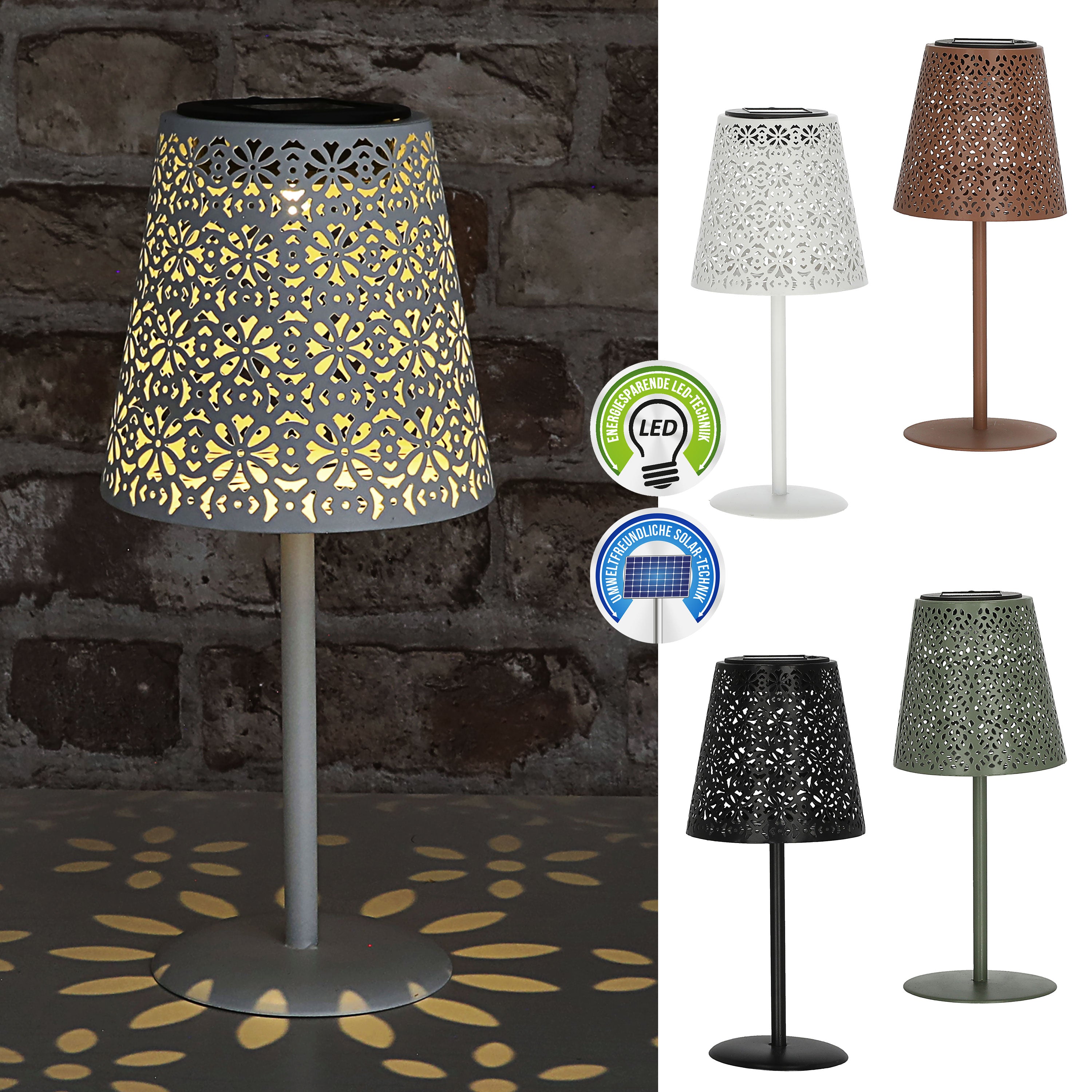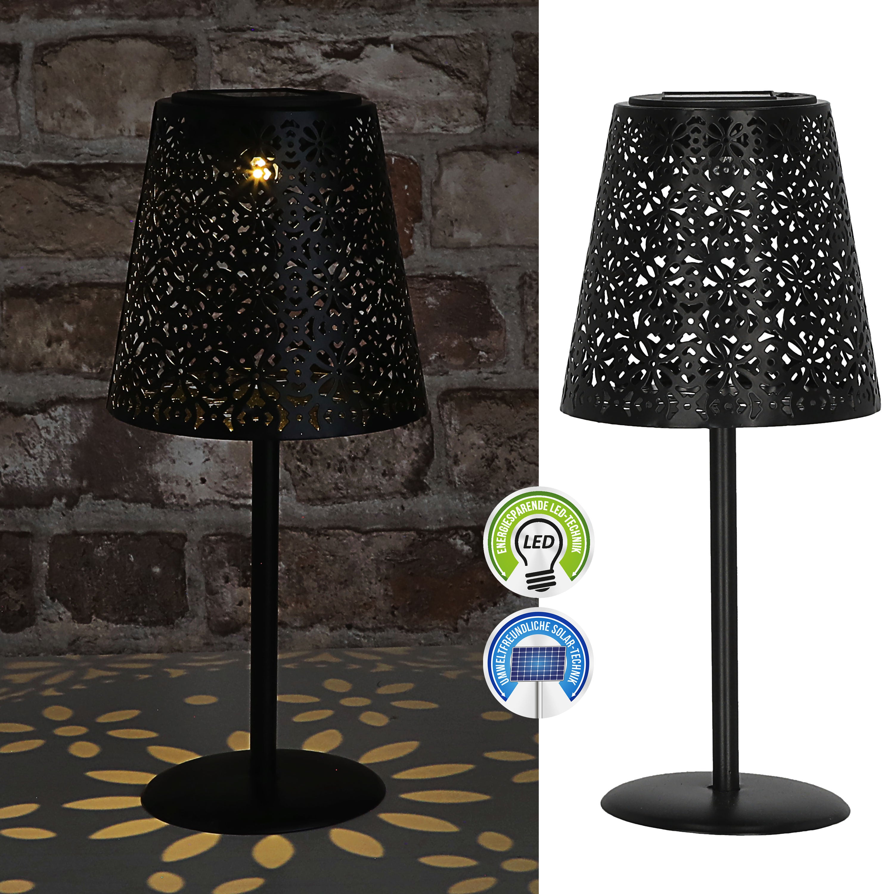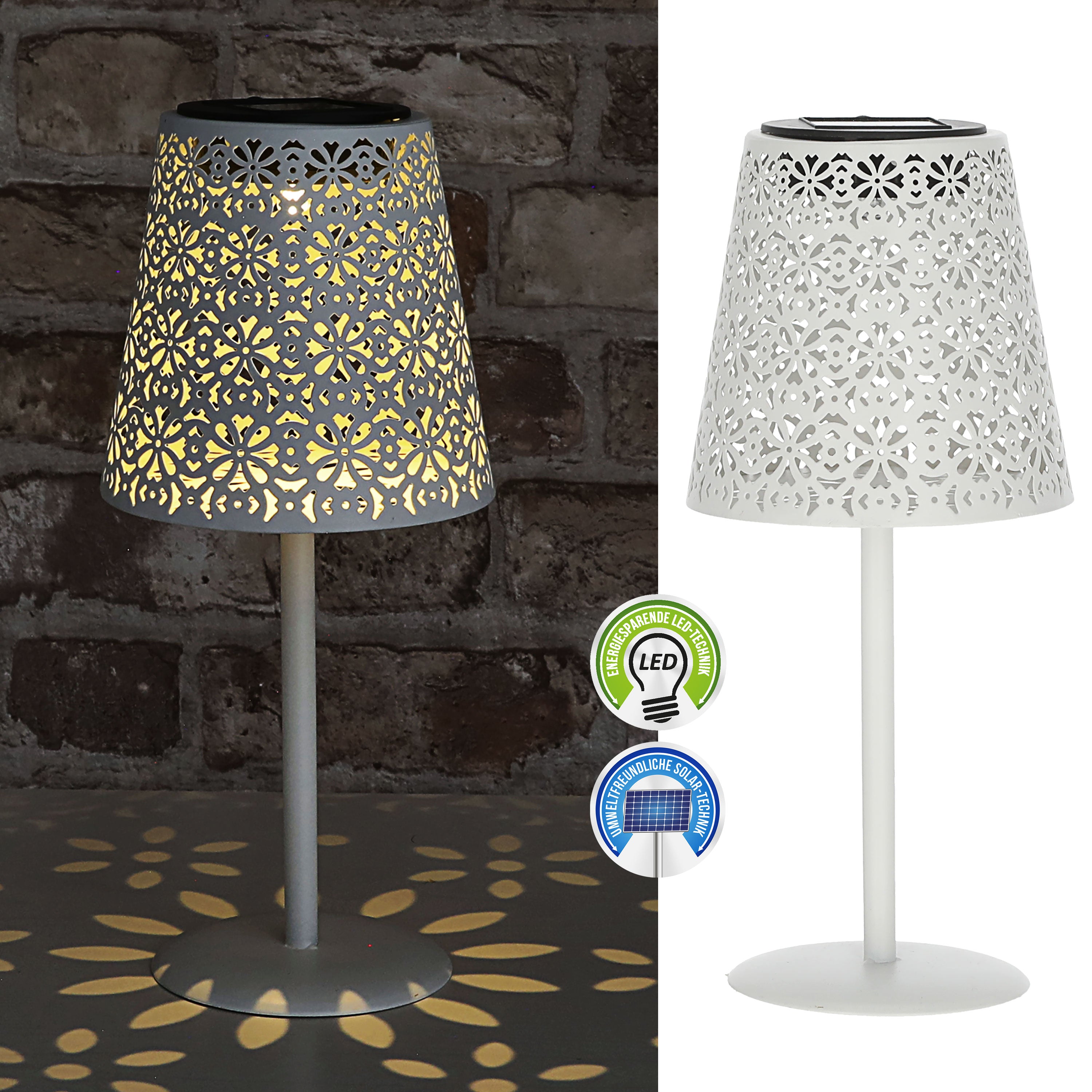 | LED Solar Tischleuchte mit gestanztem Muster | ||||||||||||