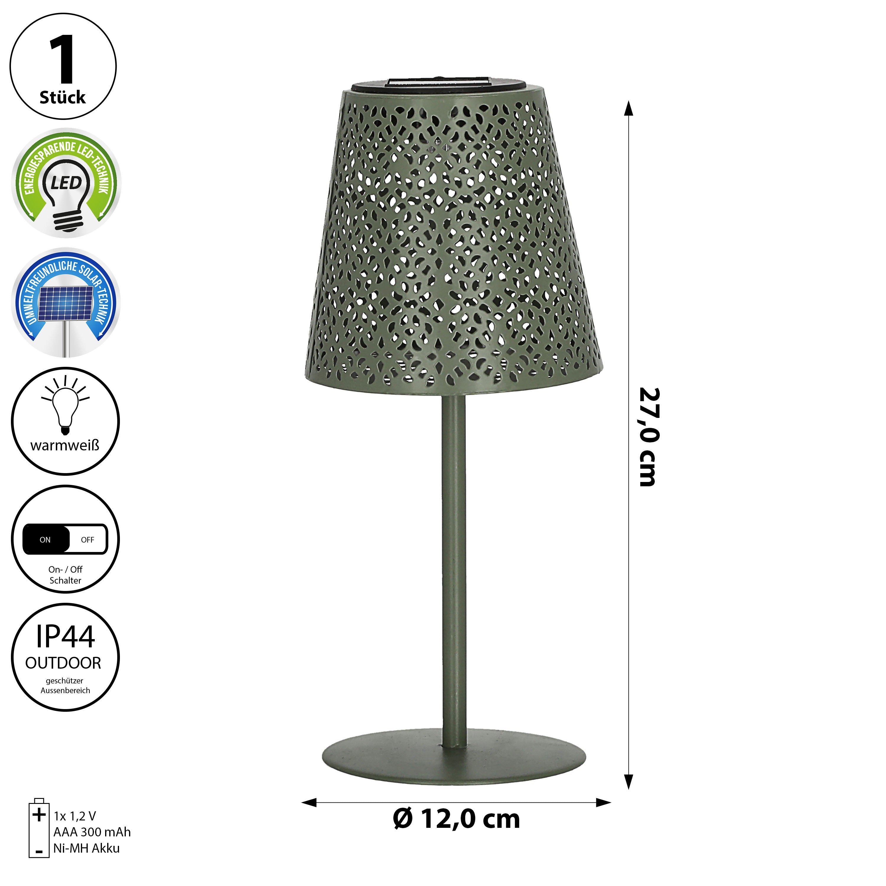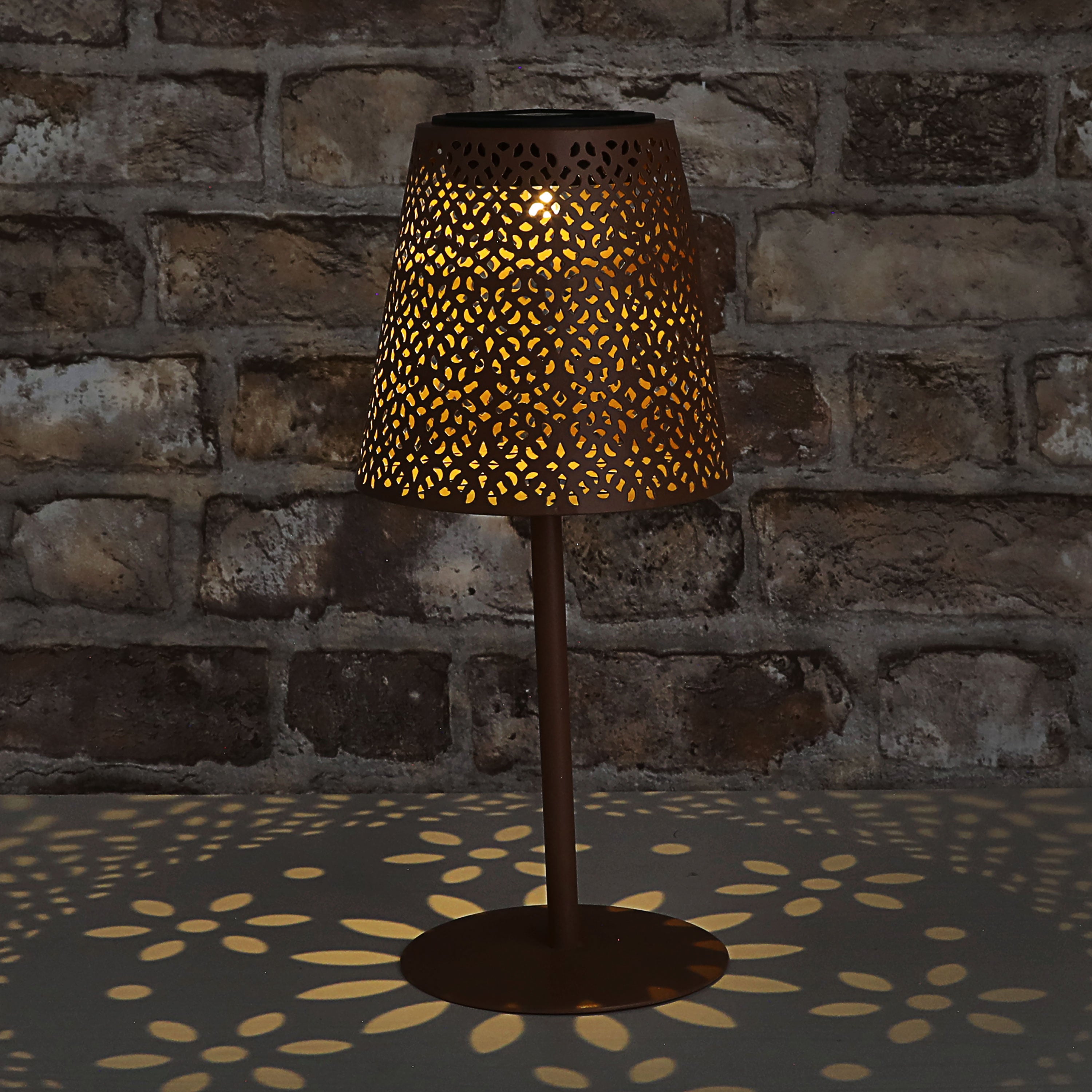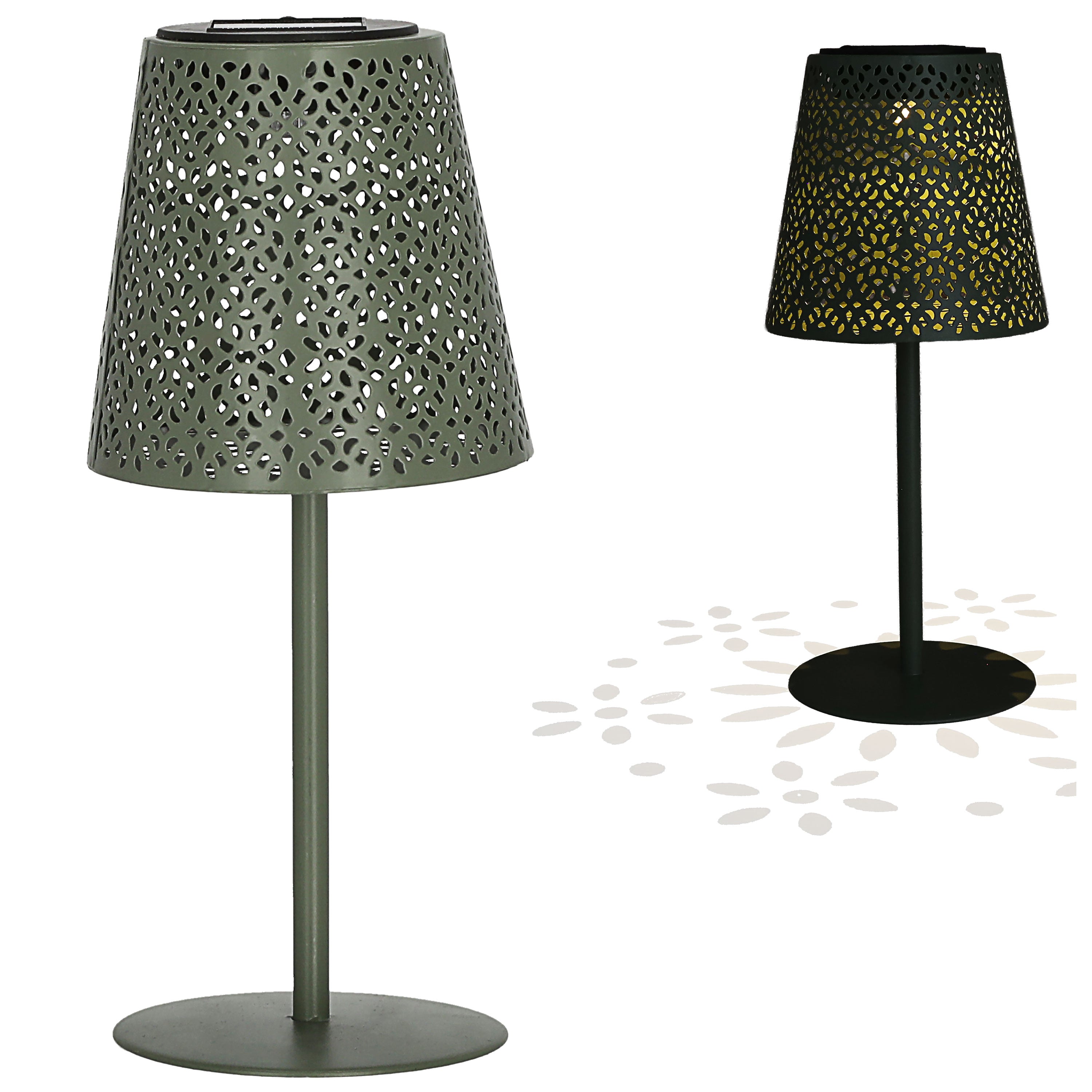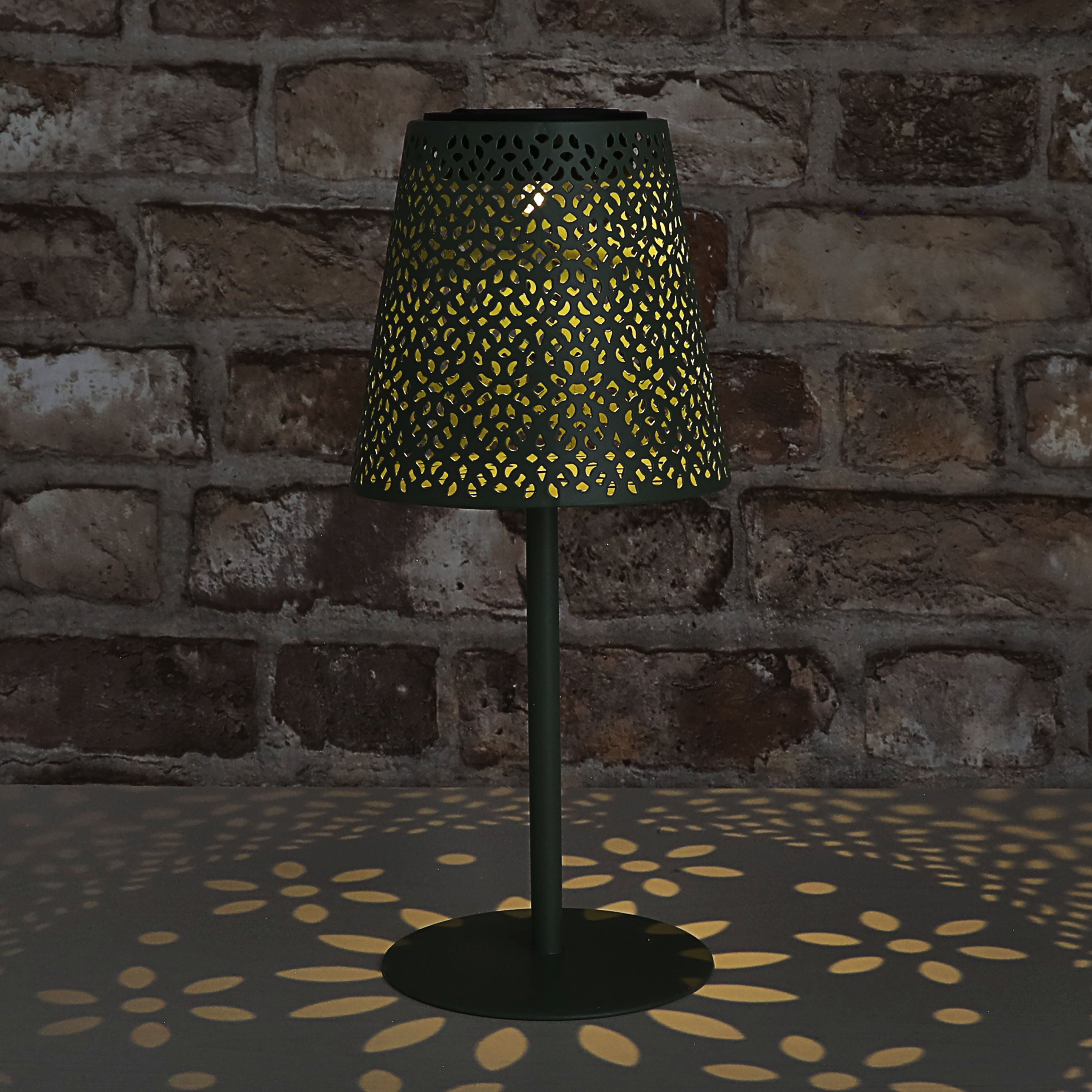 LED Solar Tischleuchte 'Cannes' Muster gestanzt weiß/grün/braun/schwarz 12x27cm akkubetrieben warmweiß On-/Off-Schalter IP44 Outdoorlampe