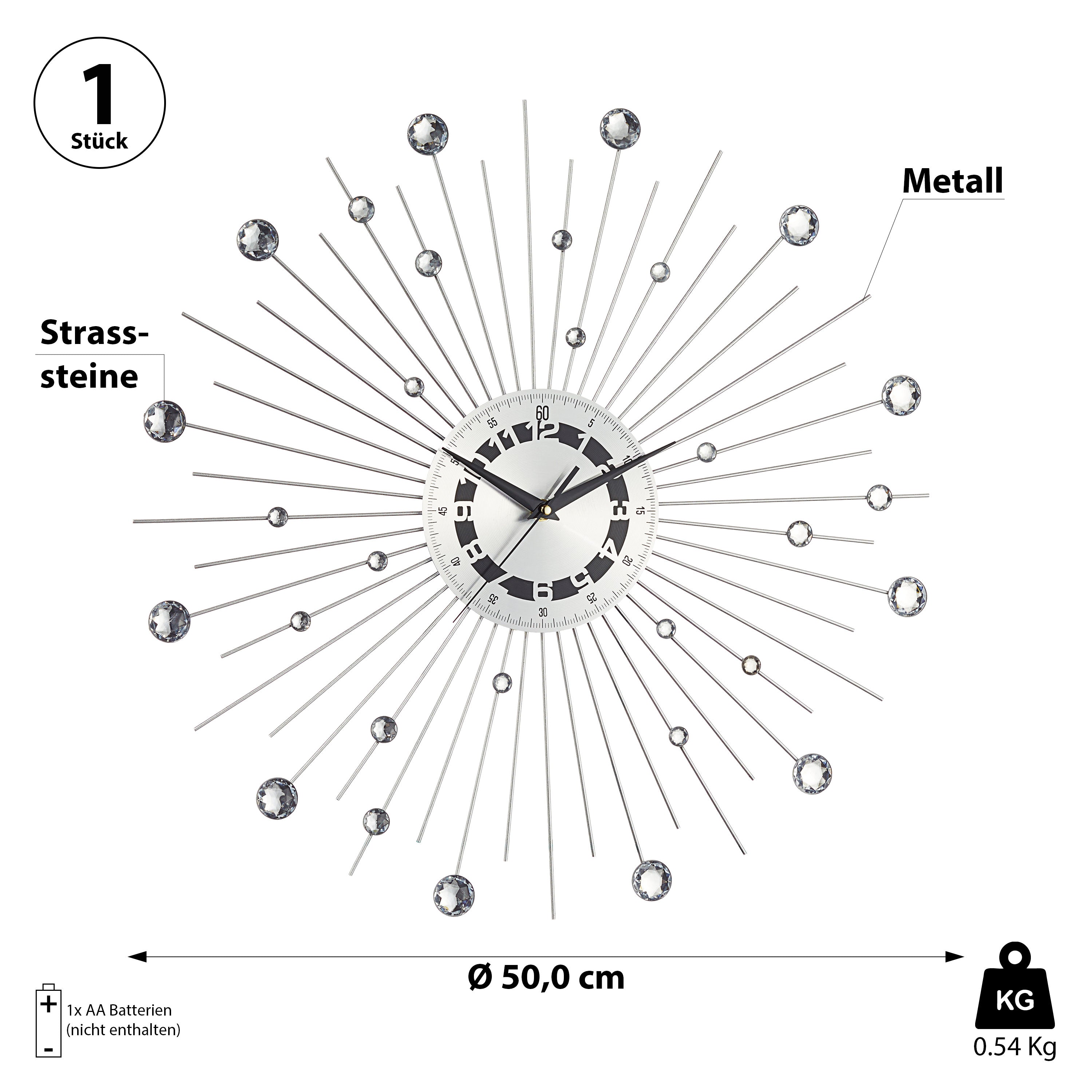 | Wanduhr "Metall mit Straßsteinen", 50cmD | ||||||||||||