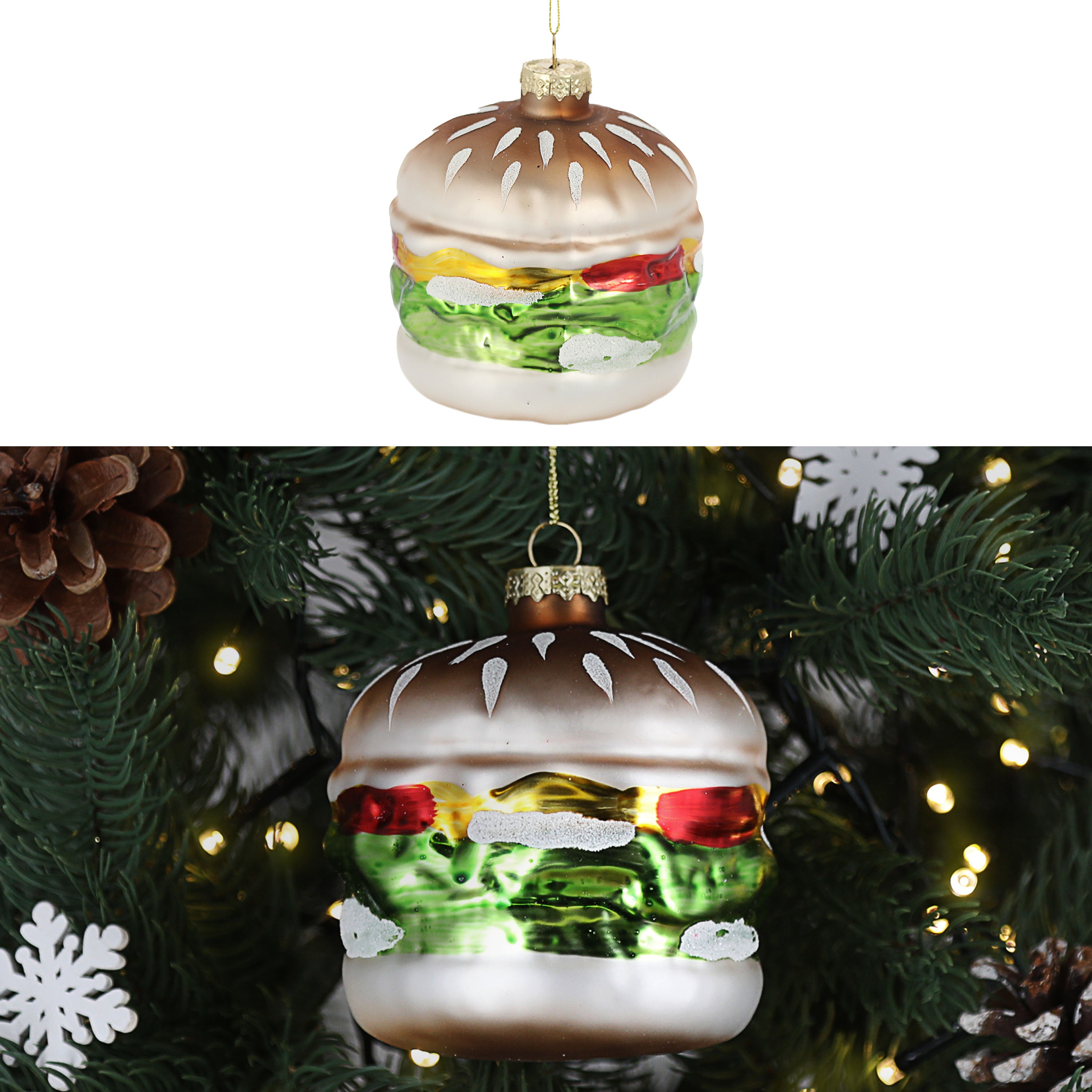 Christbaumschmuck Hot Dog handbemalt 10x3x4,5cm Glas bunt Glitzer Weihnachtsaufhänger Baumschmuck