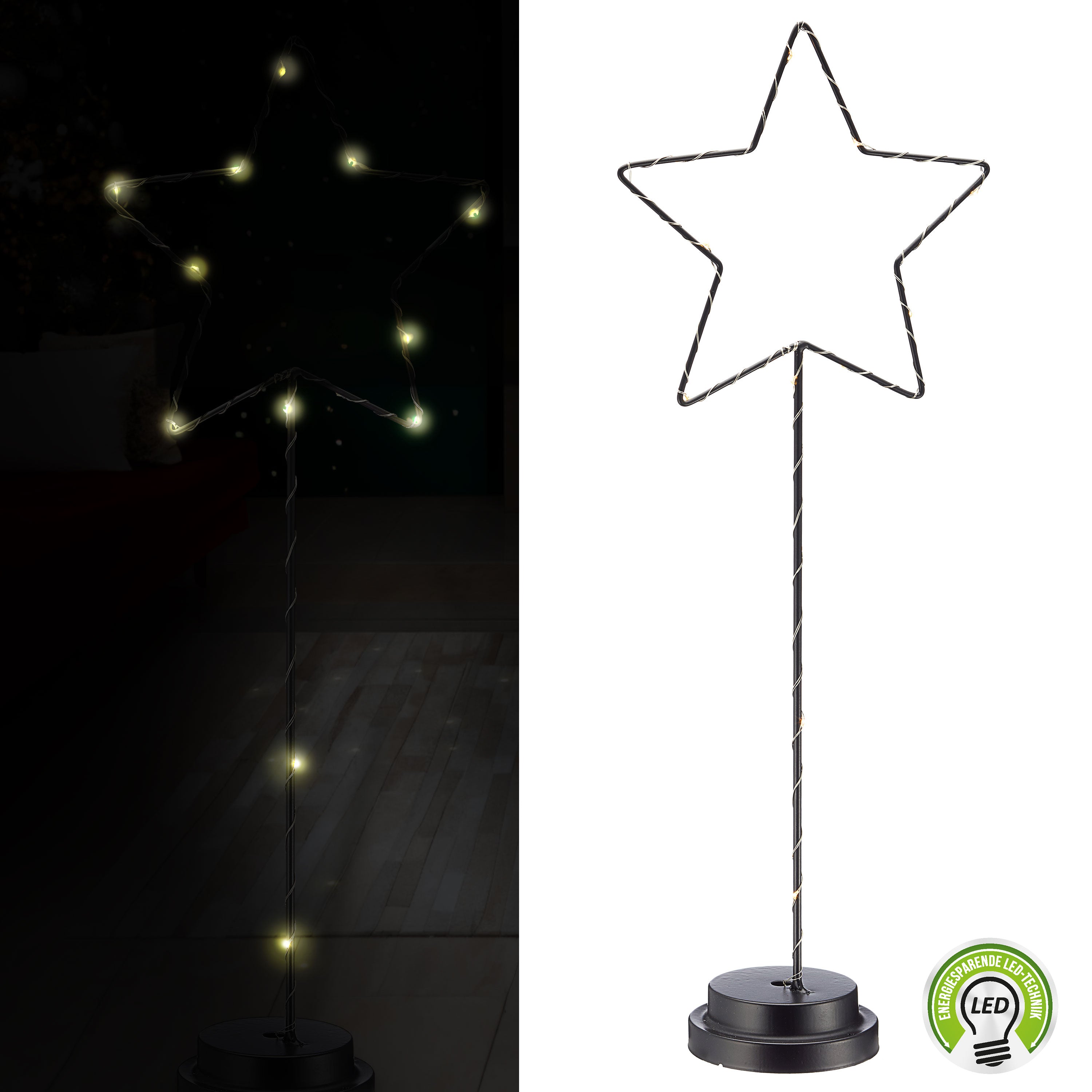LED Stern auf Fuß H51cm 12LEDs warmweiß batteriebetrieben Leuchtstern Kupferdraht Metallstern Weihnachtsstern