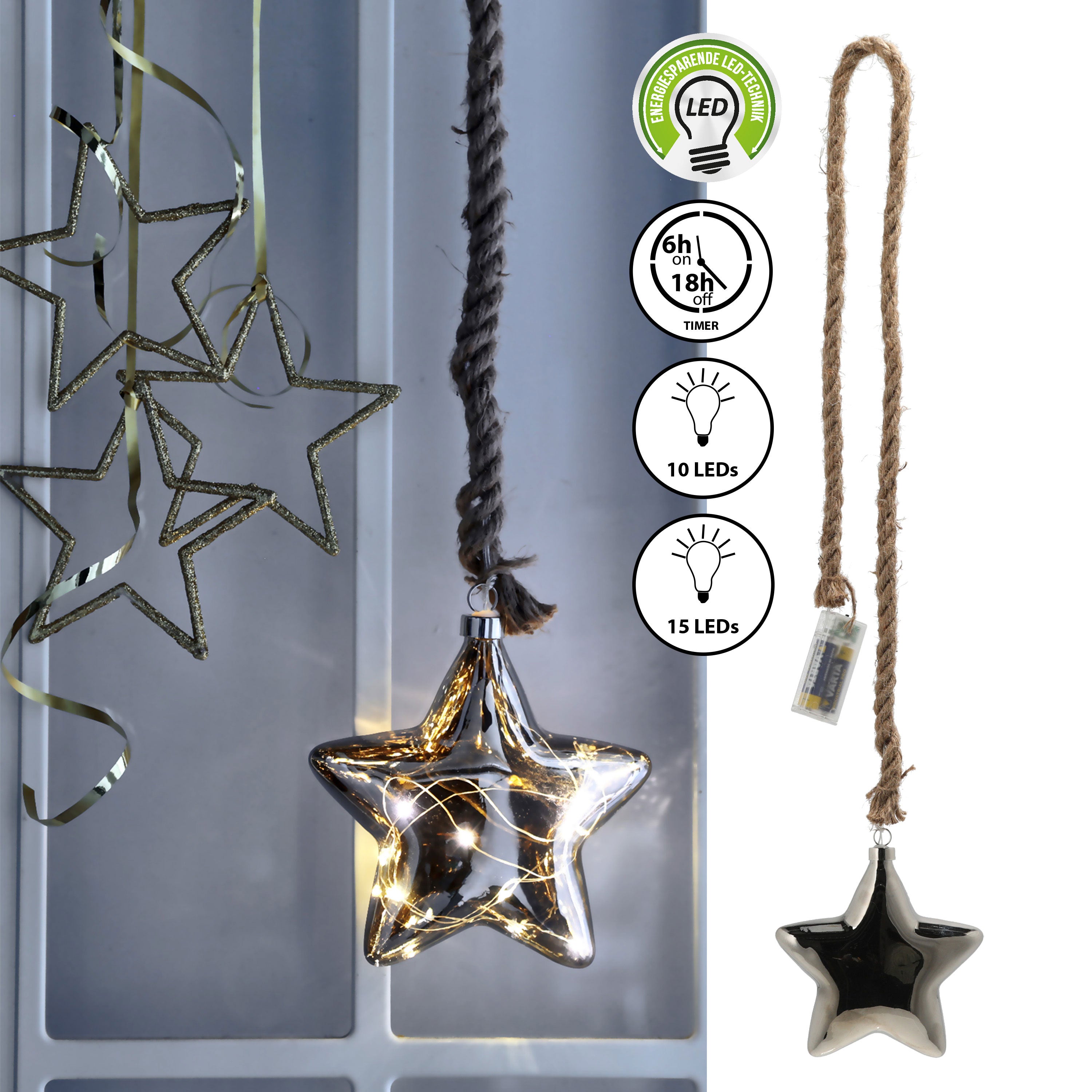 | LED Stern Juteseil zum Aufhängen 10 LEDs | ||||||||||||||||