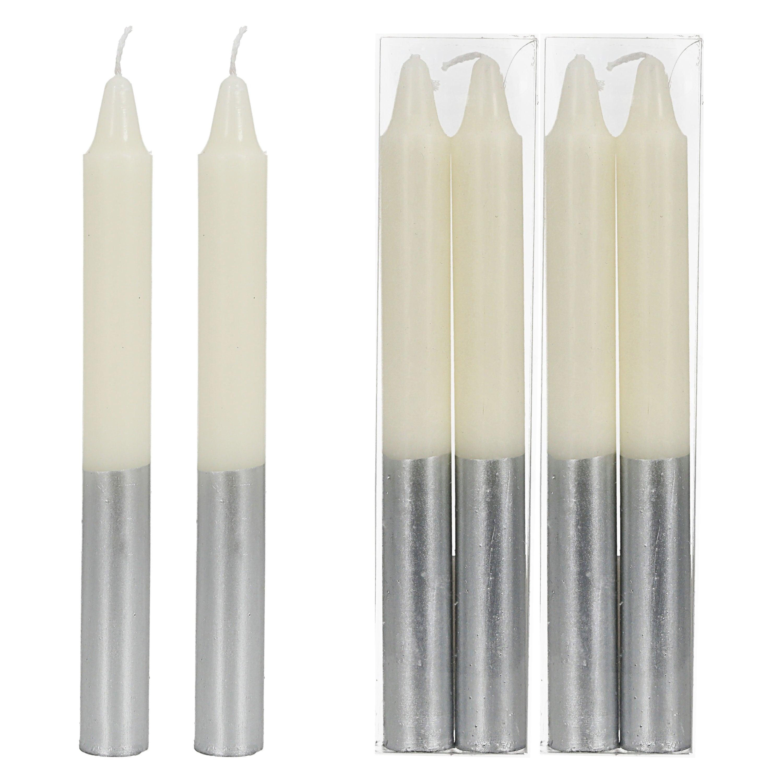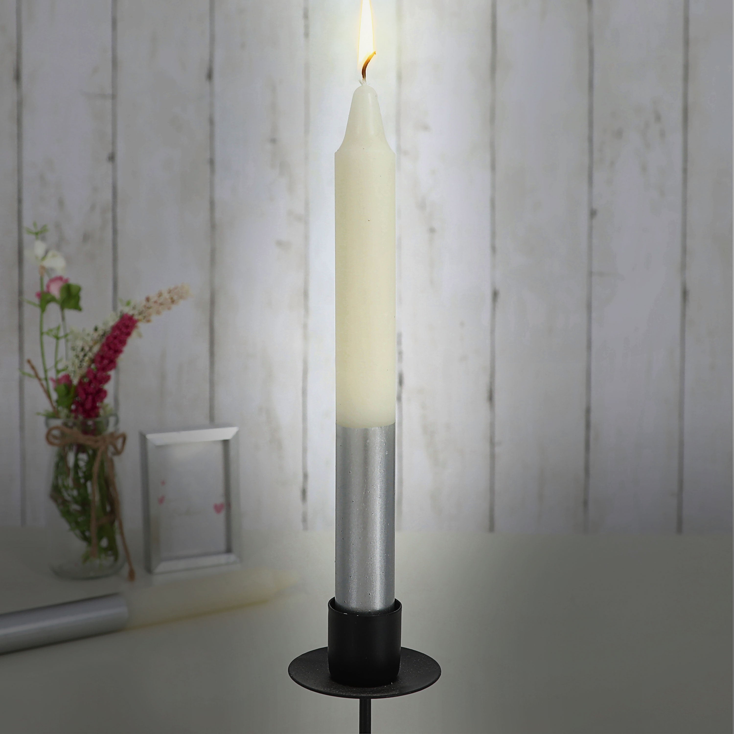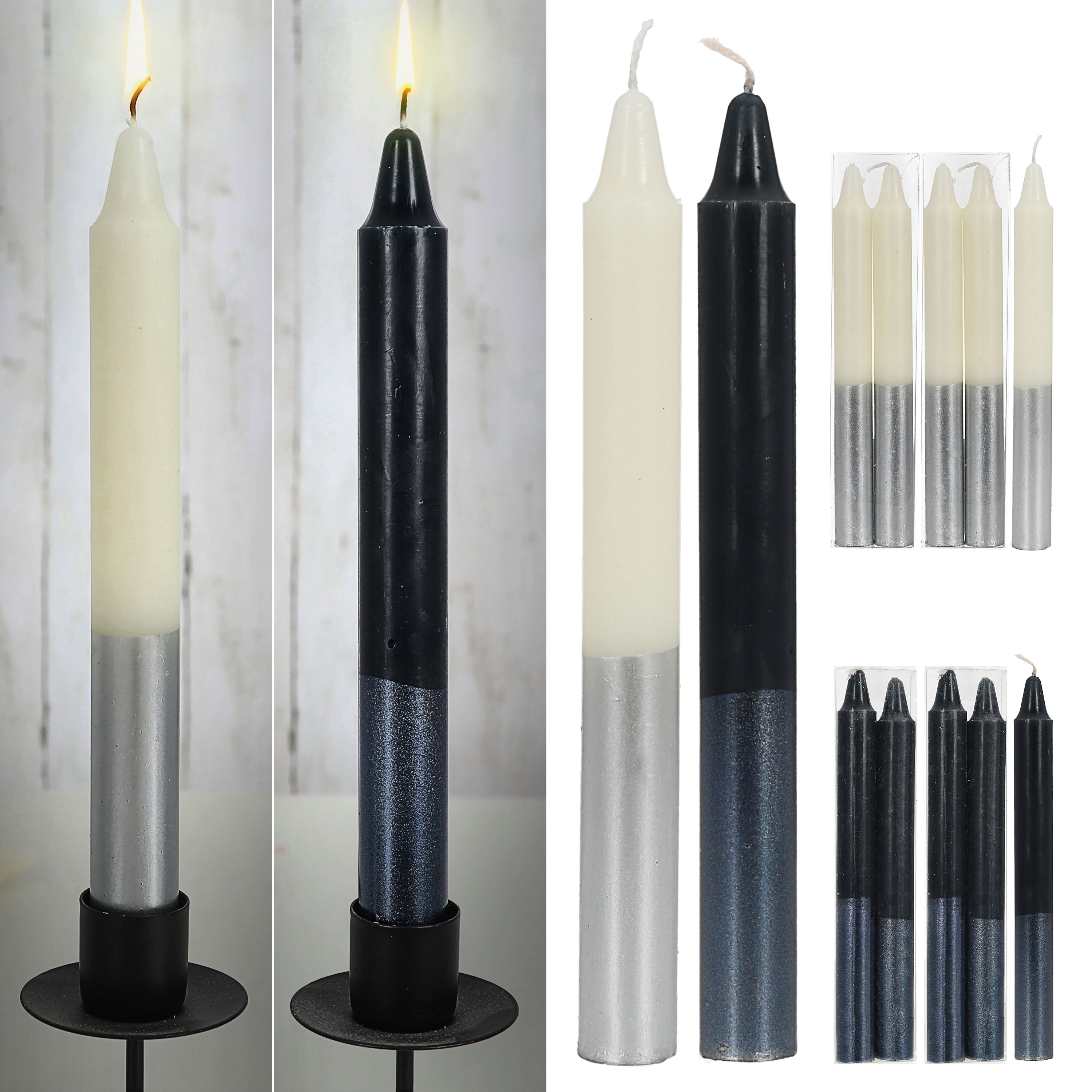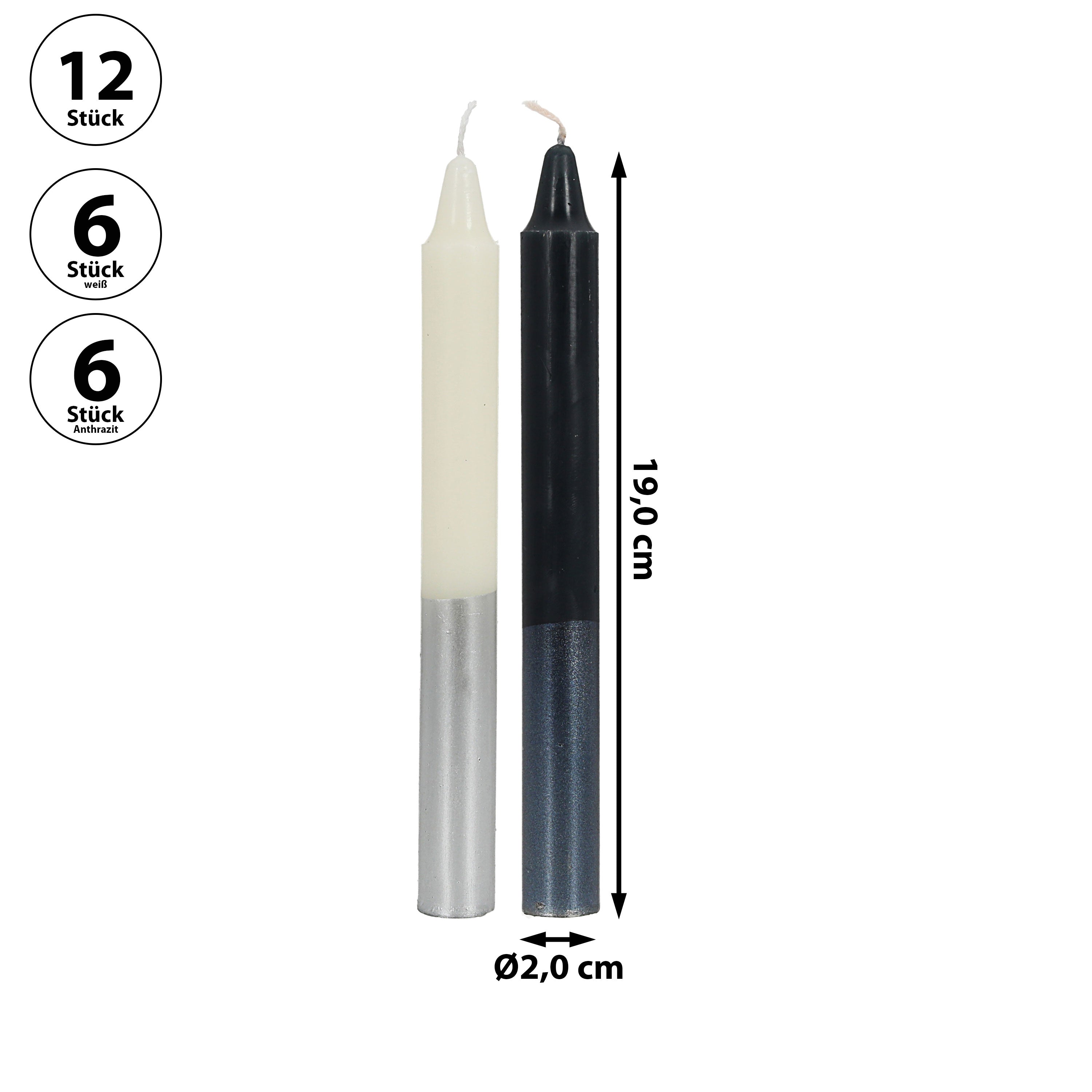 Stabkerze 12er Set 6x weiß mit silber 6x Anthrazit mit silber 2x19cm Paraffin Dekokerze Farbverlauf Kerze