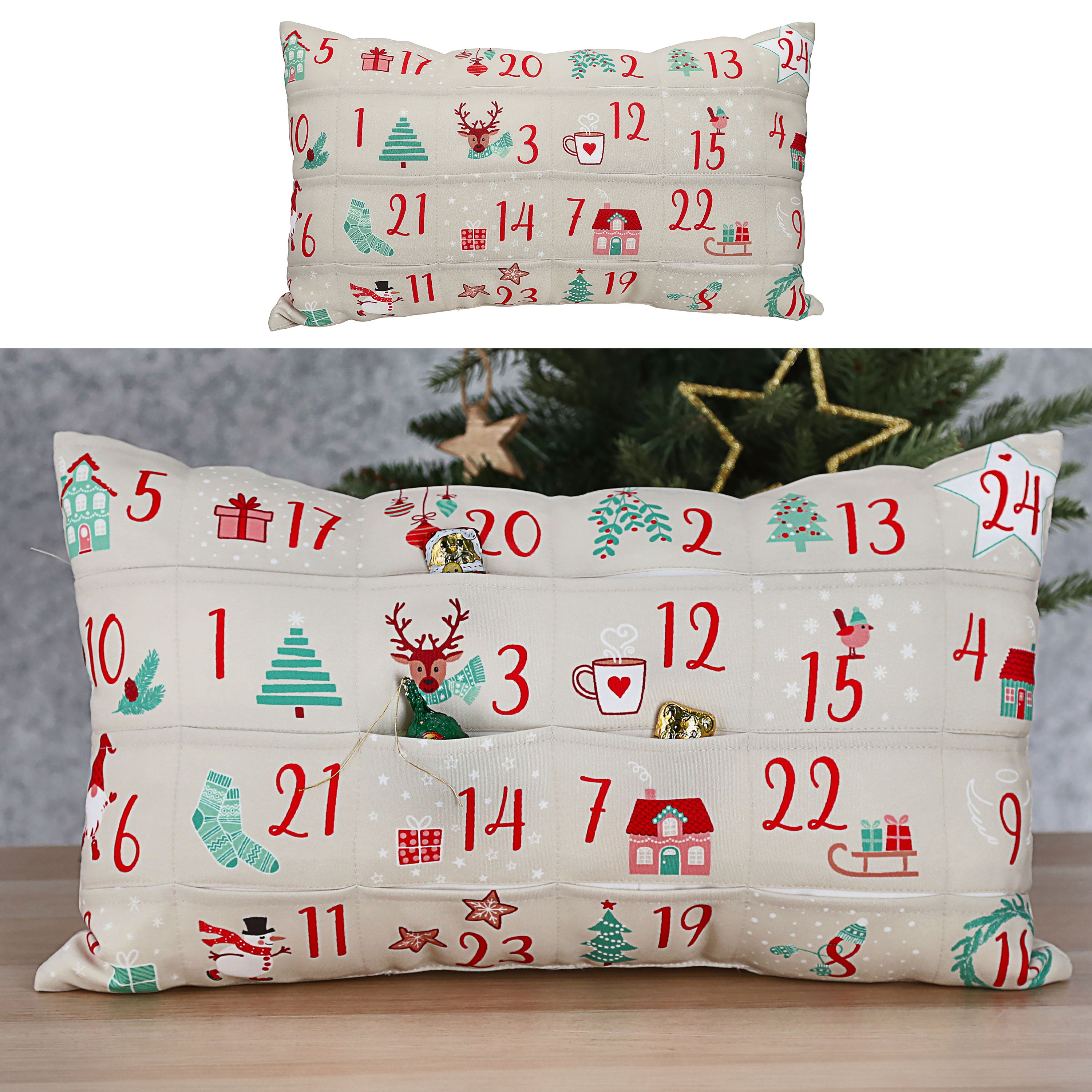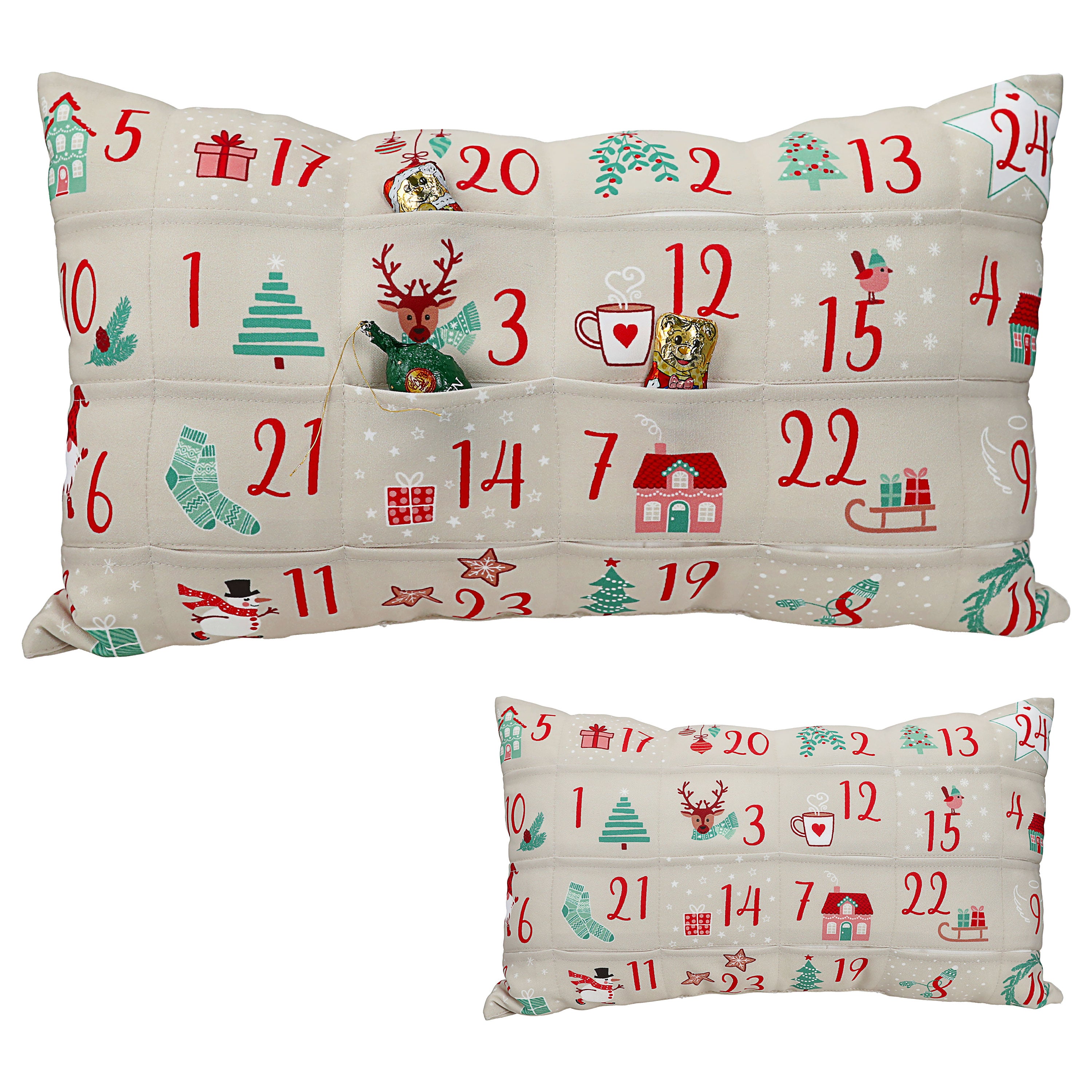Adventskalender Kissen mit 24 Einstecktaschen 50x30x10cm Polyester 210gsm 1-24 Weihnachtsmotive Adventszeit Kalender Weihnachtsspruch