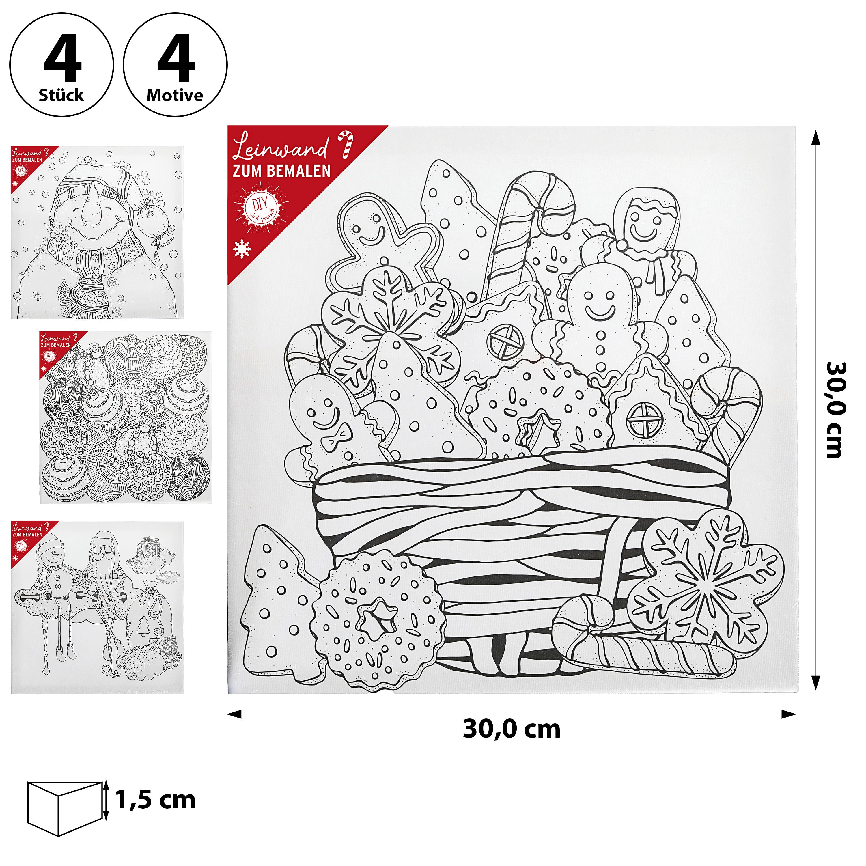 | 4er Set Leinwand zum Ausmalen 4 Weihnachtsmotive | ||||||||||||