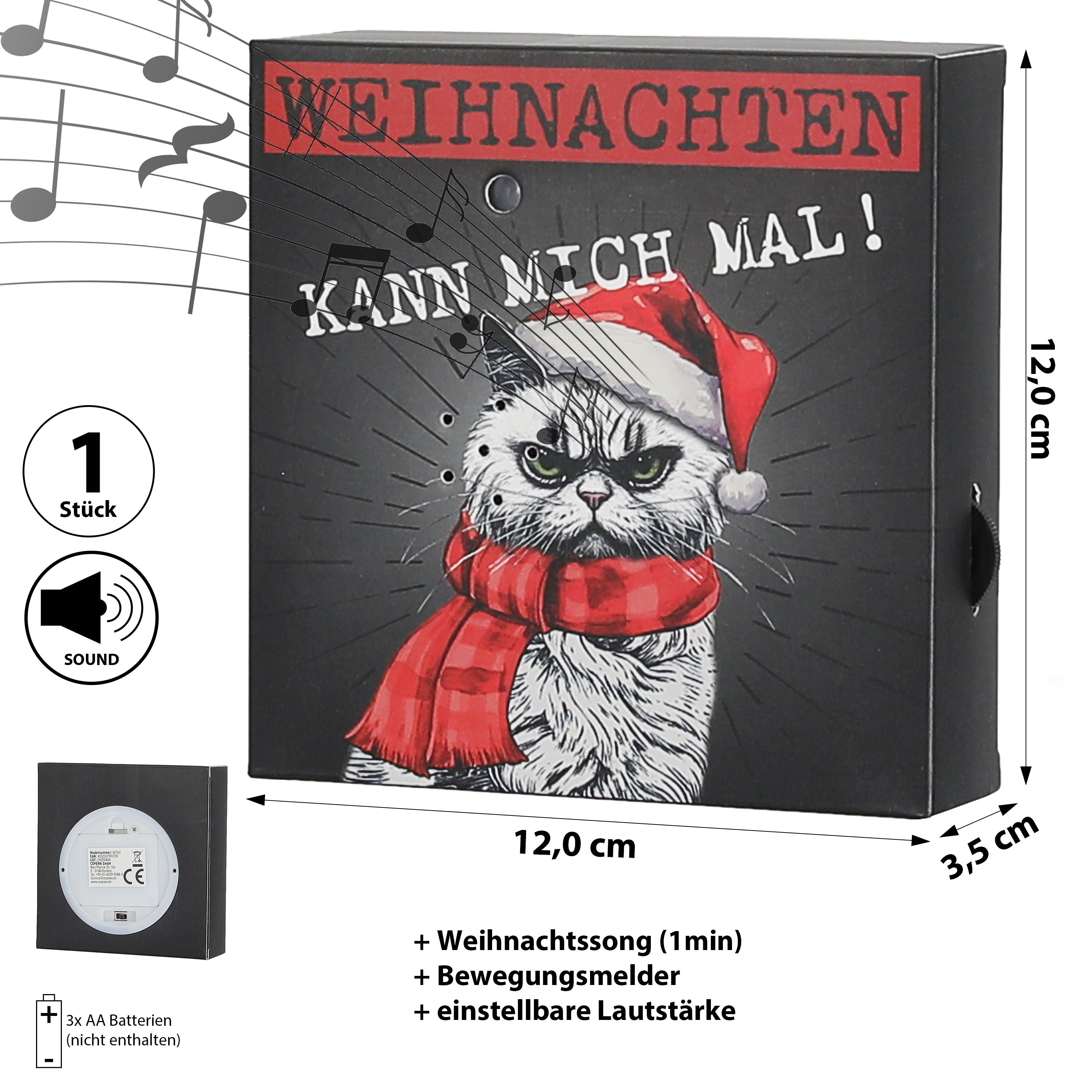| Soundbox mit Katze im Nikolauskostüm | ||||||||||||