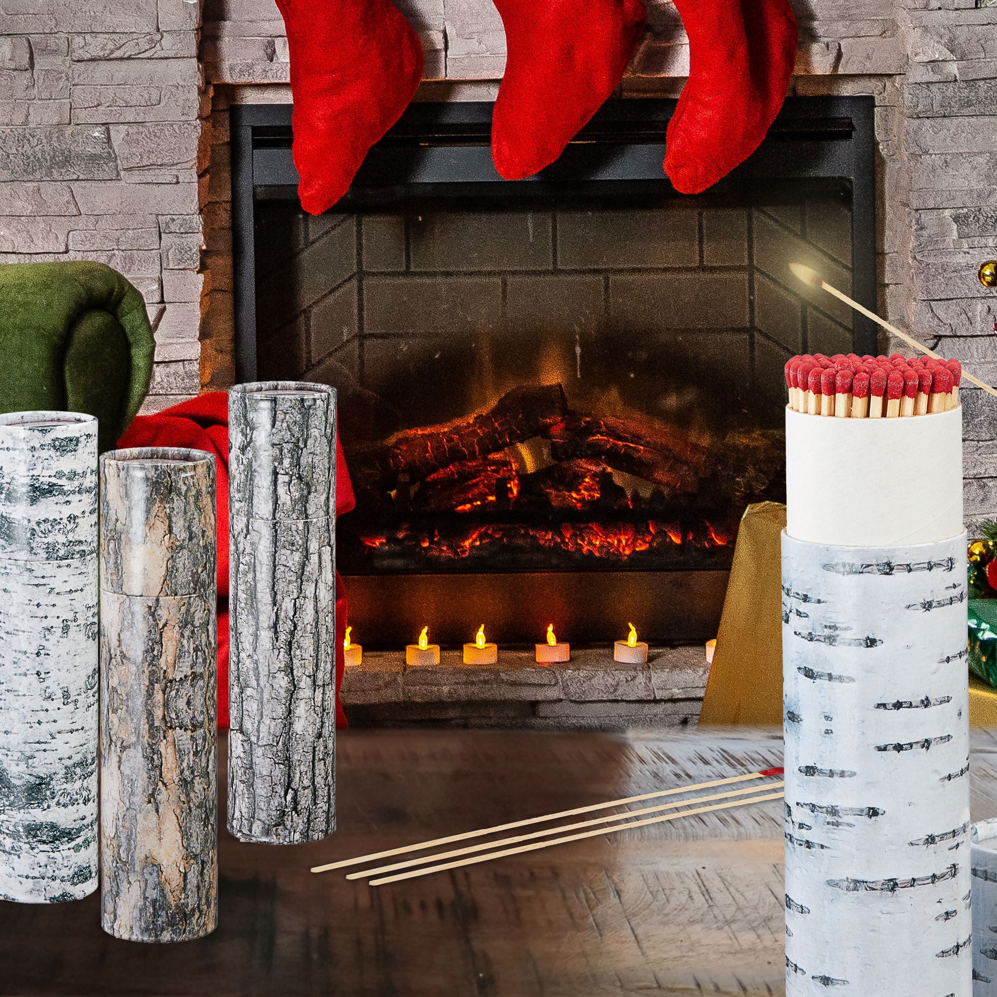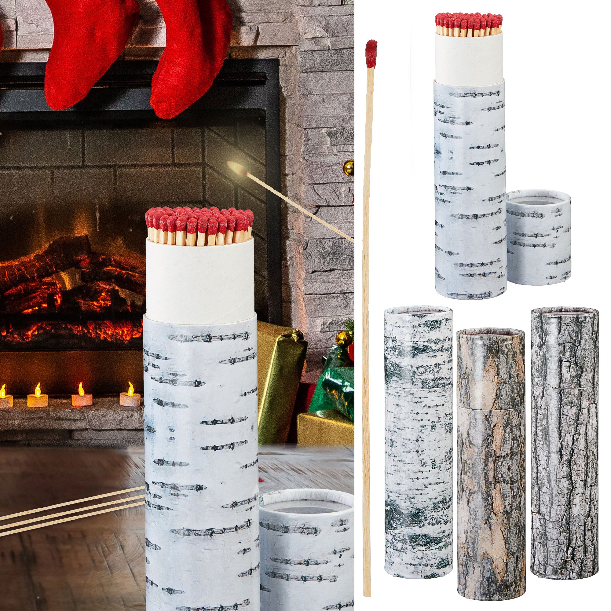 4x Kaminstreichhölzer L20cm 4 Packungs-Motive à 75 Stk. Zündhölzer Streichholzschachtel Weihnachtsdesign
