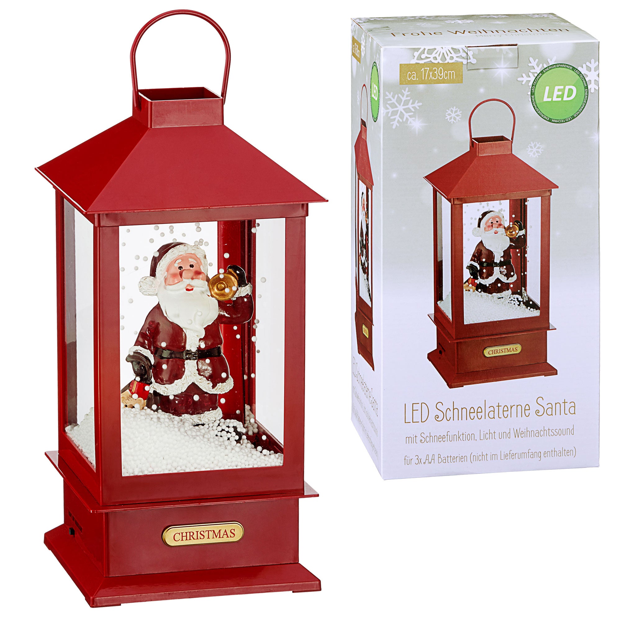 | LED Laterne Santa mit Schneefunktion und Weihnachtsmusik | ||||||||||||||||