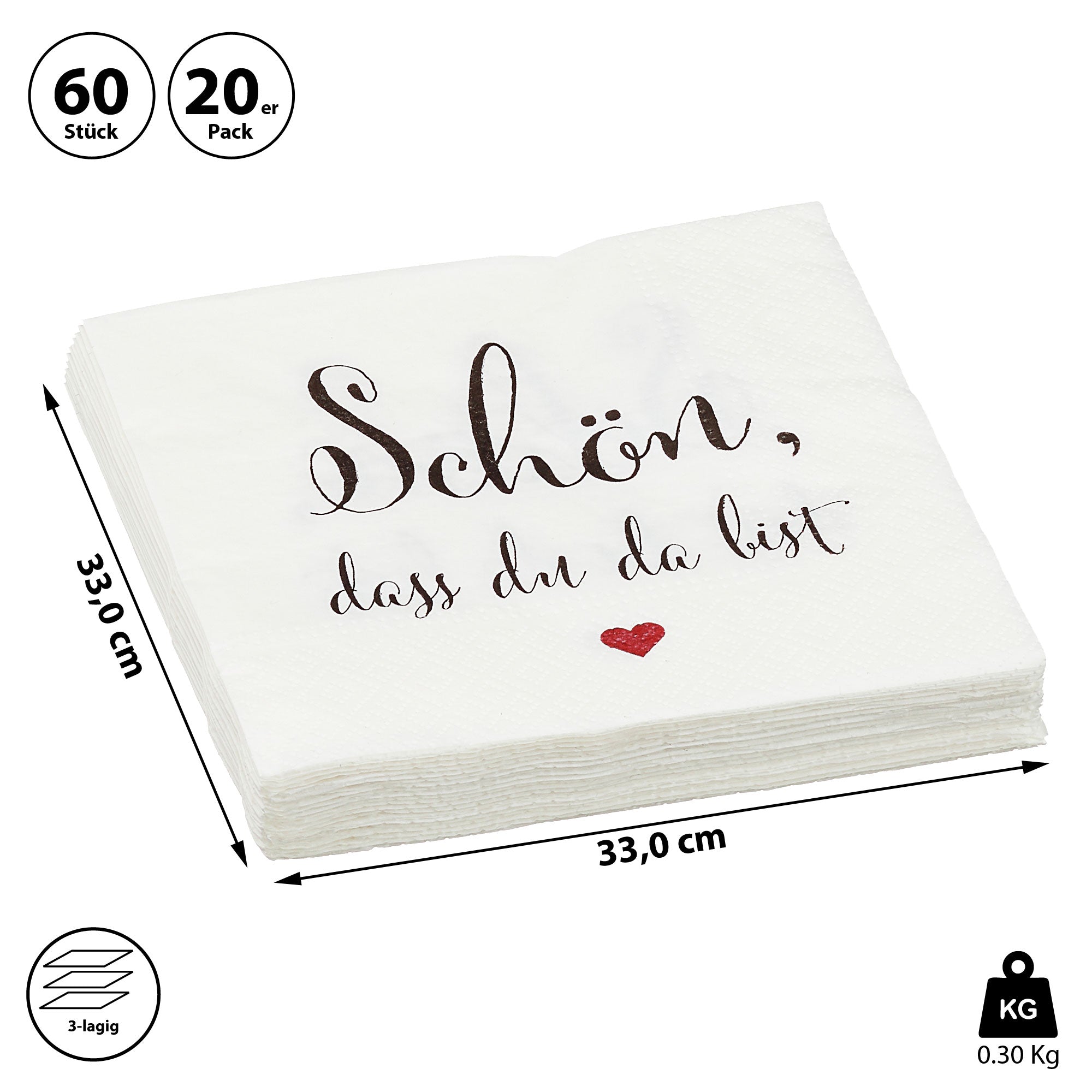 Servietten "Schön, dass Du da bist" 60er Set 3lagig Papierserviette Motivserviette stoffähnlich Tuch