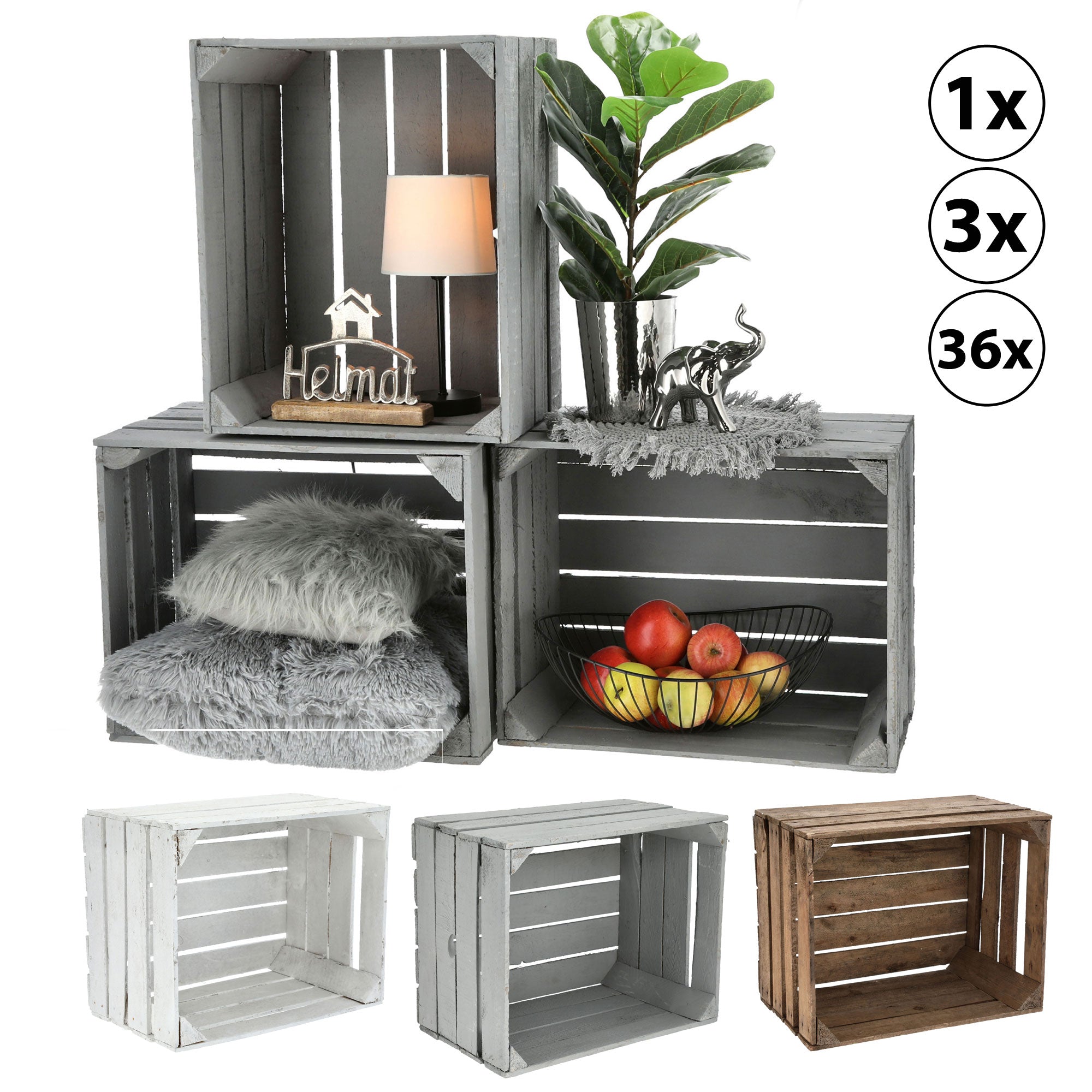 1/3/36x Obstkiste Holzkiste Weinkiste Stapelkiste Vintage Look