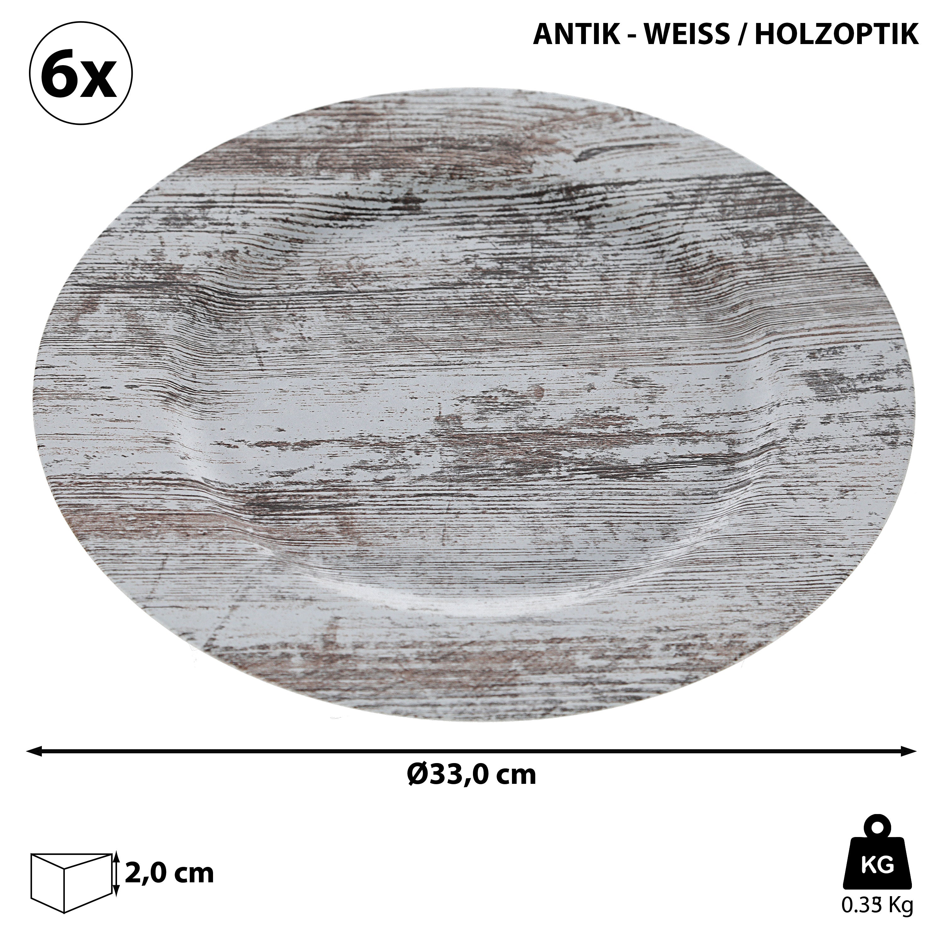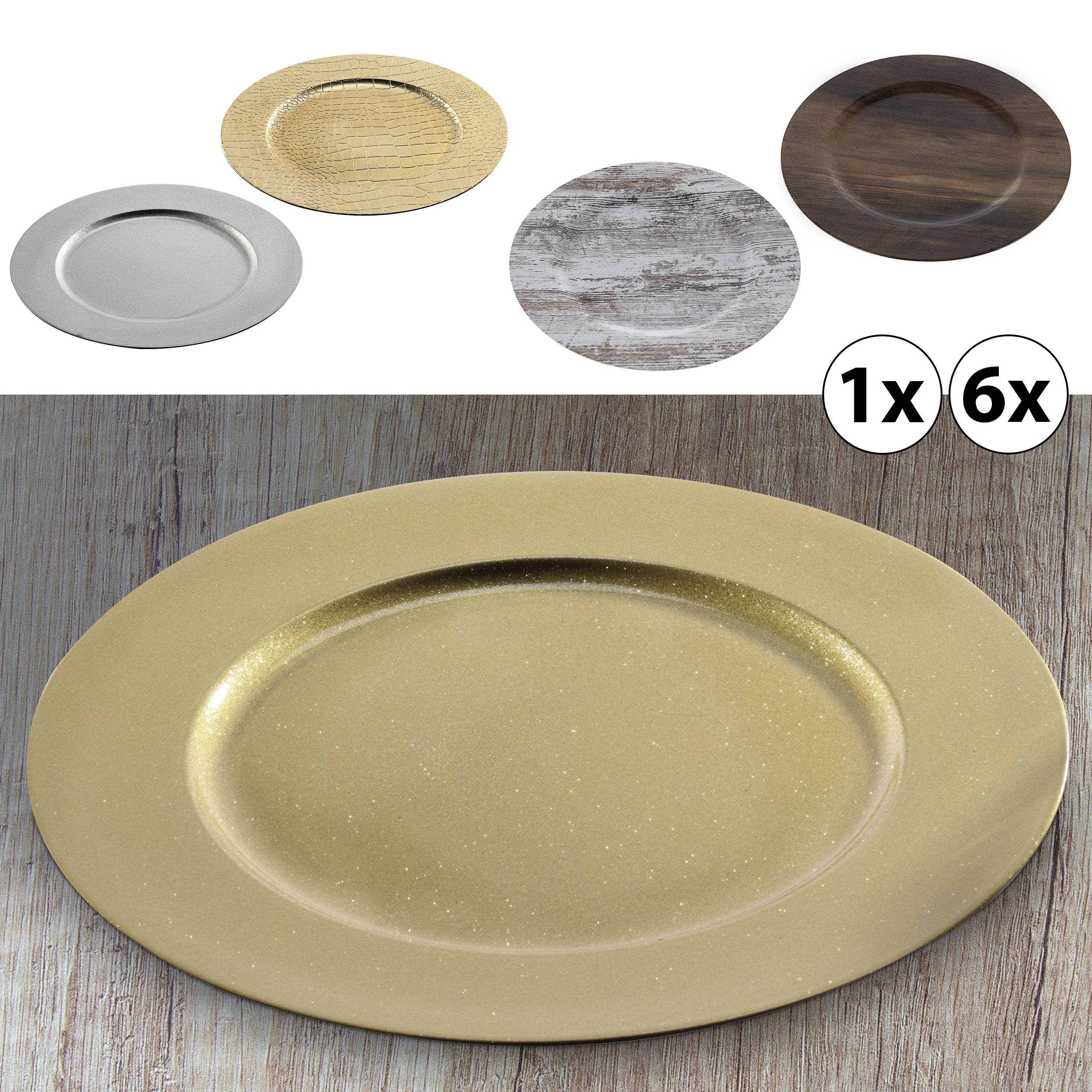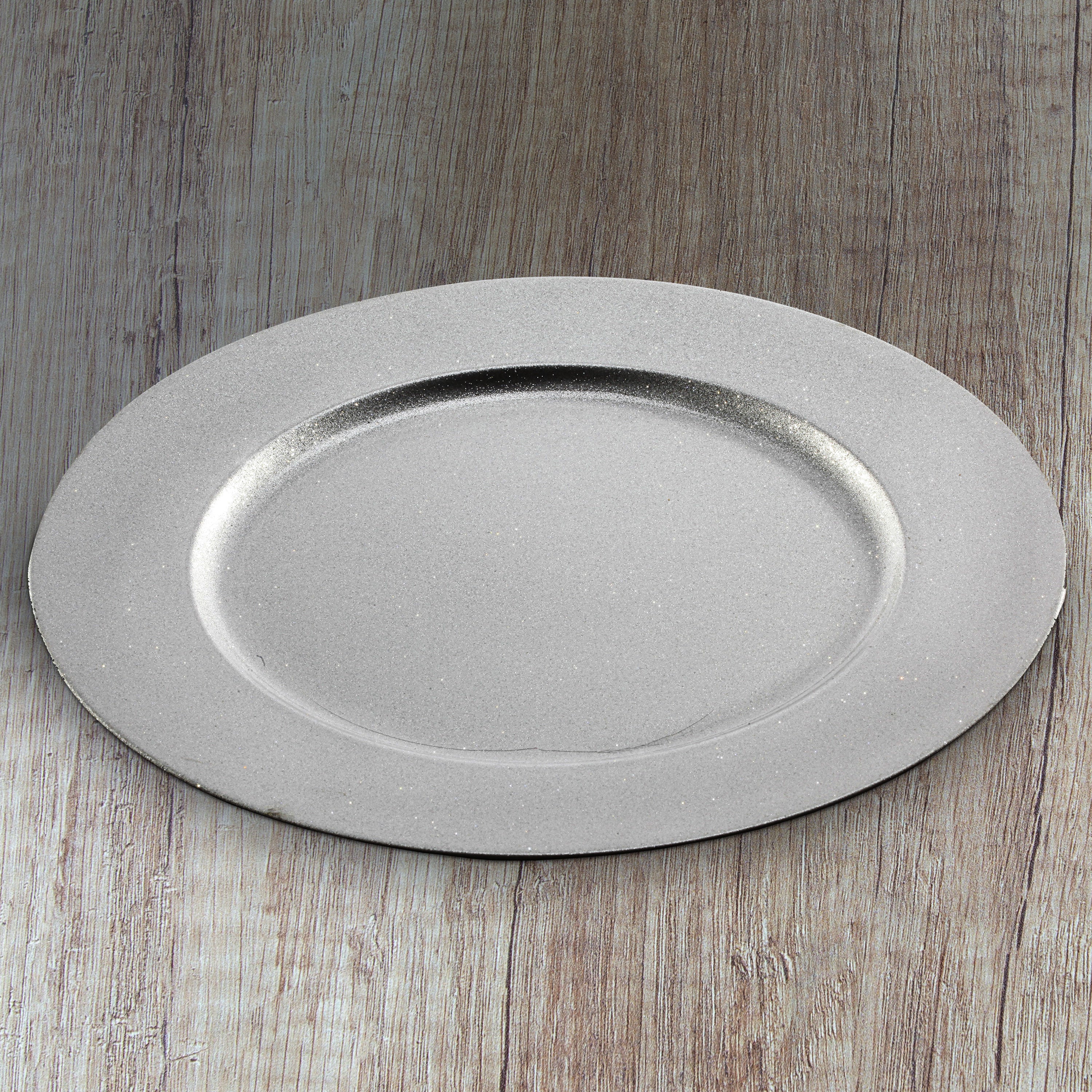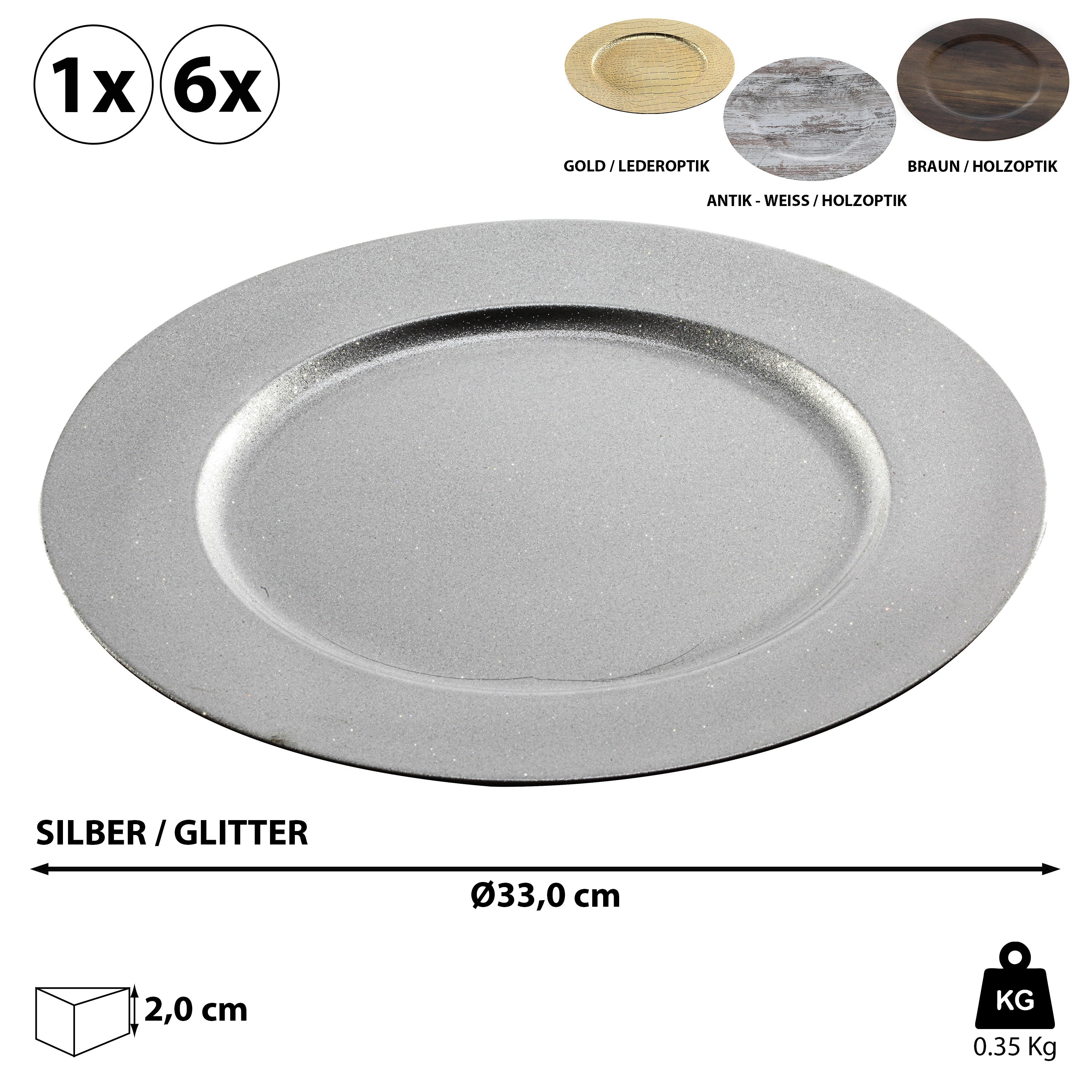 1/6x Dekoteller Tablett 'Glitter' PVC silber Ø 33cm Glitzeroptik Platzteller Kerzenteller Tischdekoration