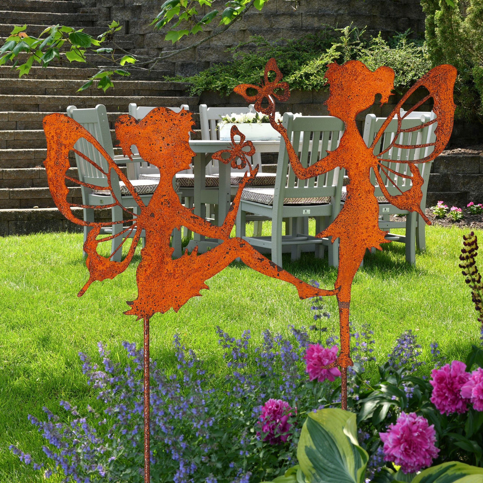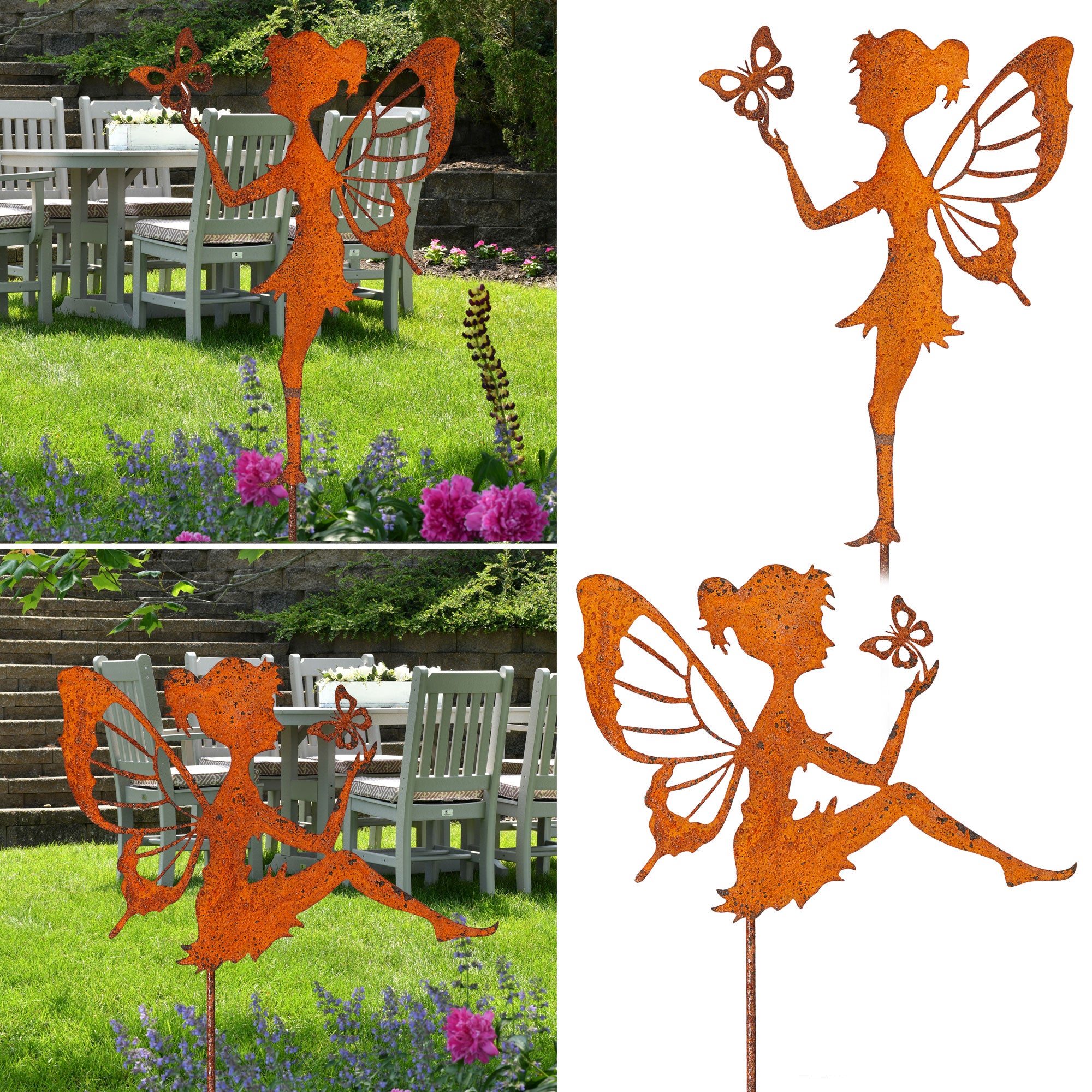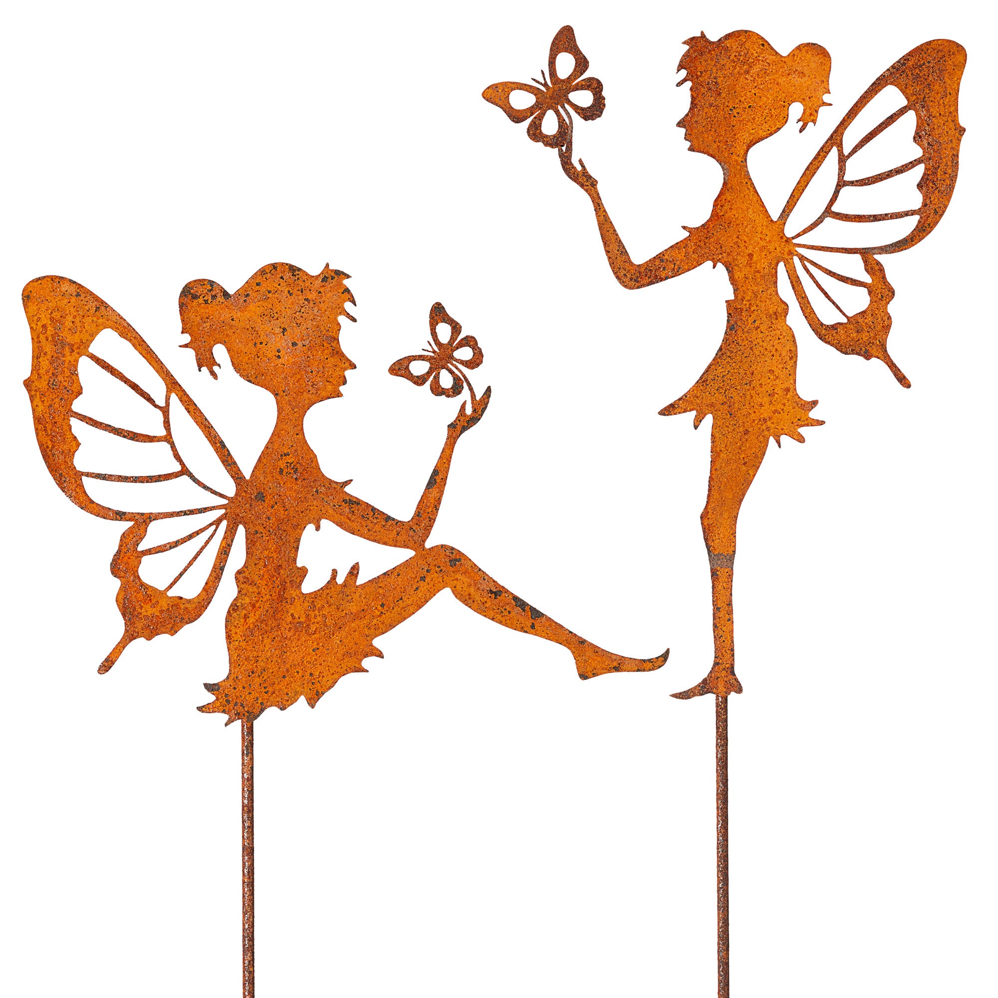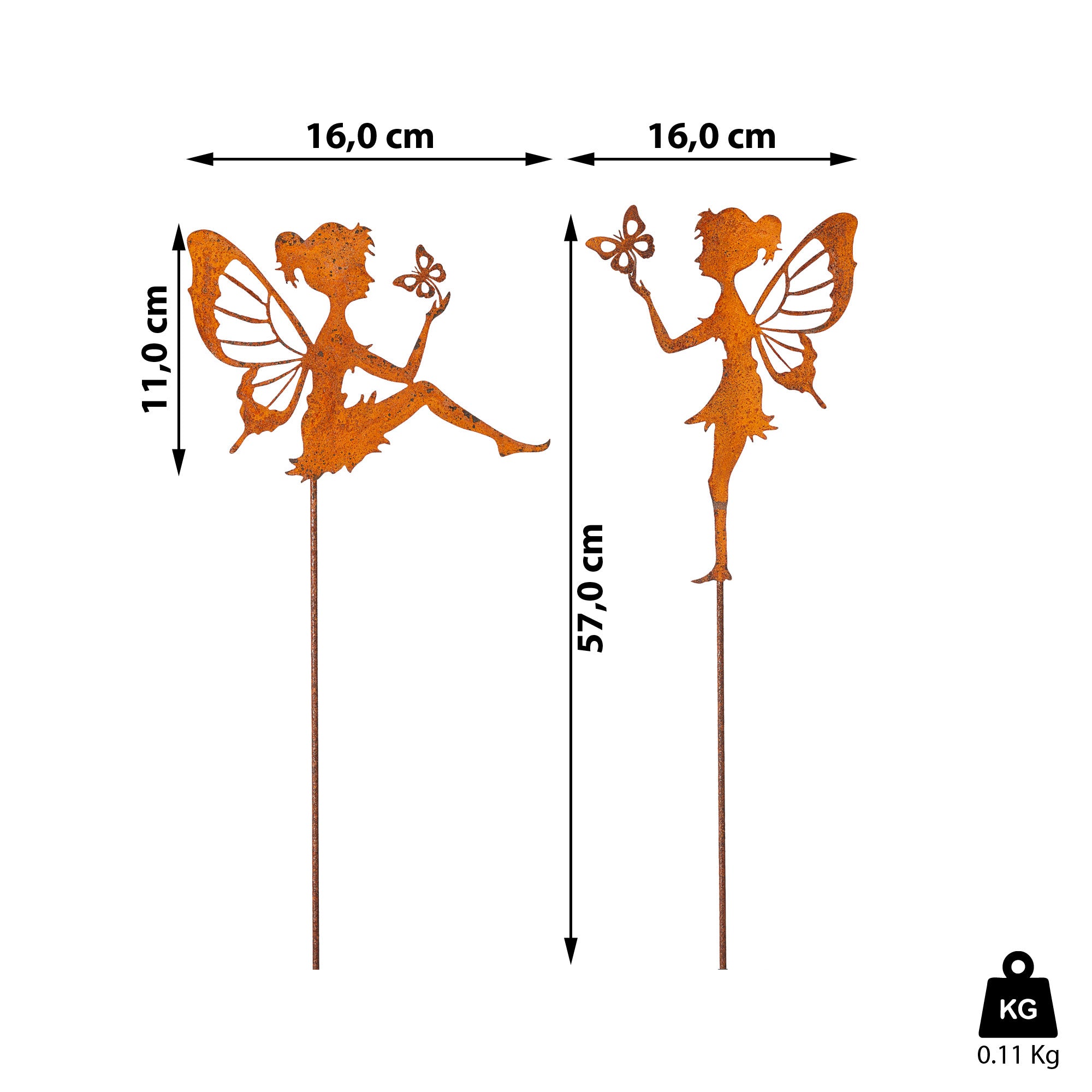 2x Gartenstecker Fee H57cm Rost-Design 2 Motive Zink Gartendekoration Blumentopfstecker