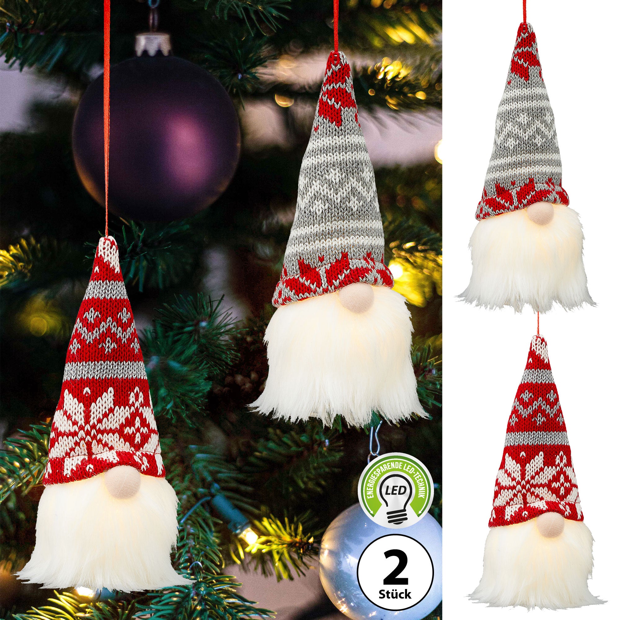 2x LED Wichtel H17cm zum Aufhängen Zwerg Weihnachtswichtel Wichtelmännchen Zwerg Adventsdeko Weihnachtsdeko
