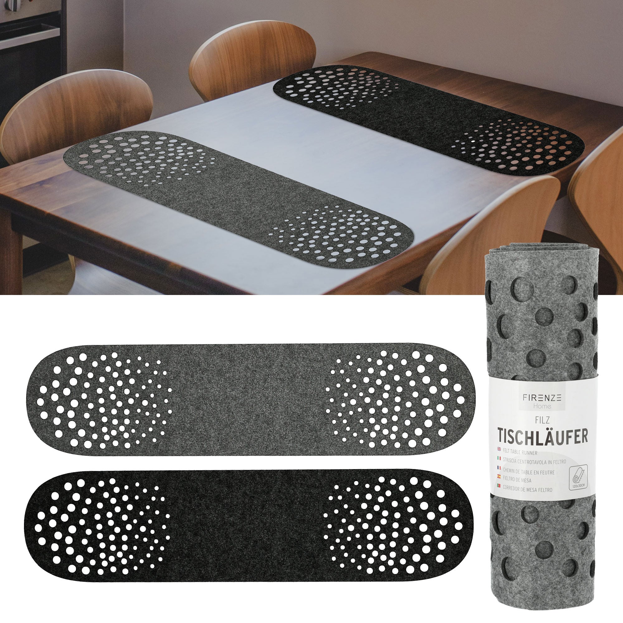2x Tischläufer aus Filz 2er Set hell-/dunkelgrau Tischband Filzläufer Tischdeko mit Muster