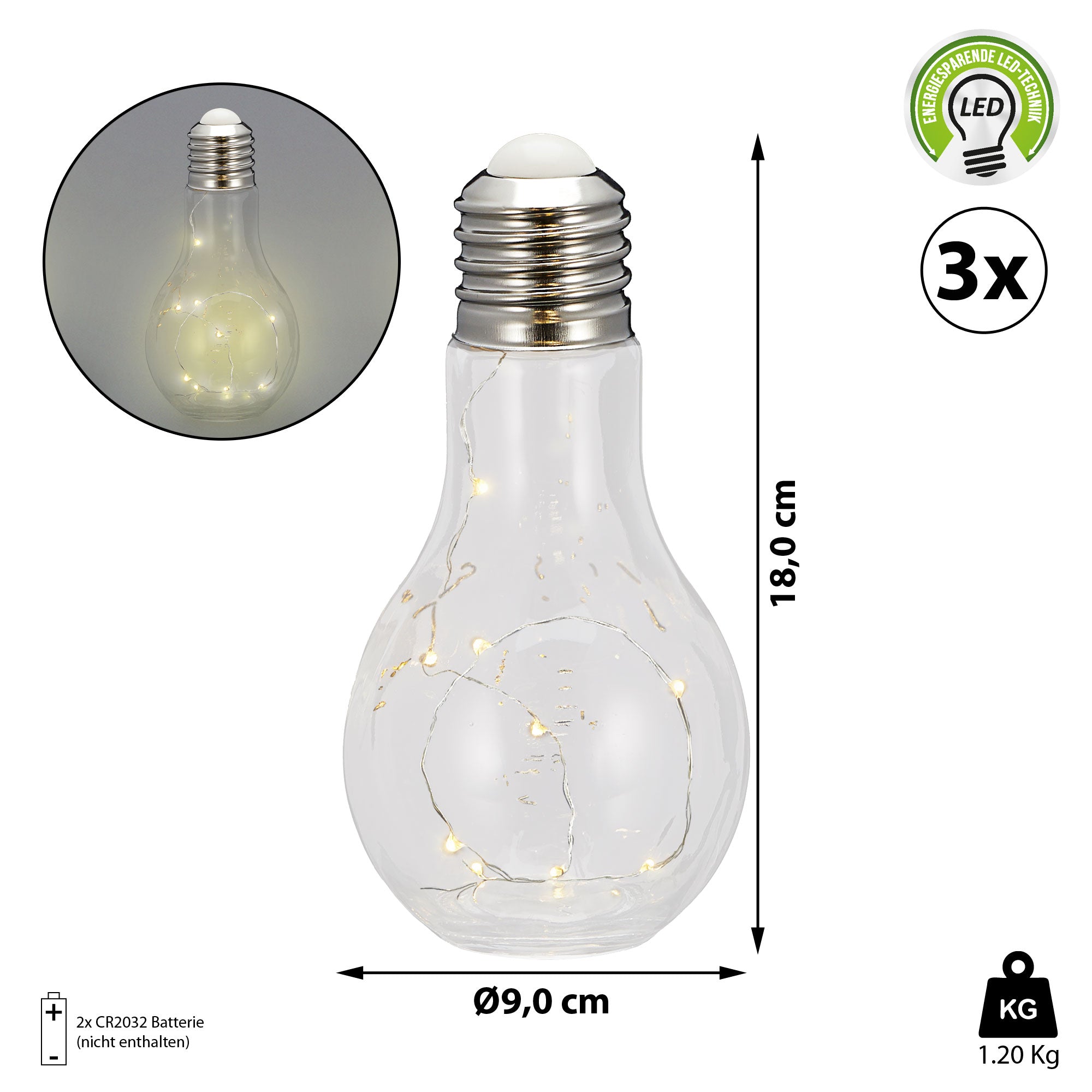 3x LED Dekoglühbirne zum Aufstellen klar H 18cm Ø 9cm Glühbirne LED - Birne