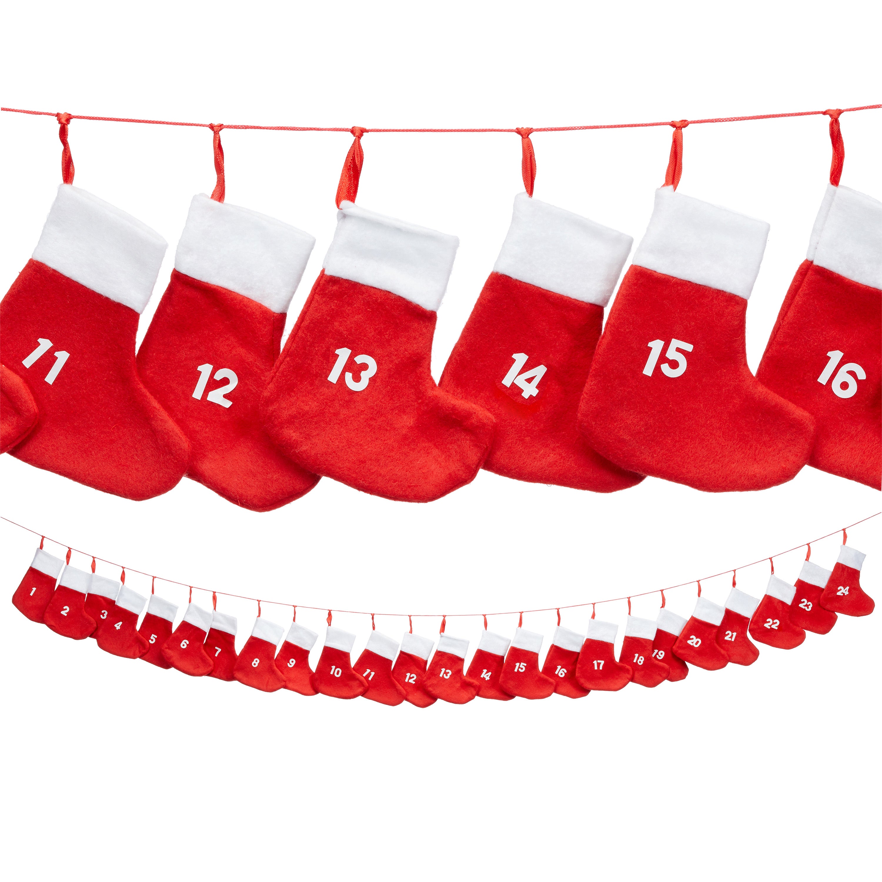 Adventskalender Socken 18x20cm Länge 260 cm Sockenkette Filz Söckchen zum Befüllen Weihnachtsstrumpf Adventszeit