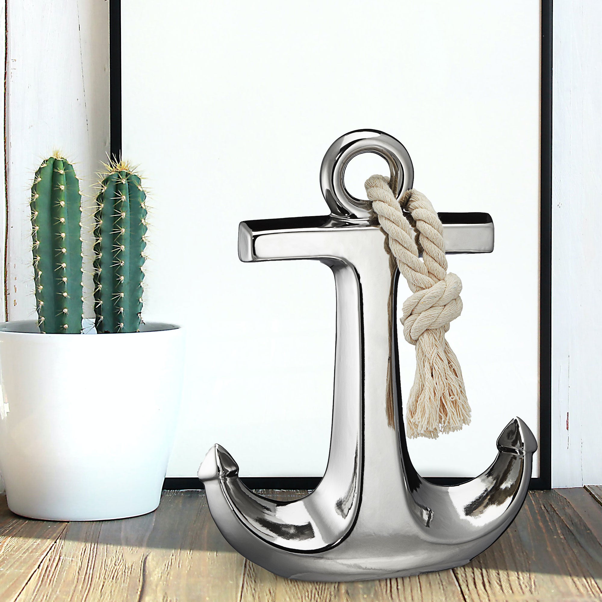Anker glänzend mit Tau silber Steingut H28cm maritime Dekoration Meer See
