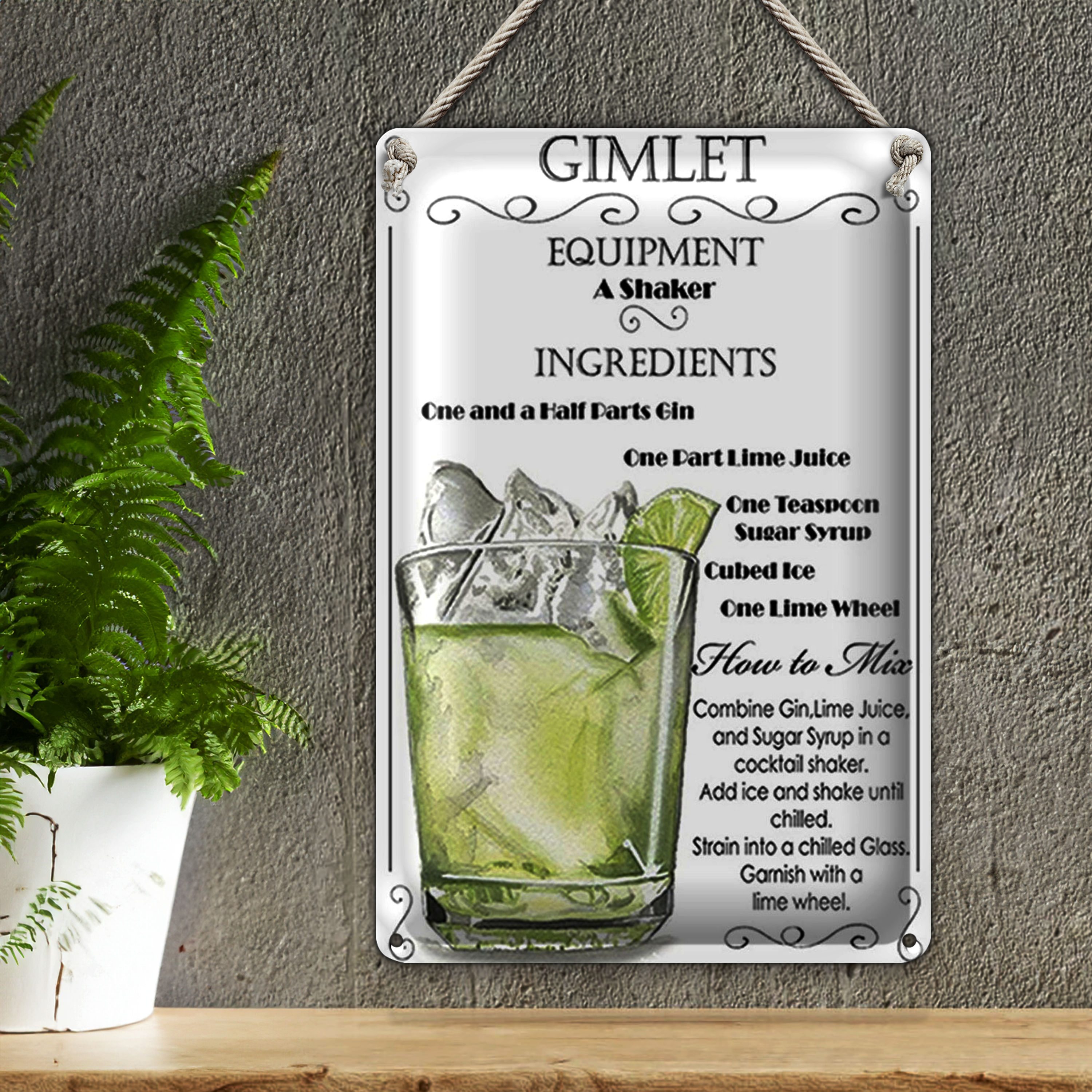 Blechschild 20x30cm Gimlet Equipment ingredients