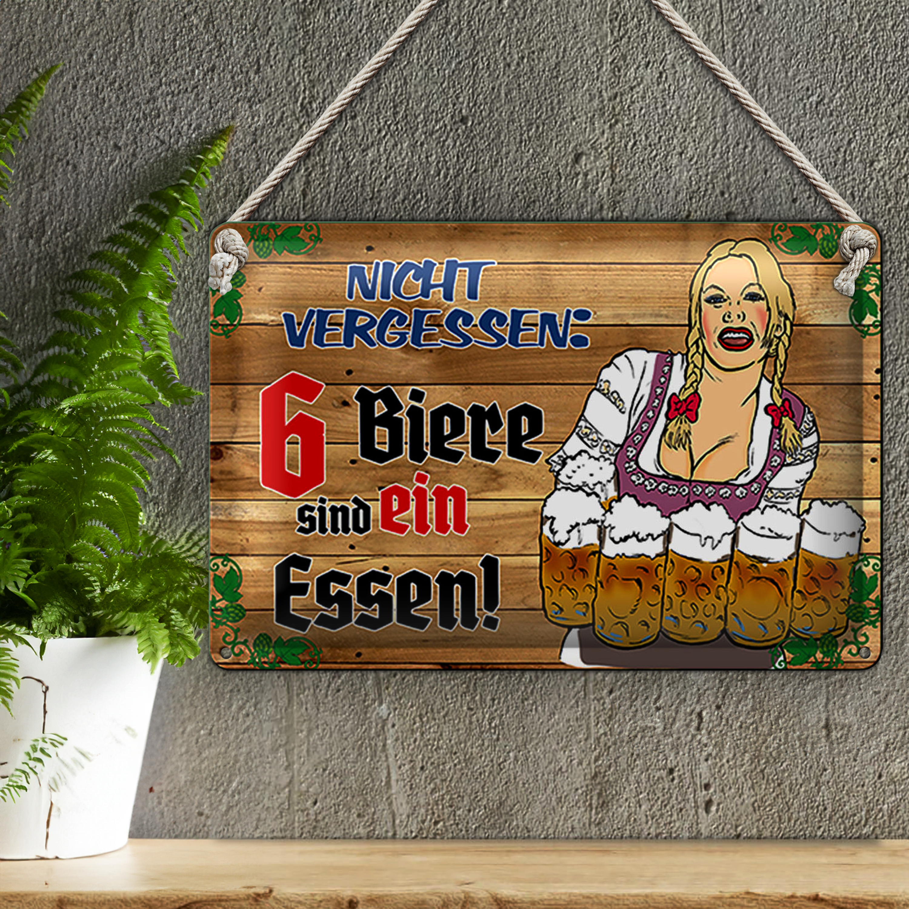 Blechschild 30x20cm 6 Biere sind ein Essen