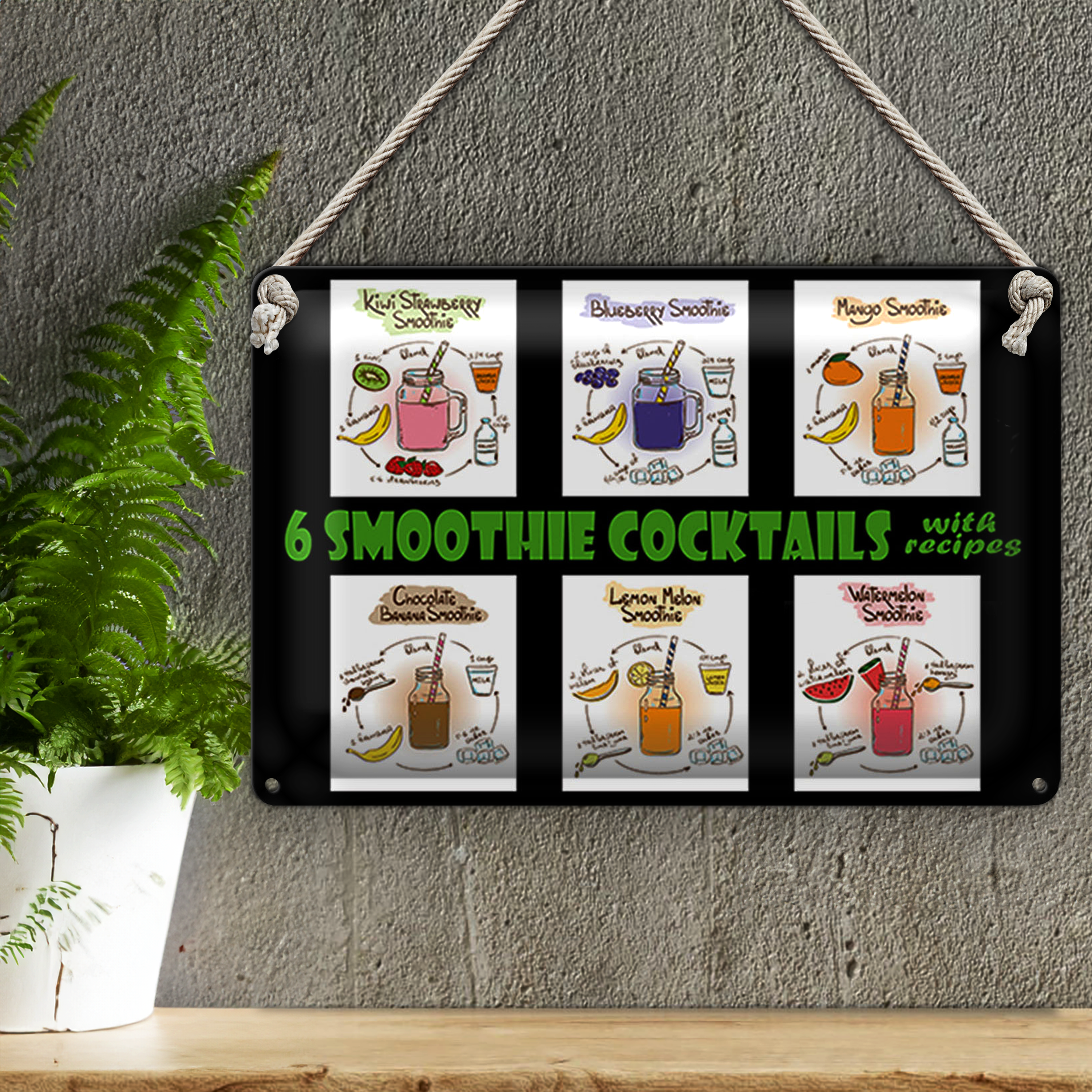 Blechschild 30x20cm 6 smoothie cocktails recipes
