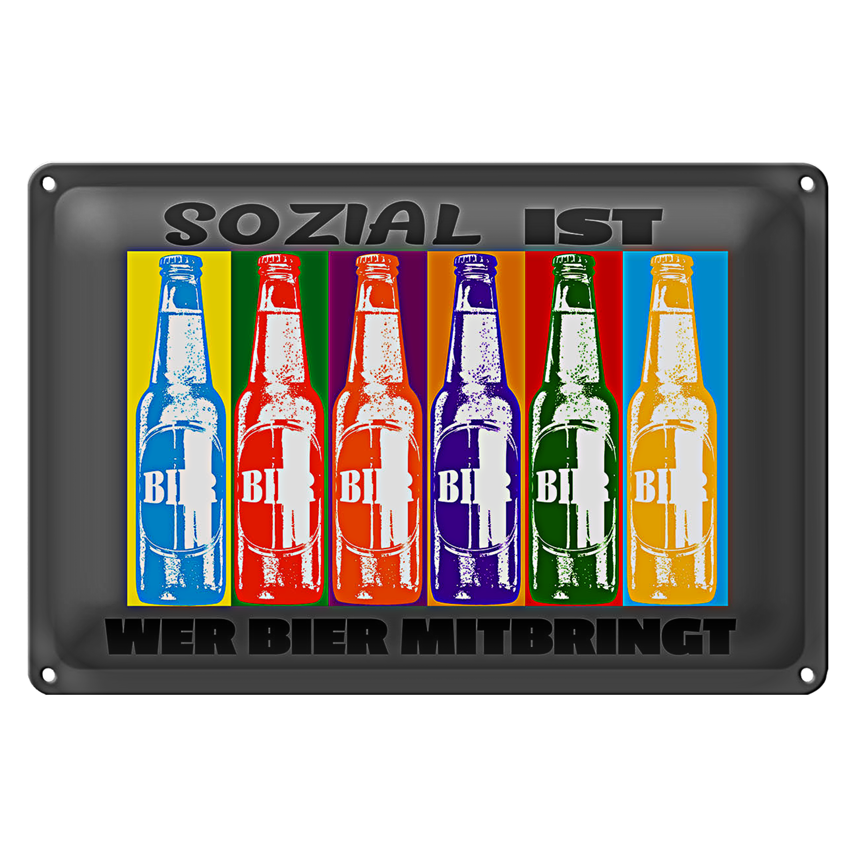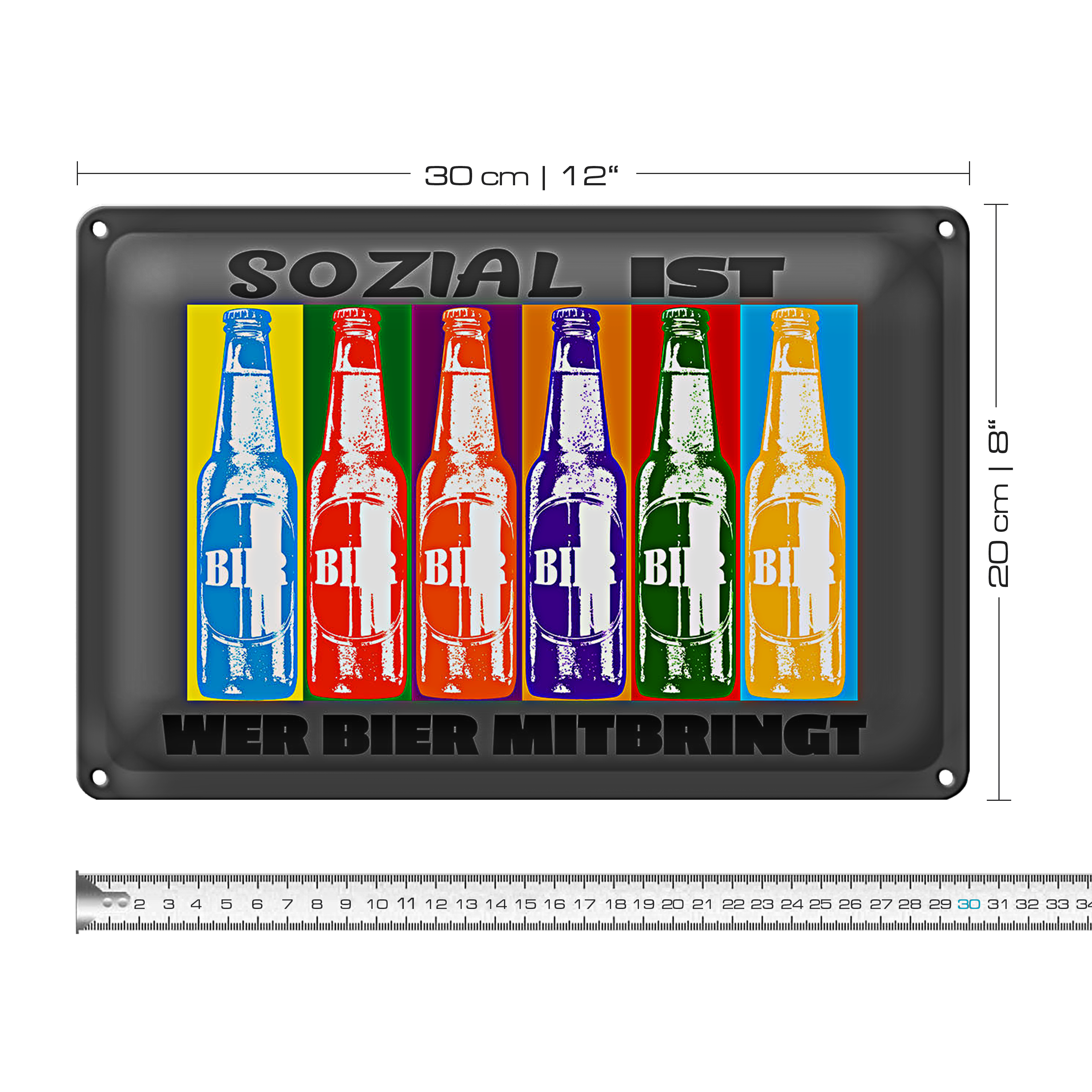 Blechschild 30x20cm sozial ist wer Bier mitbringt
