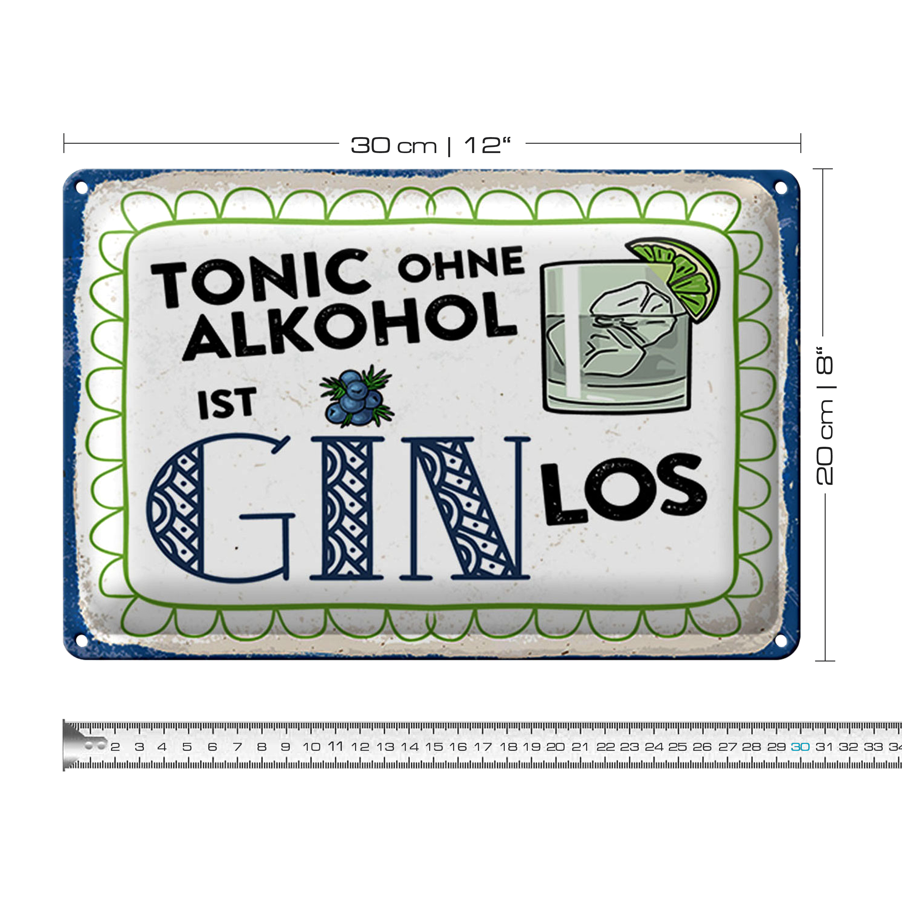 Blechschild 30x20cm Tonic ohne ist Gin los
