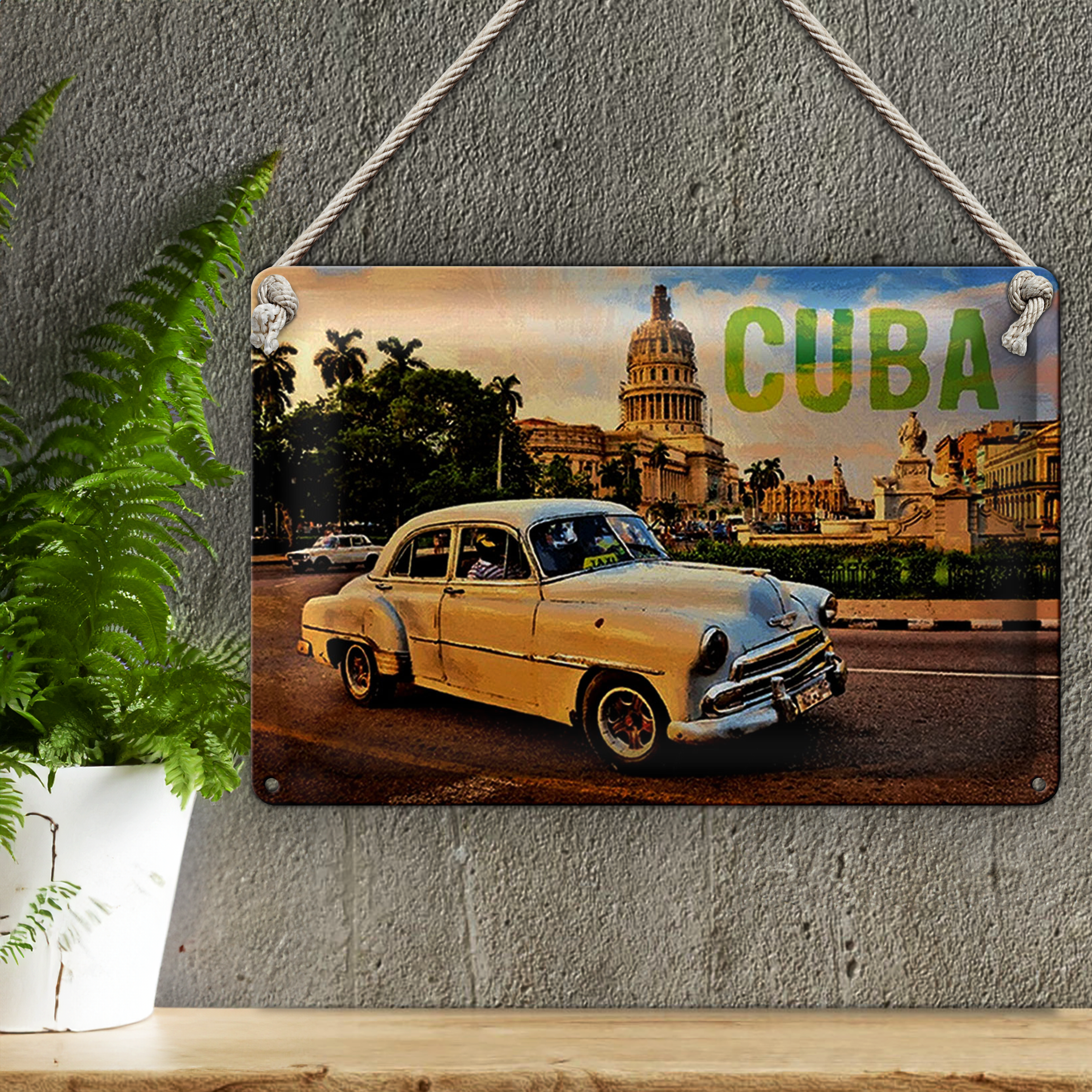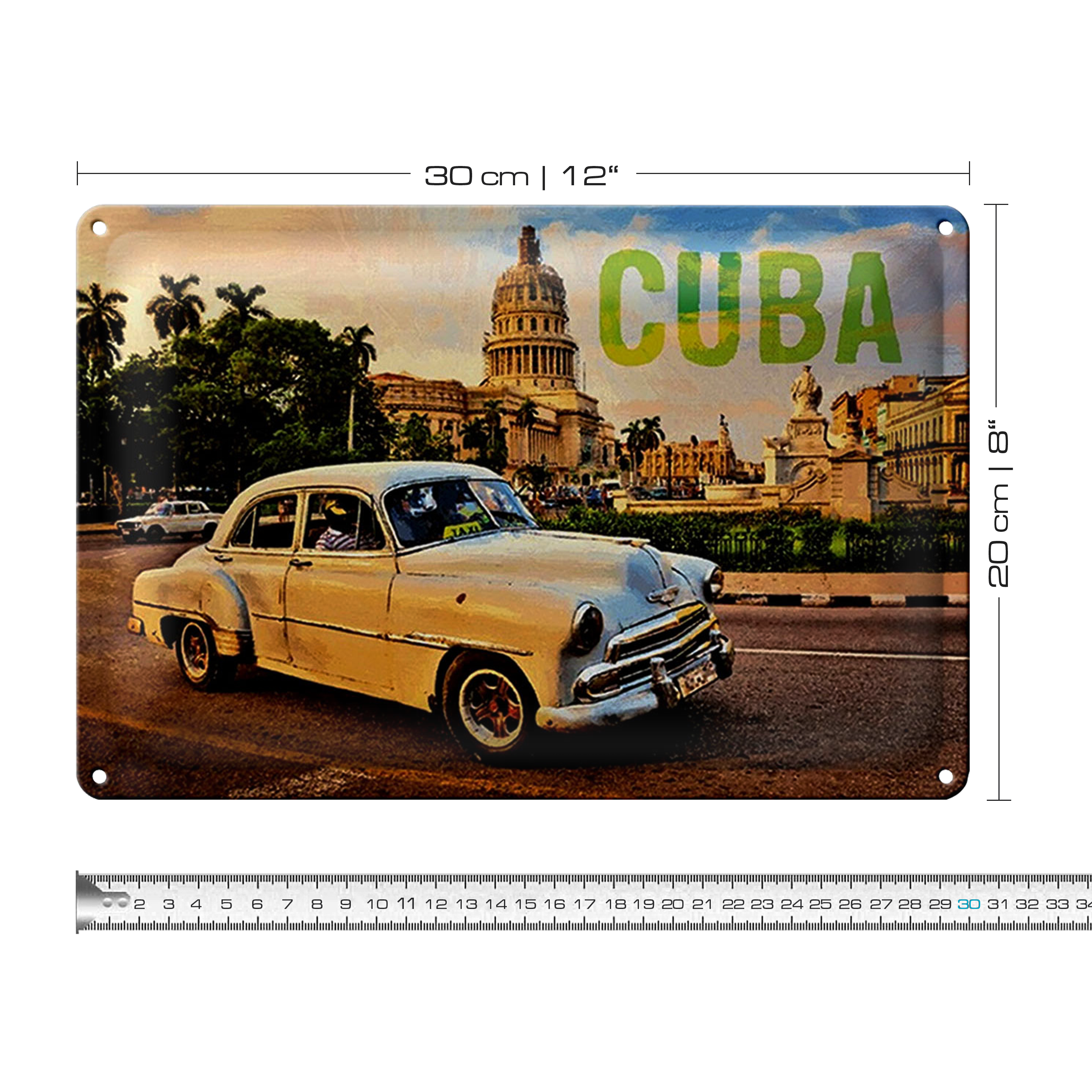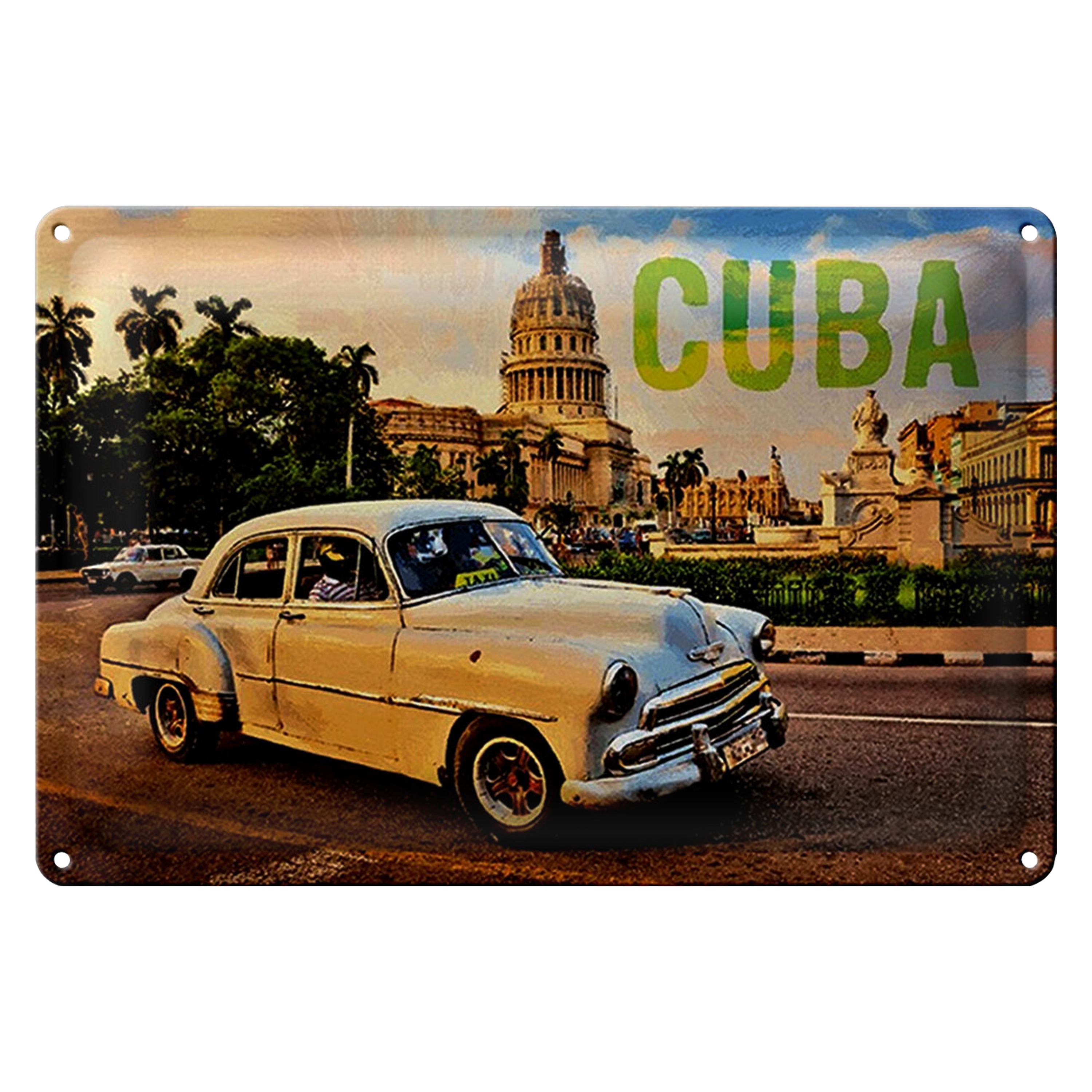 Blechschild 30x20cm vintage Kuba Oldtimer fahrend im Kreisverkehr Havanna