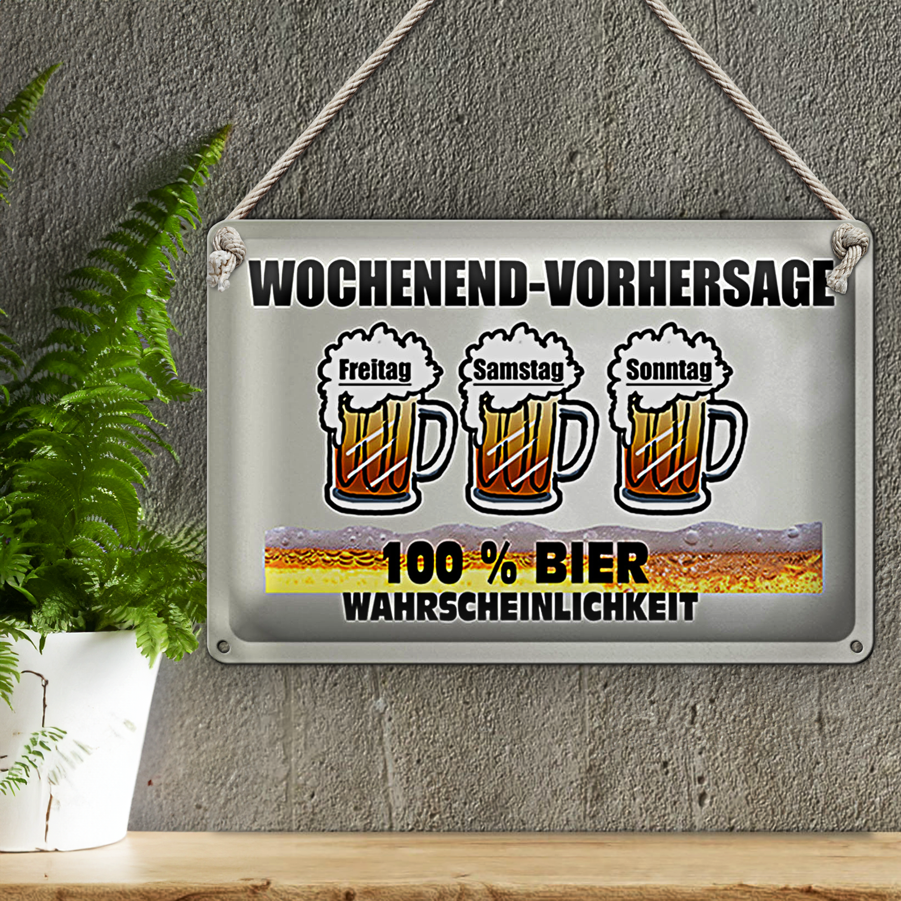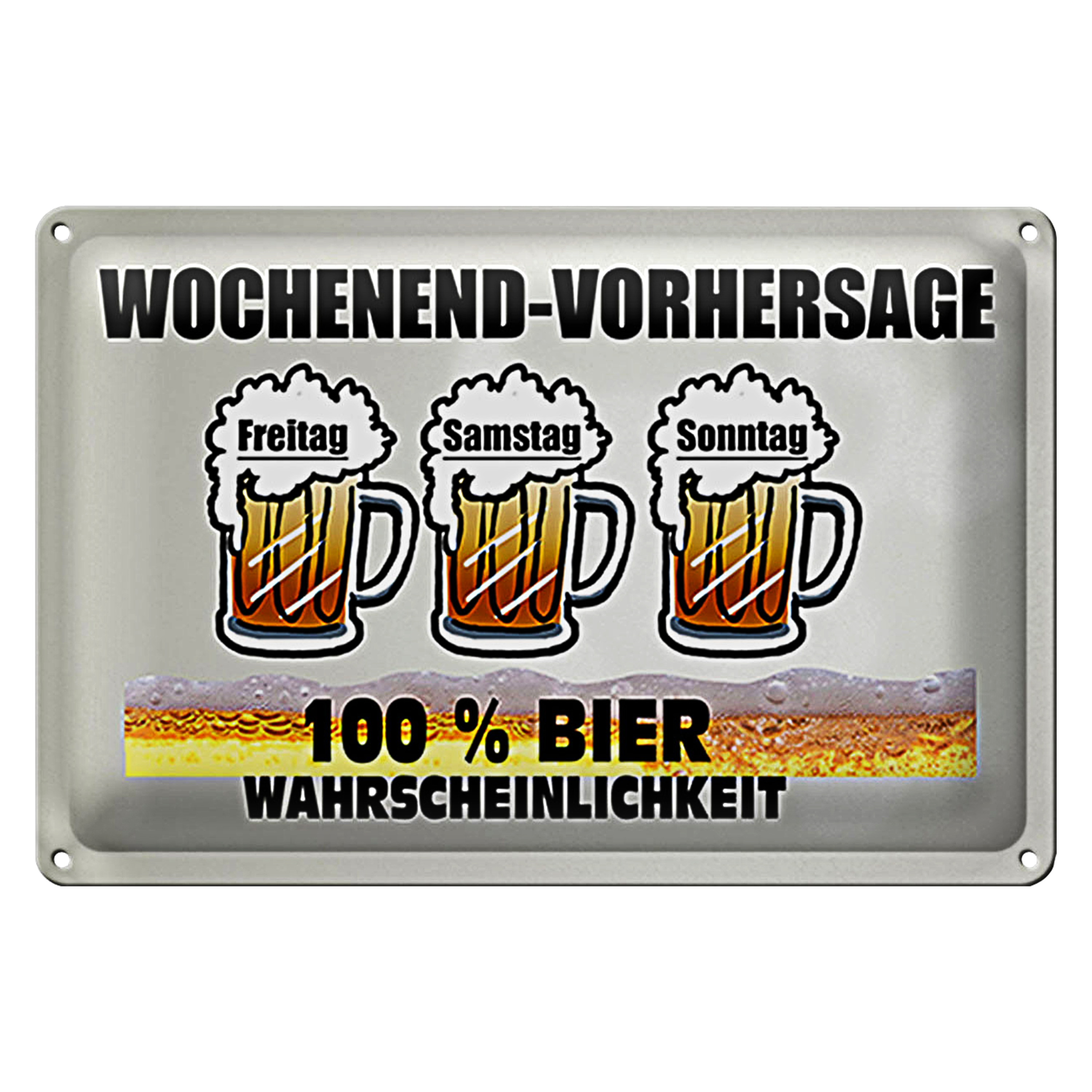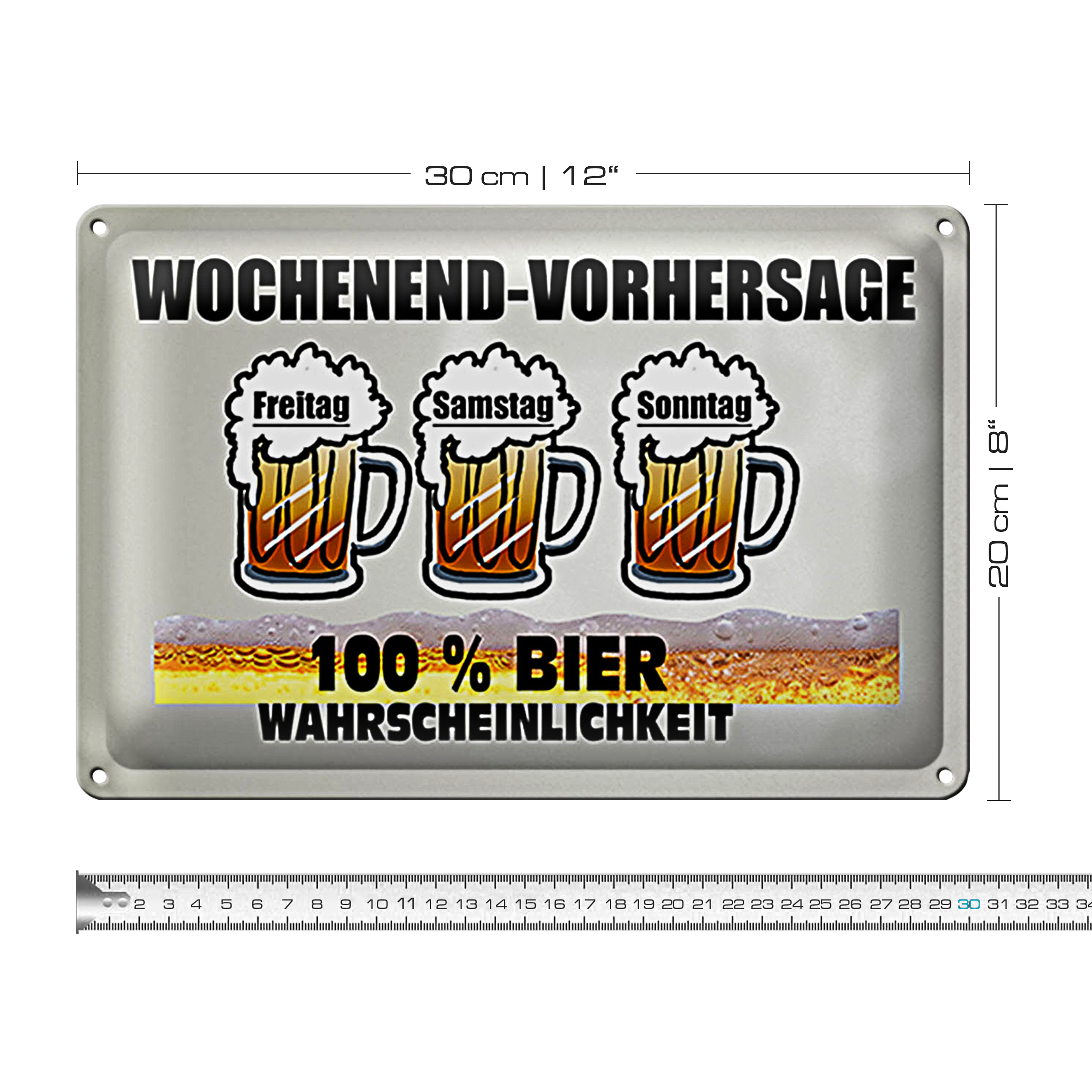 Blechschild 30x20cm Wochenend Vorhersage 100% Bier