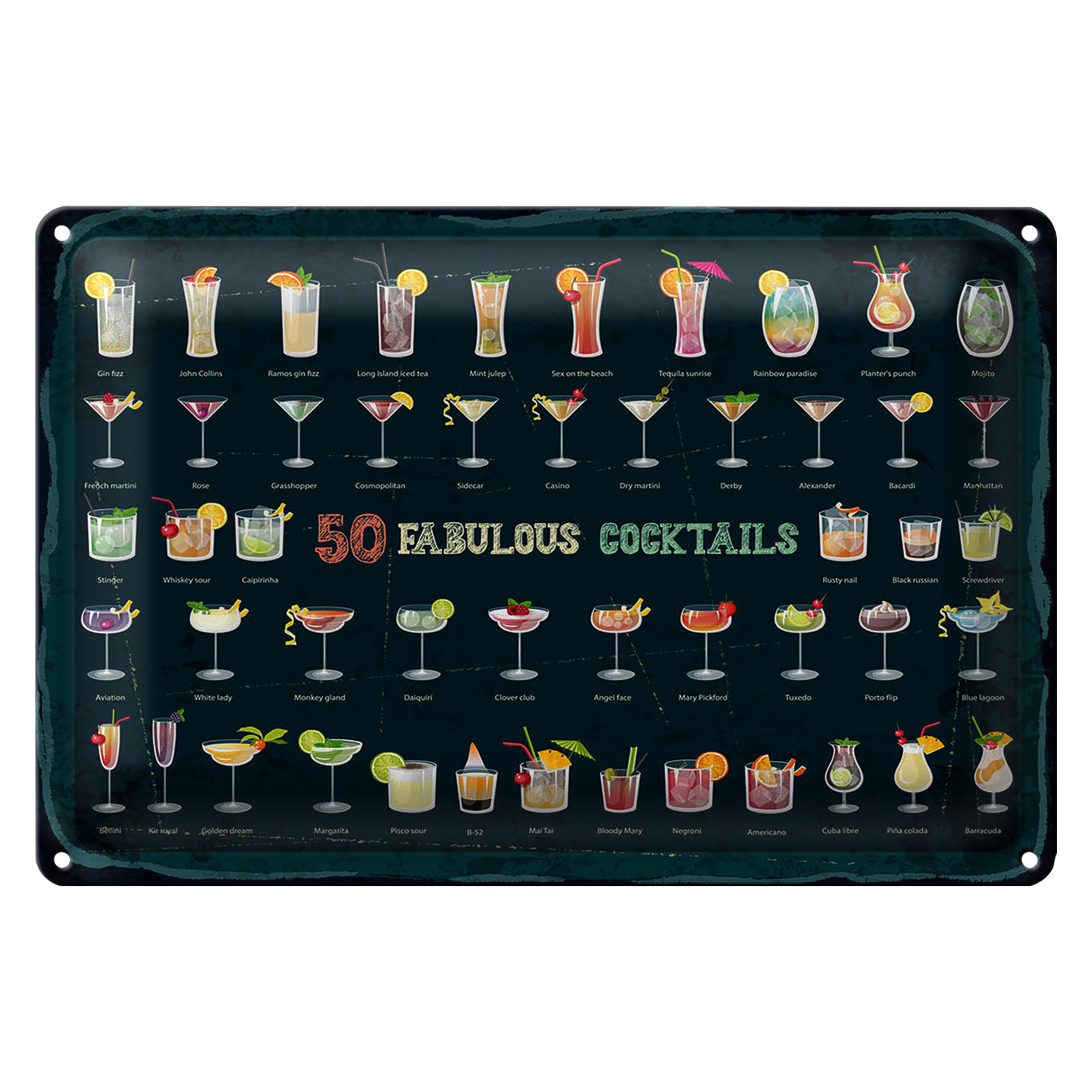 Blechschild 50 Fabulous Cocktails Drinks 30x20cm