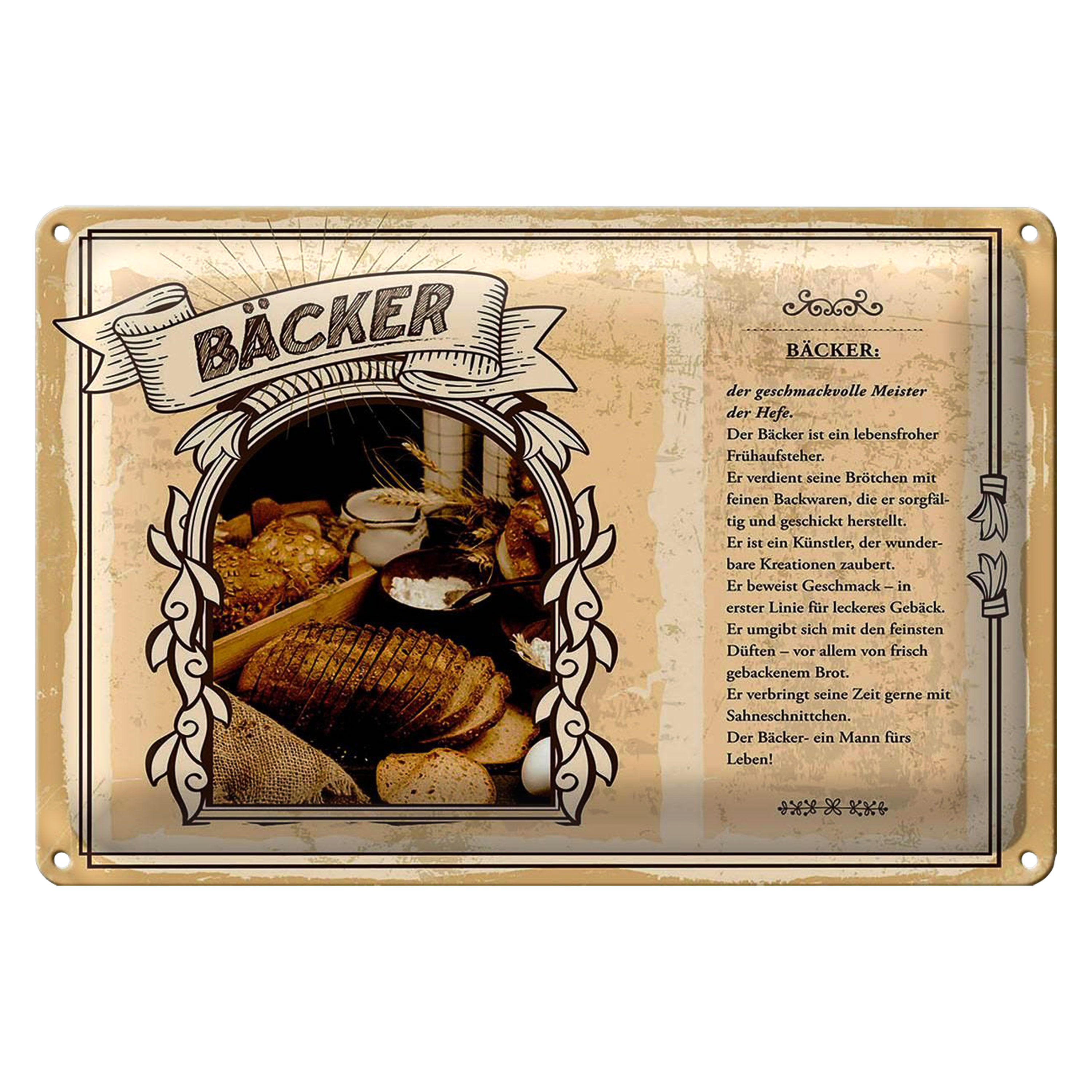 Blechschild Berufe 30x20cm Bäcker geschmackvolle Meister Hefe