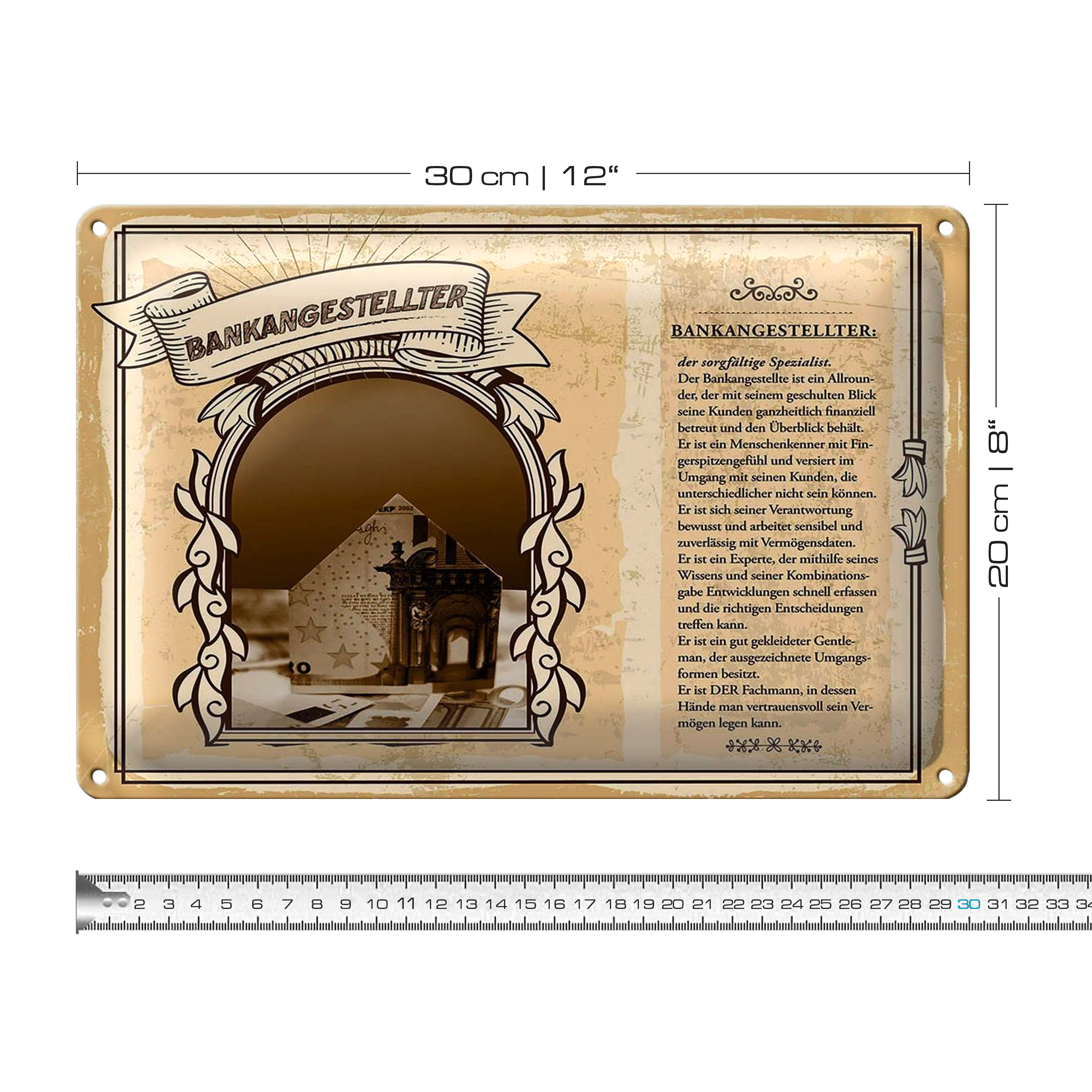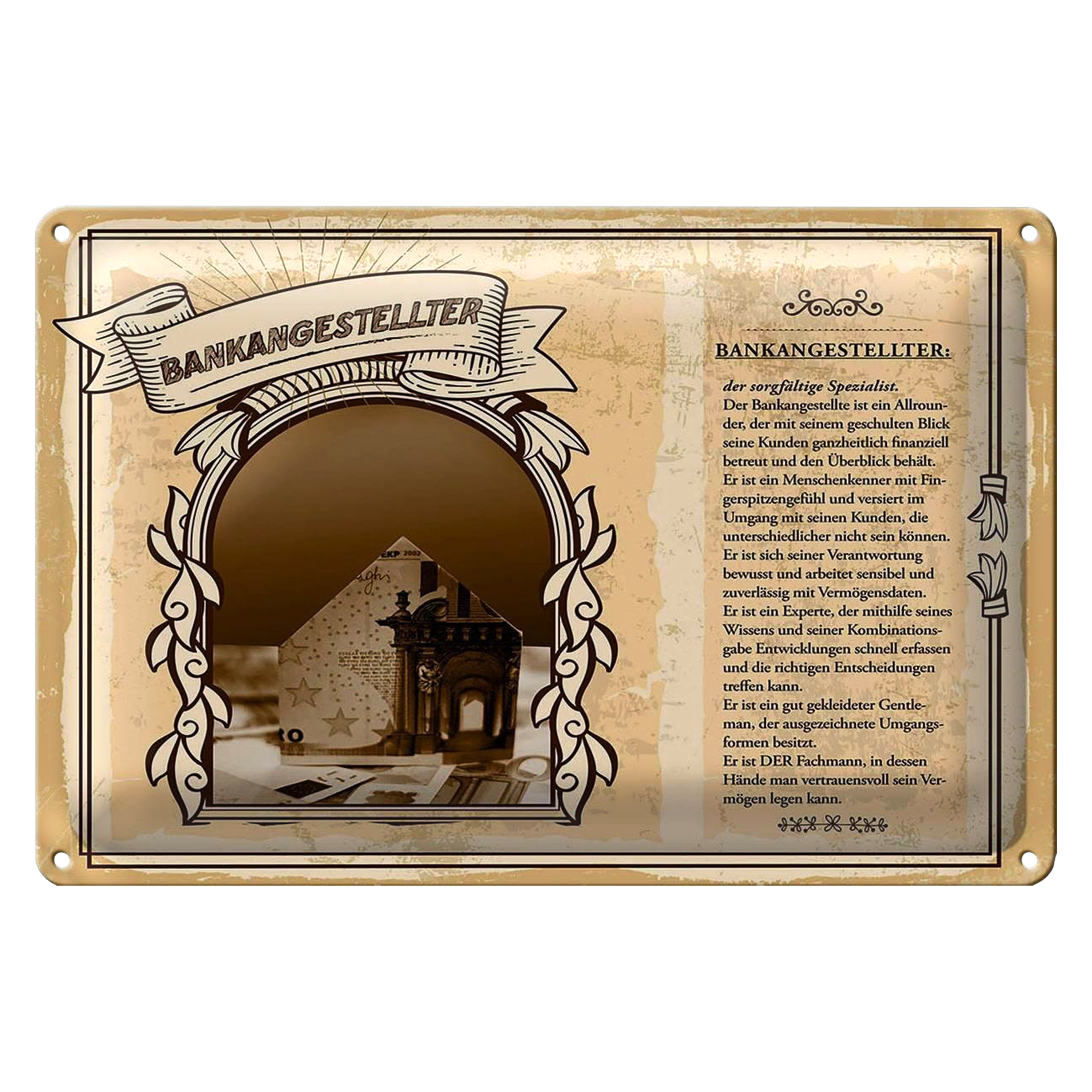 Blechschild Berufe 30x20cm Bankangestellter Konten Experte