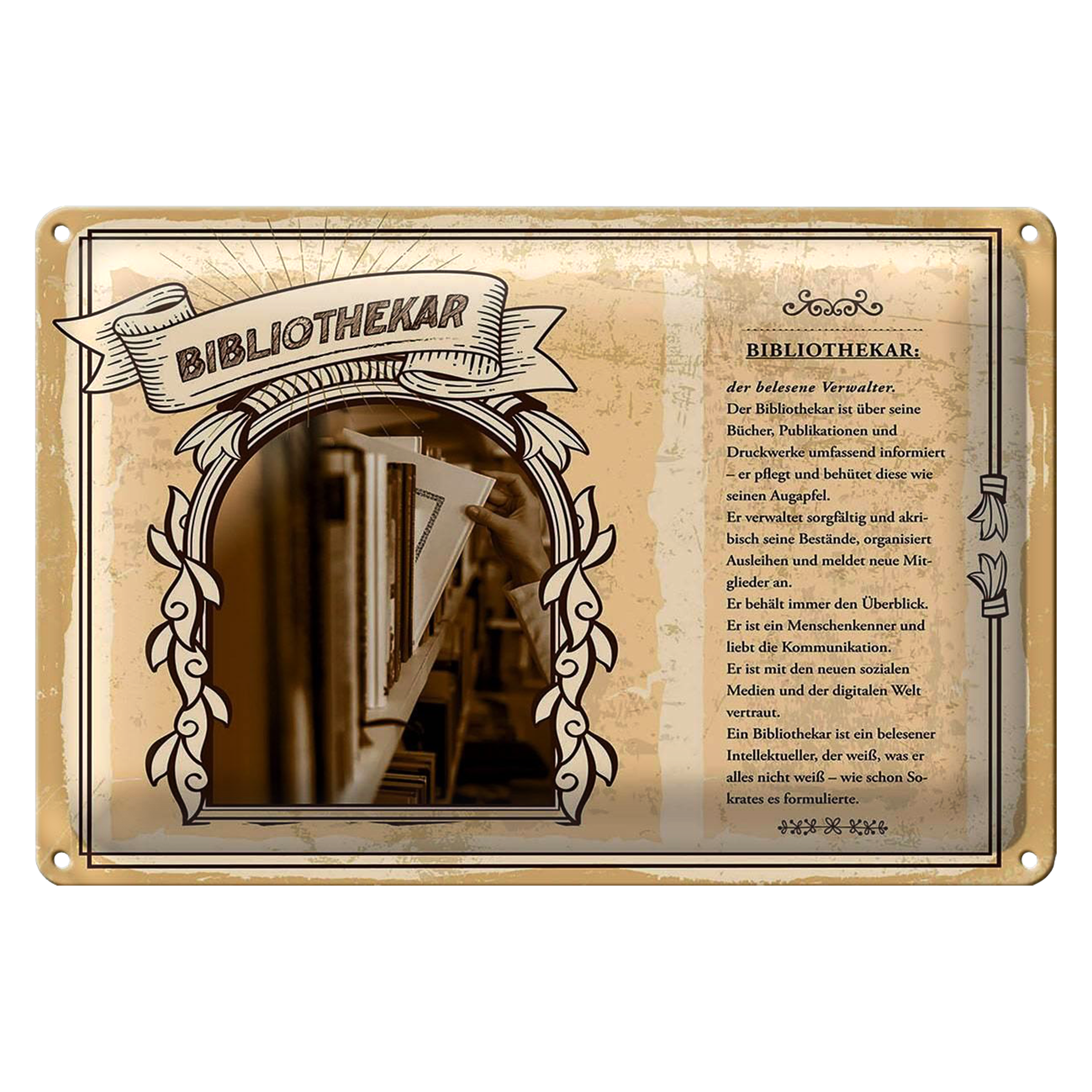 Blechschild Berufe 30x20cm Bibliothekar Verwalter Bücher
