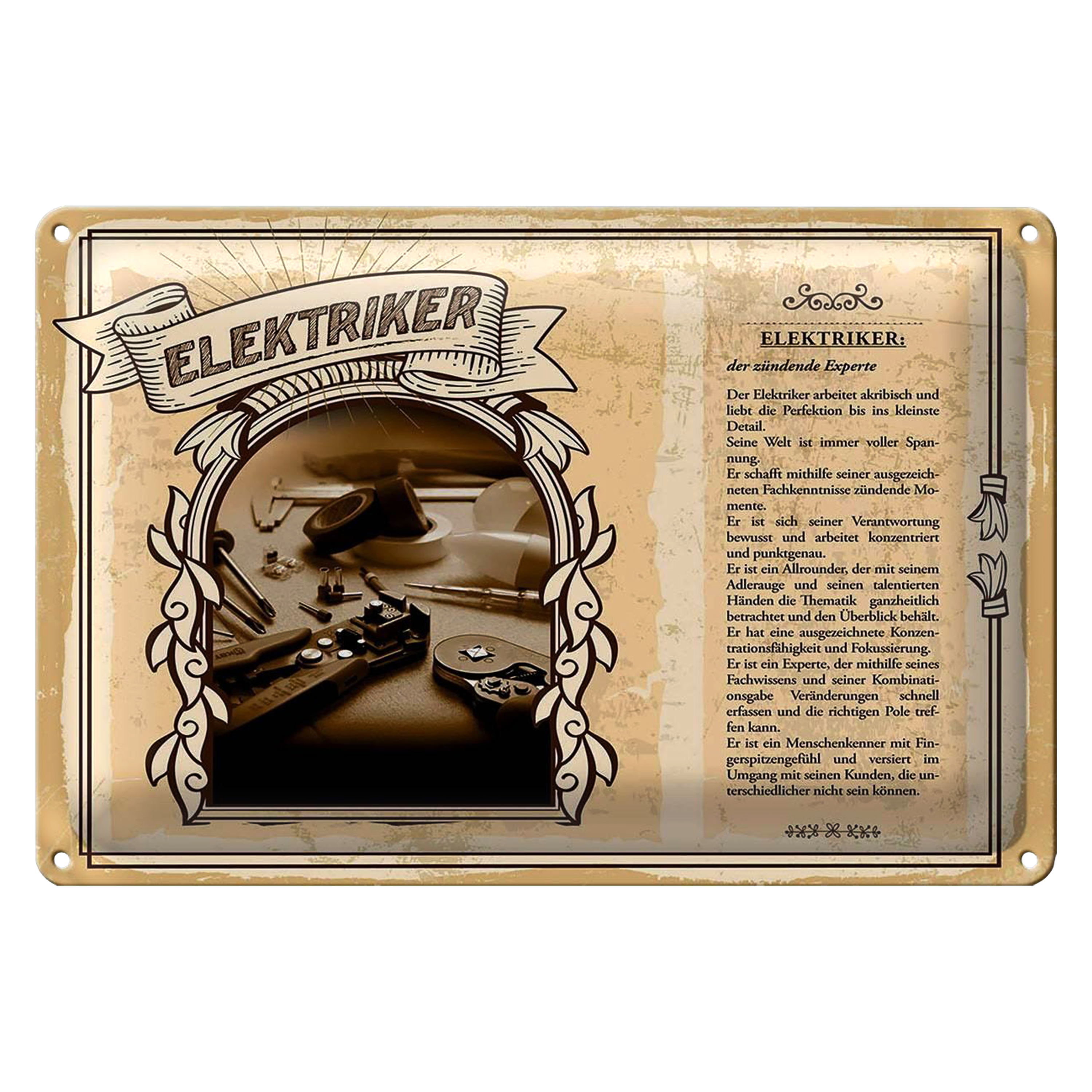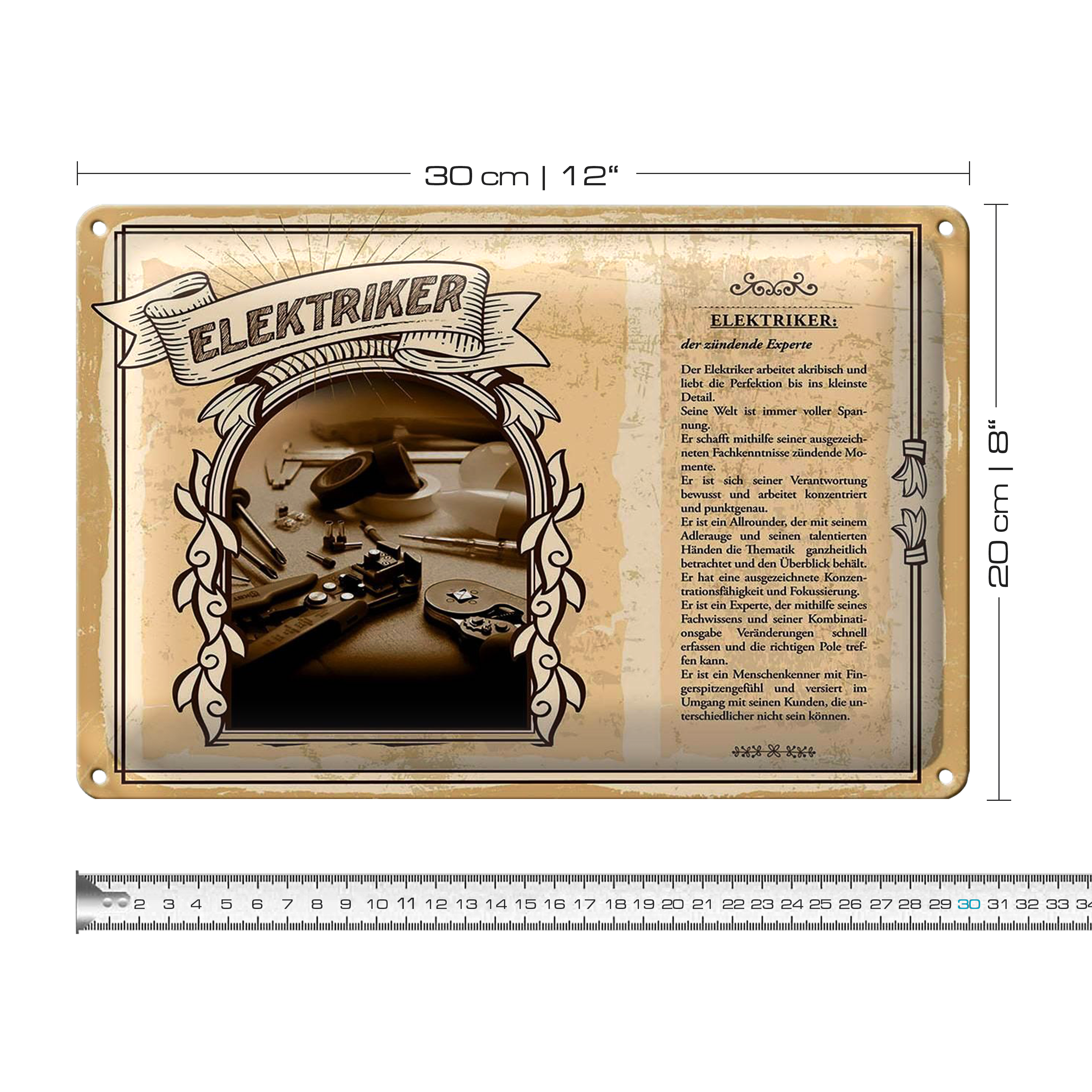 Blechschild Berufe 30x20cm Elektriker zündende Experte Detail