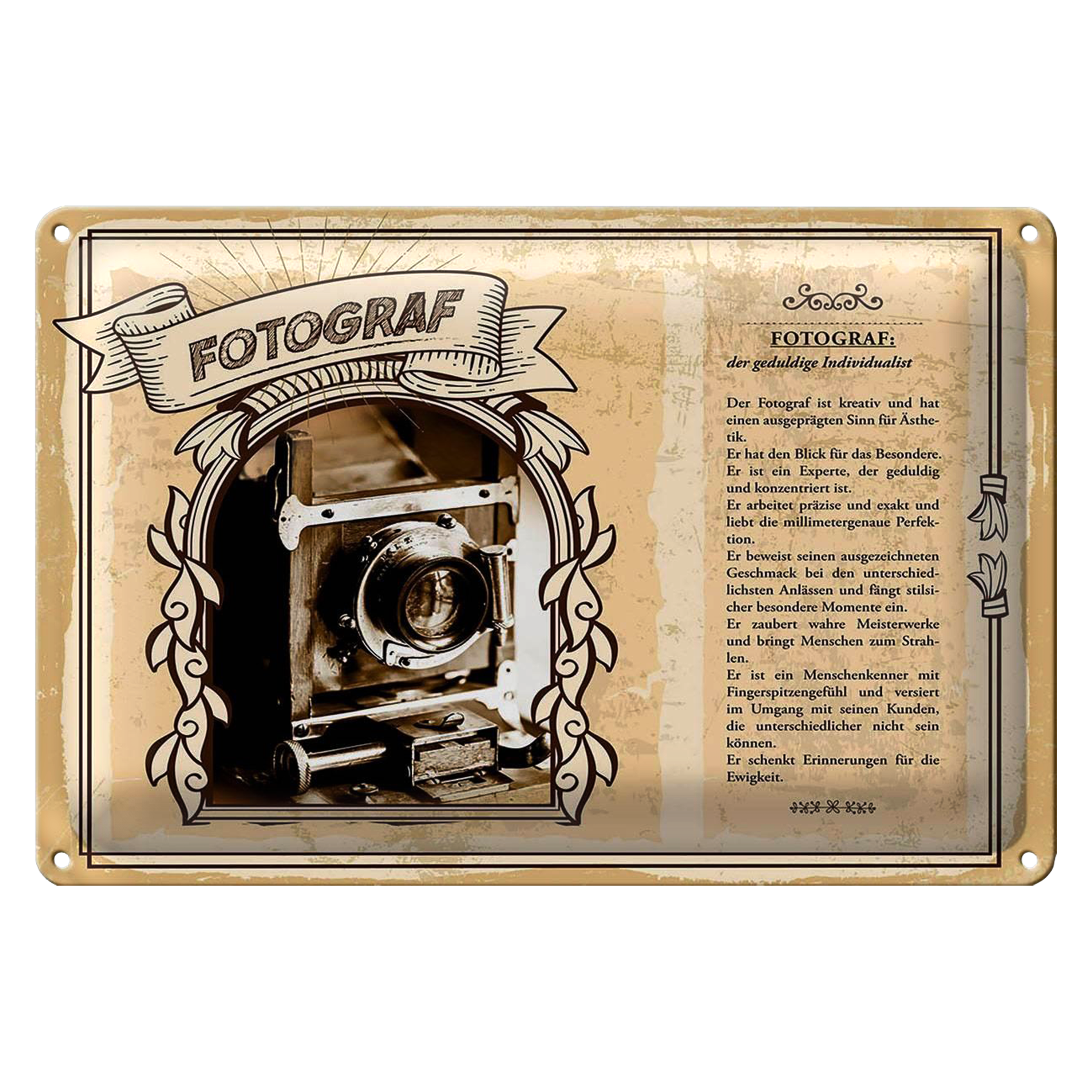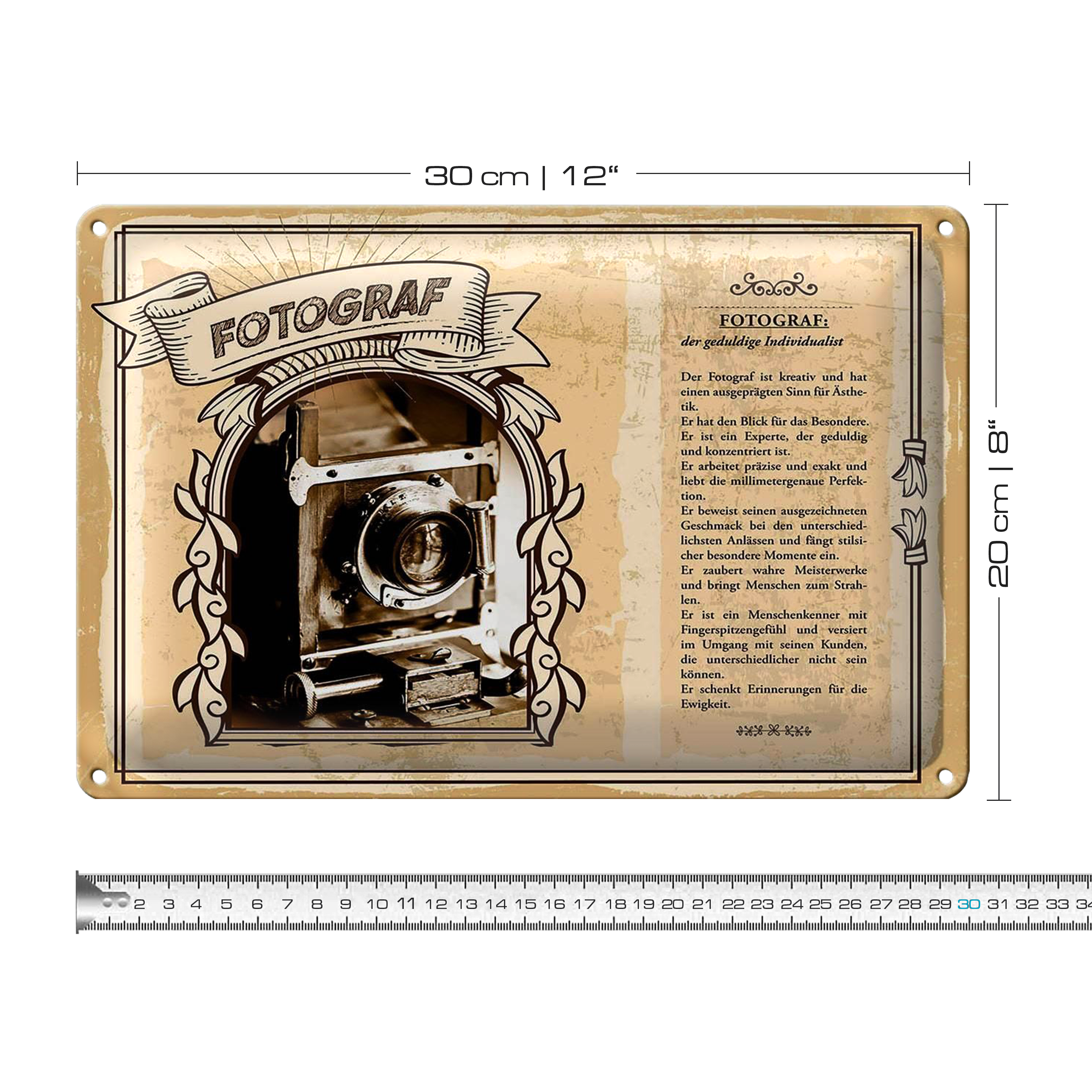Blechschild Berufe 30x20cm Fotograf geduldige Individualist