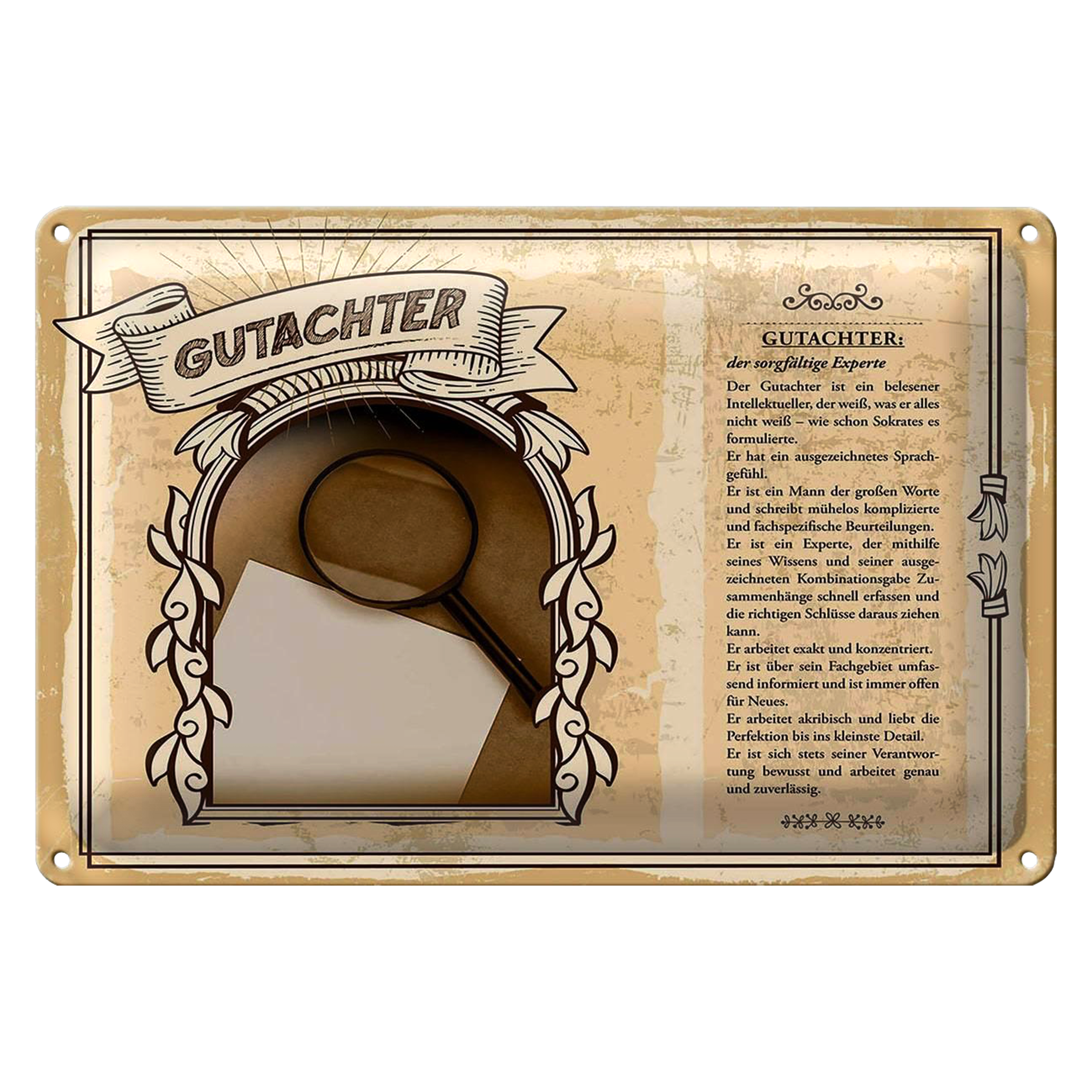 Blechschild Berufe 30x20cm Gutachter sorgfälltiger Experte