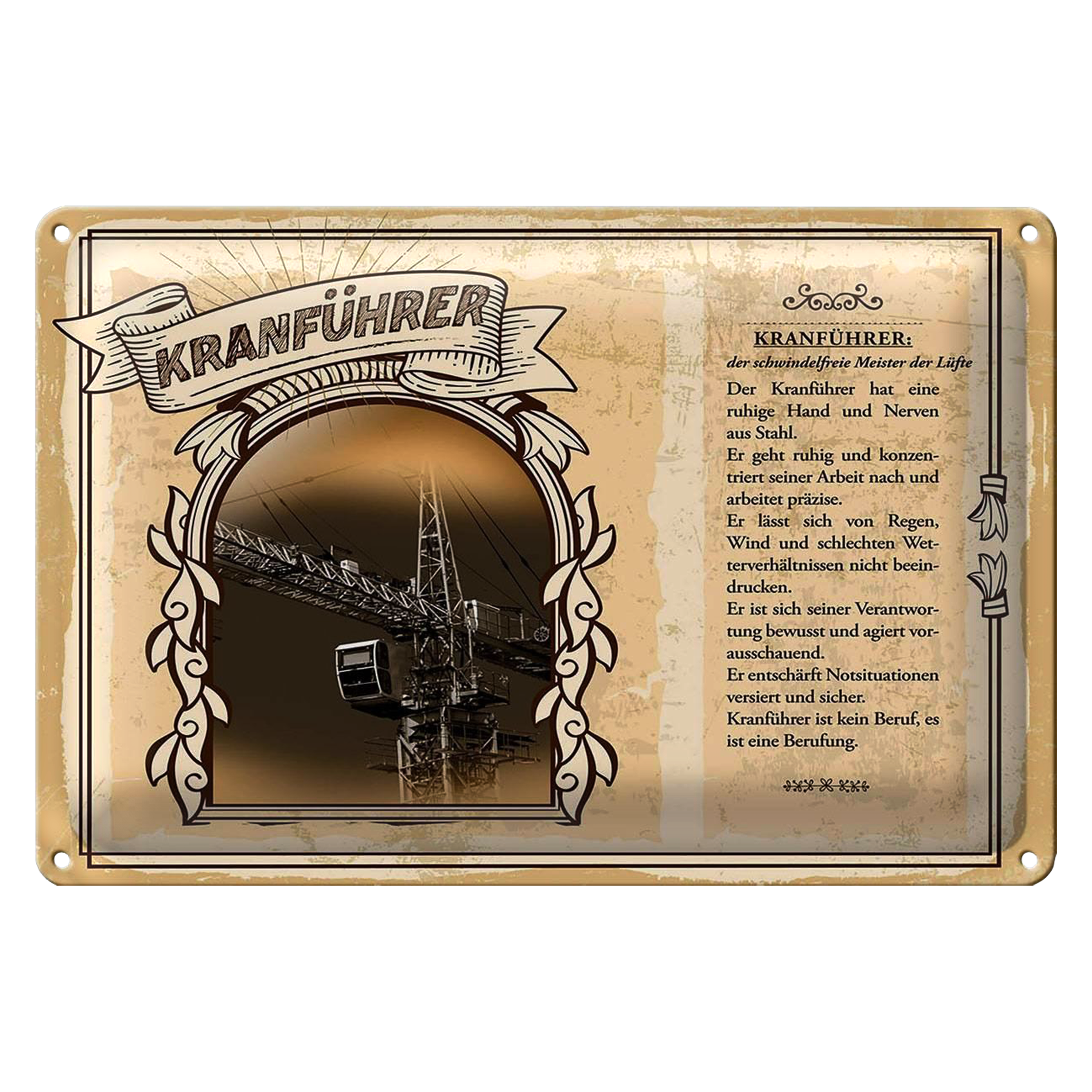 Blechschild Berufe 30x20cm Kranführer ruhige Hand und Nerven