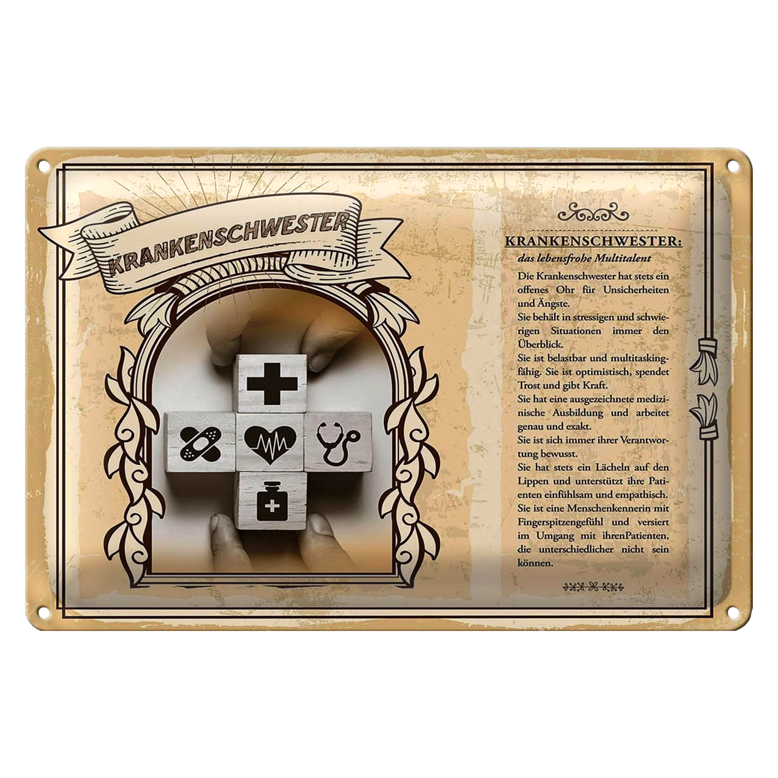 Blechschild Berufe 30x20cm Krankenschwester Kraft Trost Mut