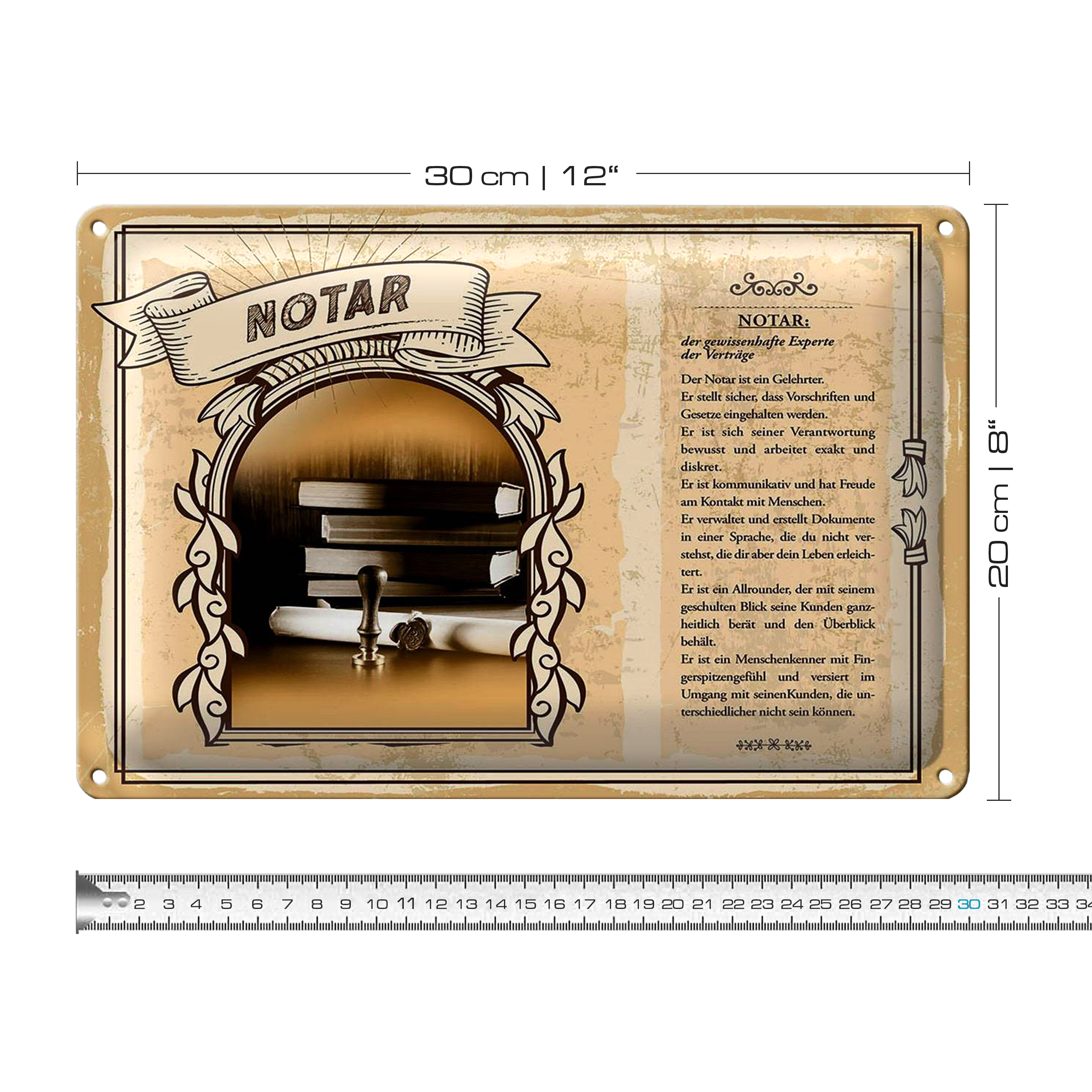 Blechschild Berufe 30x20cm Notar gewissenhaft Verträge exakt