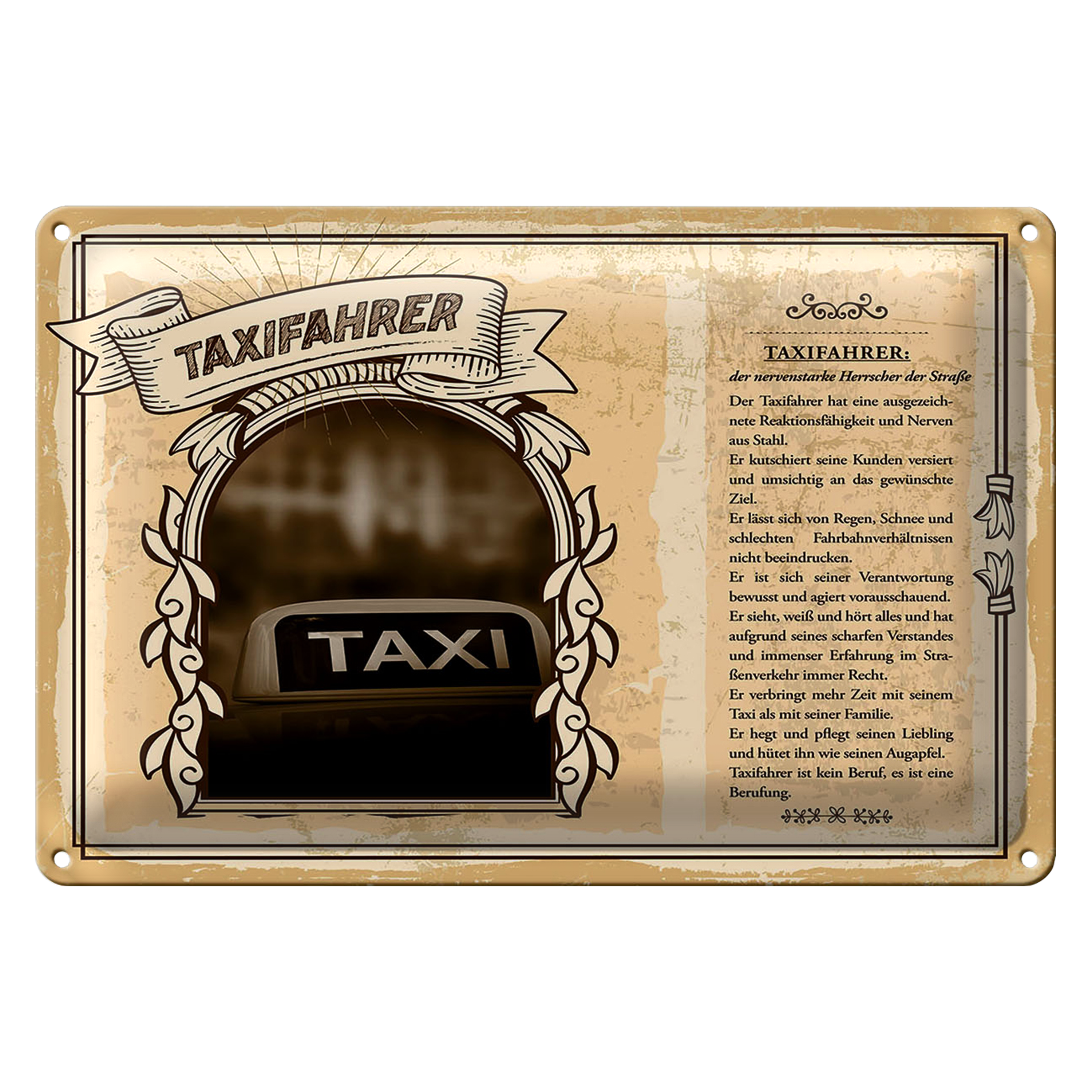 Blechschild Berufe Taxifahrer Nerven aus Stahl 30x20cm