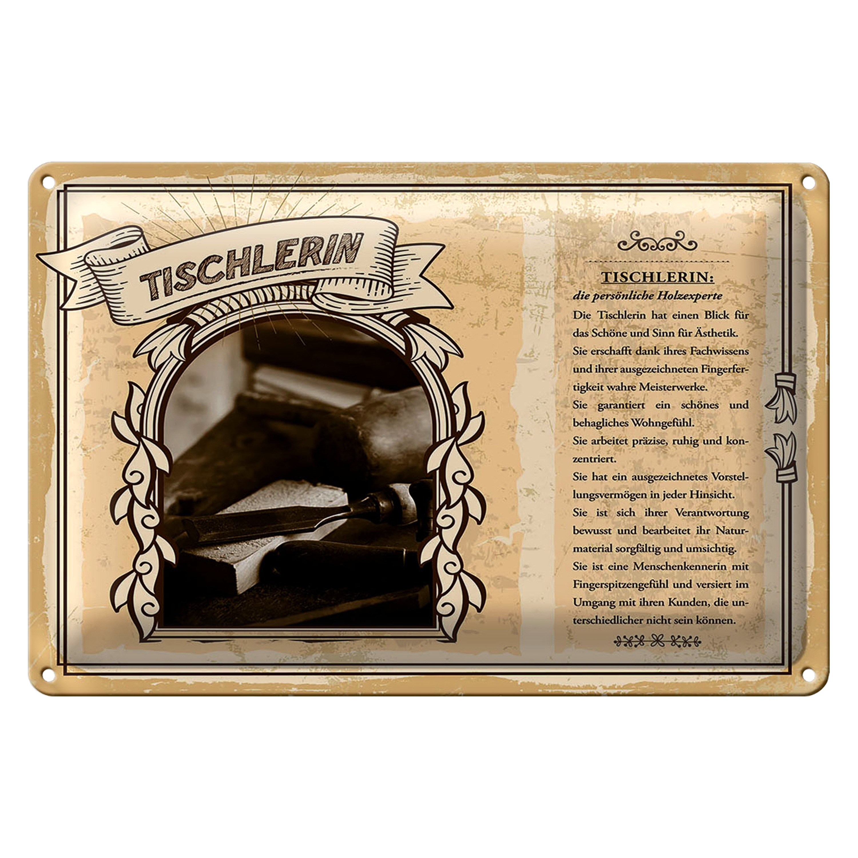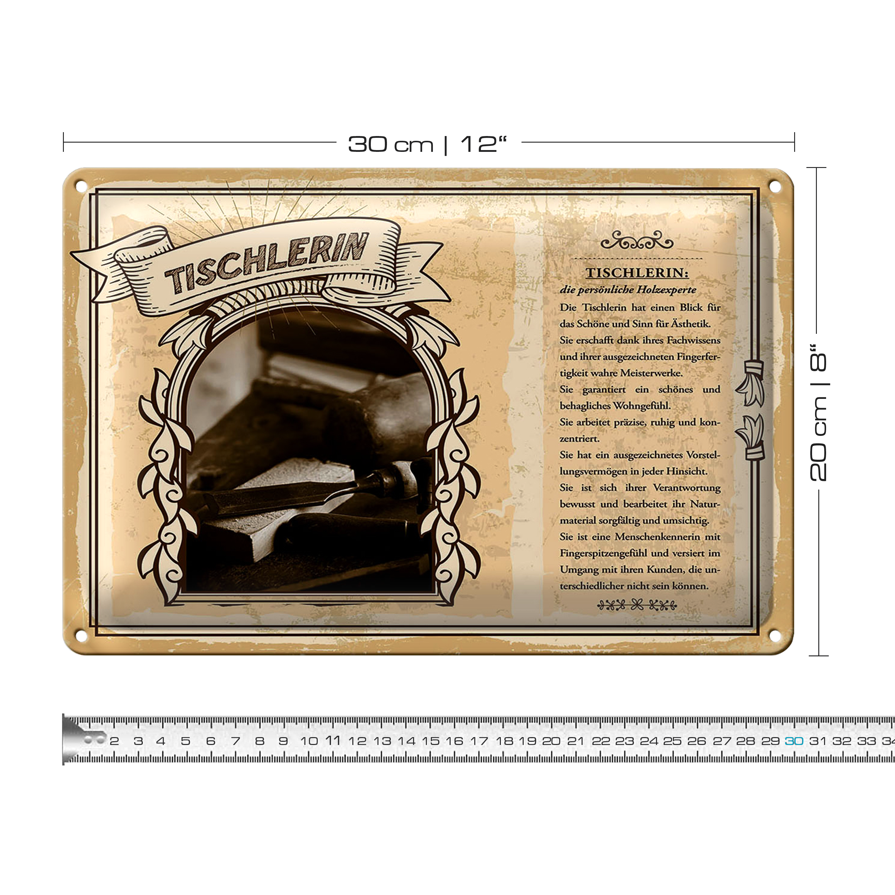 Blechschild Berufe Tischlerin Holzexperte 30x20cm